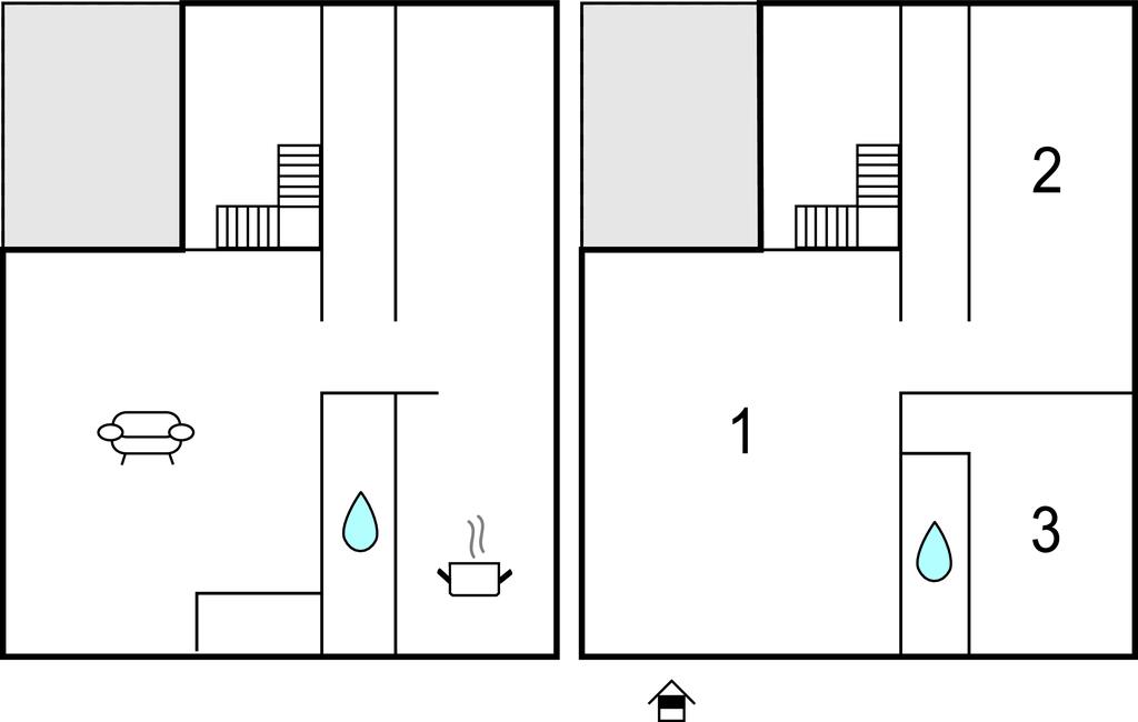 Badezimmer (nr. 1) - WC. Warmes und kaltes Wasser. Dusche