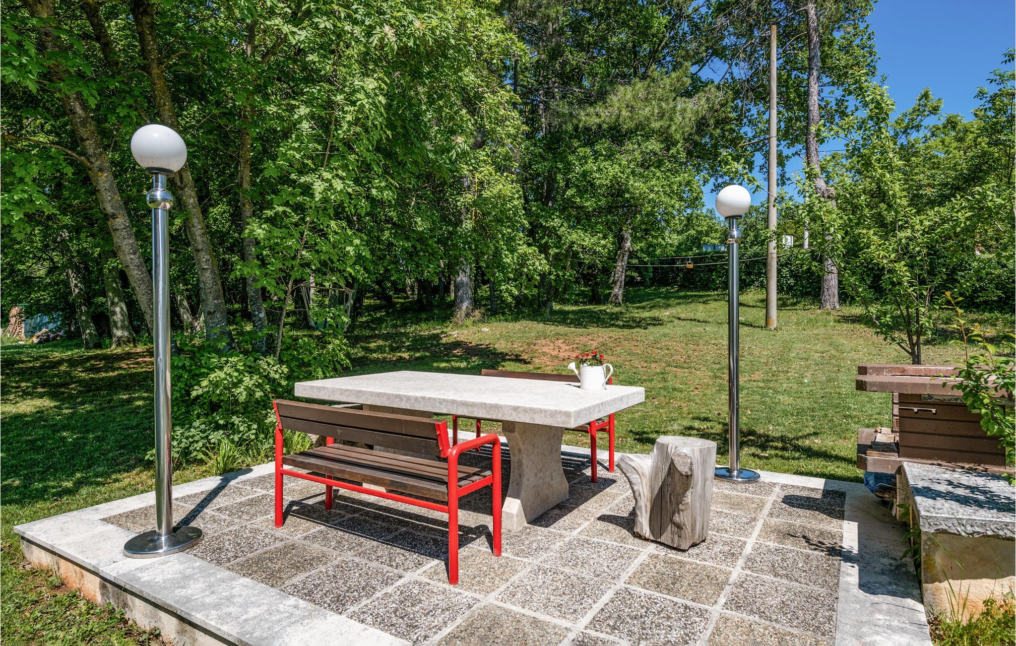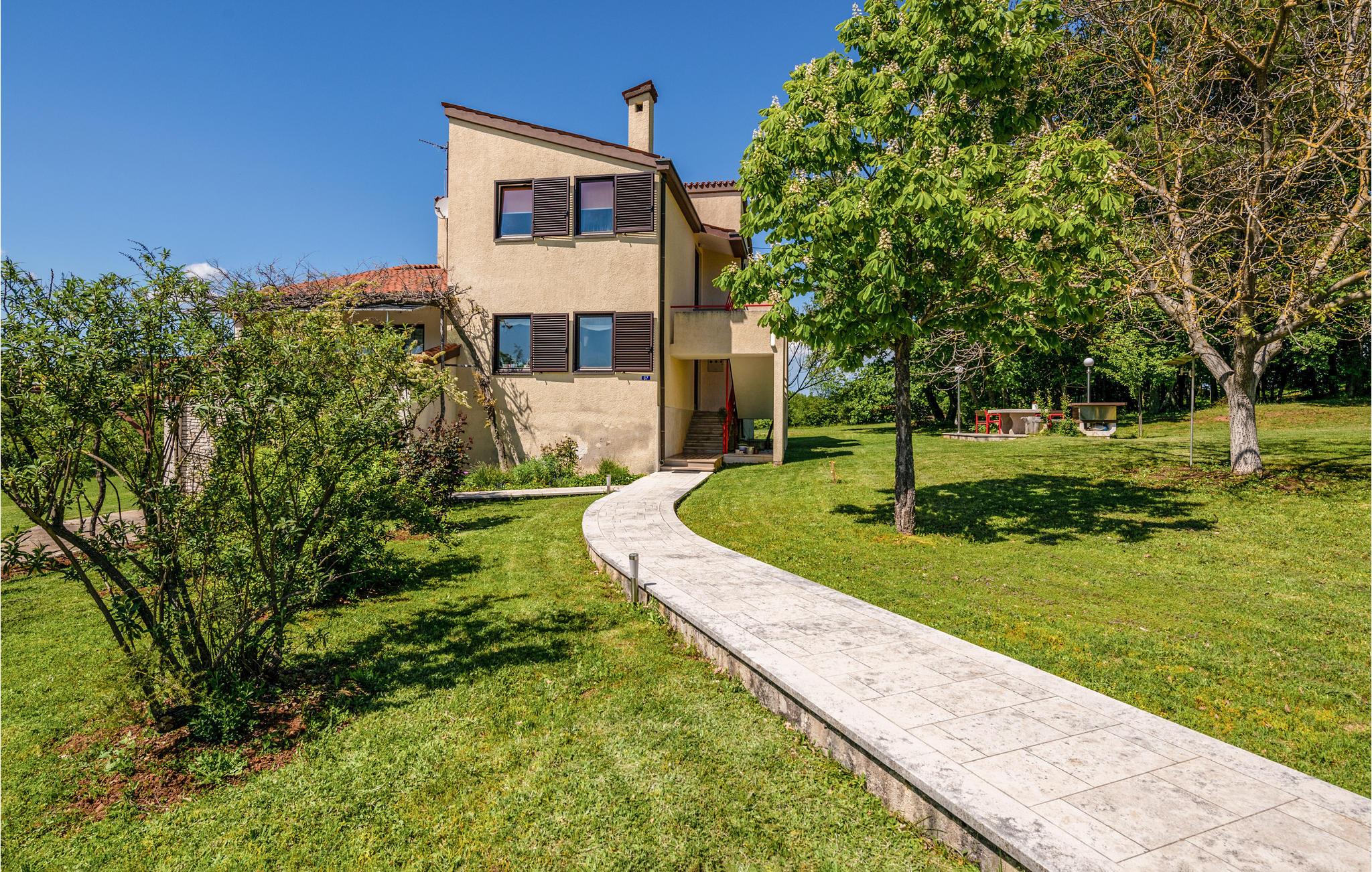 Diese große Ferienwohnung im ländlichen Istrien ist ruhig gelegen und befindet sich nicht weit entfernt von Rad- und Wanderwegen. Die Wohnung ist mit viel Holz eingerichtet und bietet Platz für 6 Personen in 2 Schlafzimmern. Sie befindet sich auf einem großen Grundstück mit Rasenfläche und schönen Pflanzen, wo Sie auch an heißen Tagen ein schattiges Plätzchen finden können. Auf dem Balkon an der Wohnung können Sie den ersten Kaffee des Tages genießen oder den Tag mit einem kühlen Getränk beenden. Wenn Sie im Meer baden möchten, sollten Sie die Buchten mit Kiesstränden in der Nähe besuchen (5 km). Gegen Aufpreis ist es möglich eine Konoba mit Kamin und Wein dazu zu buchen.