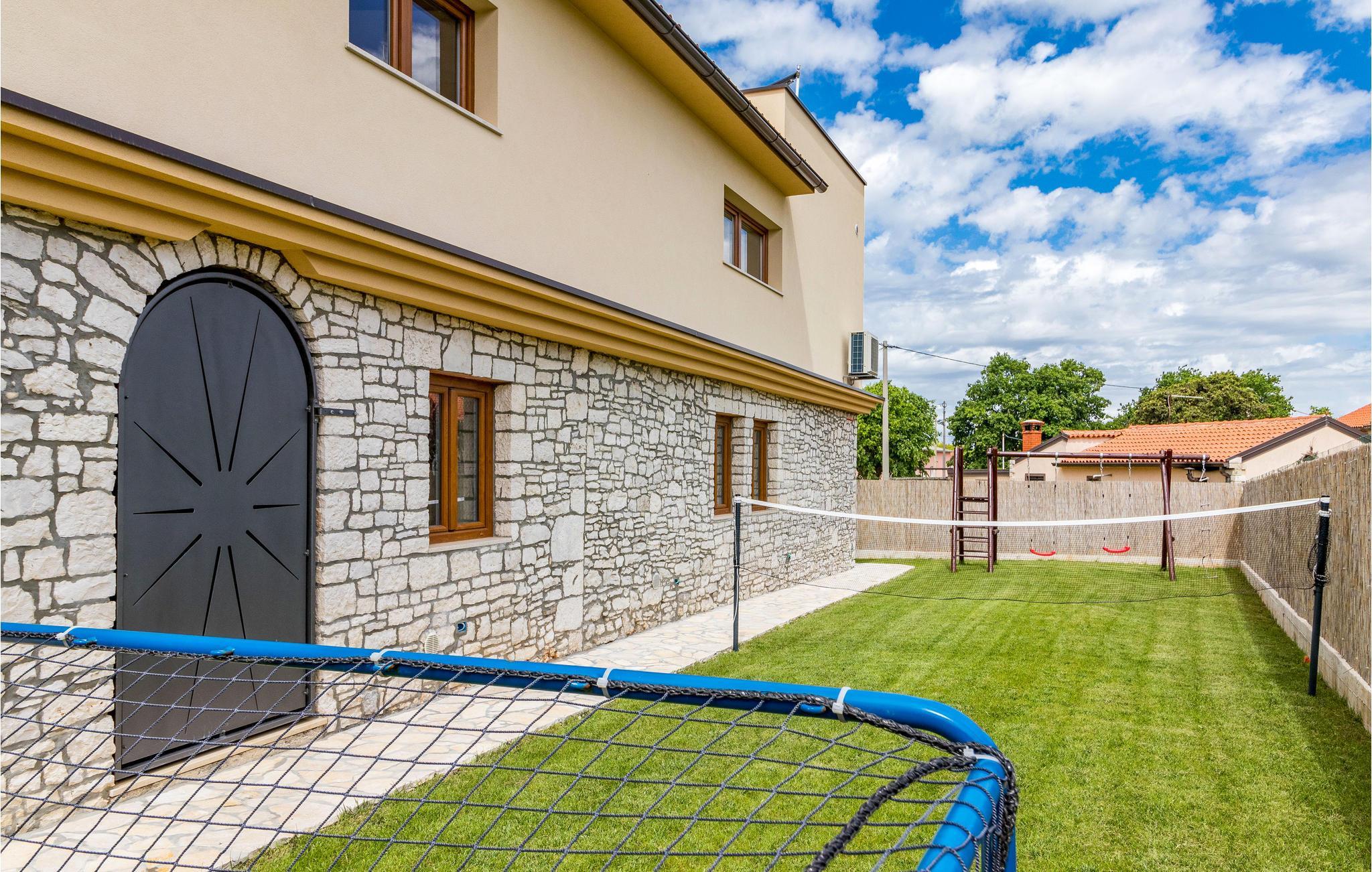 Dieses schöne Ferienhaus aus Stein befindet sich in Orbanici, einem Dorf in der Nähe von Barban. Es besteht aus mehreren separaten Einheiten, die den Hof umgeben und eine ganze Einheit bilden. Das Haupthaus besteht aus Erdgeschoss und erster Etage, die durch eine Innentreppe miteinander verbunden sind, während die erste Etage auch über Treppen von außen zugänglich ist. Im Erdgeschoss gibt es ein Wohnzimmer mit Küche, ein Esszimmer und ein Badezimmer, während sich im zweiten Stock zwei Schlafzimmer mit Bad befinden. Im zweiten Haus gibt es zwei Schlafzimmer im Erdgeschoss sowie ein großes Badezimmer, das direkt vom Hof aus zugänglich ist, ein Zimmer ist ein Durchgangszimmer. Besonders hervorzuheben ist der große Raum mit Whirlpool, Billard und der überdachten Sommerküche, die so verglast ist, dass sie bei Bedarf geöffnet oder geschlossen werden kann. Der Innenhof wird von einem großen Swimmingpool dominiert, in dem Sie sich an heißen Sommertagen erfrischen können. Auf der Sonnenterrasse wurde auch an Schatten gedacht, den Sie unter großen befestigten Sonnenschirmen aus natürlichen Materialien finden.