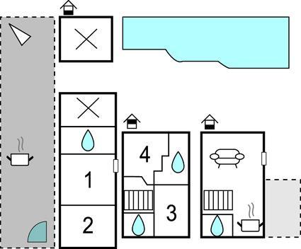 Badezimmer (nr. 3) - WC. Warmes und kaltes Wasser. Dusche