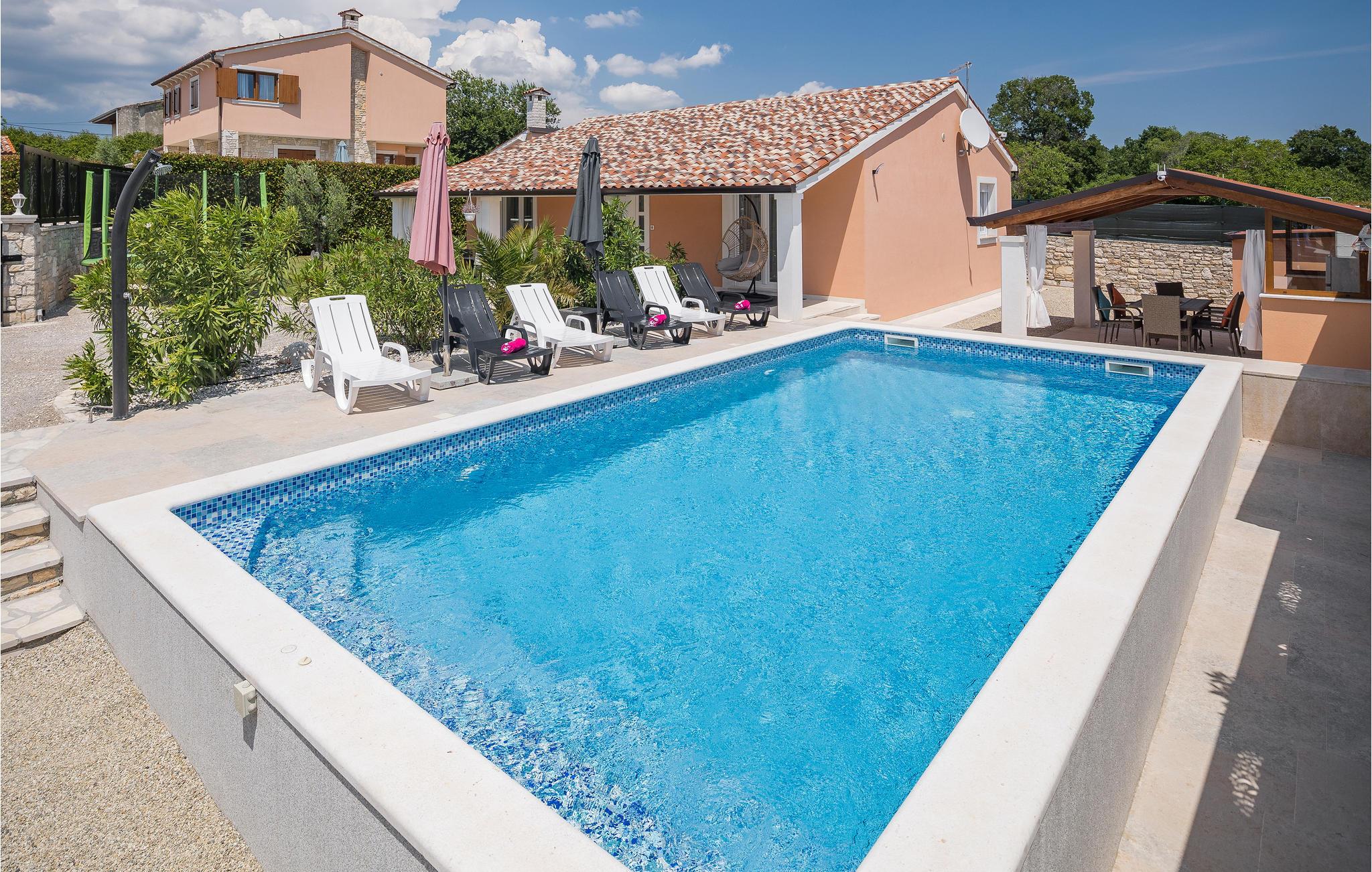 Genießen Sie einen erholsamen Urlaub mit er ganzen Familie in diesem Ferienhaus mit Pool.