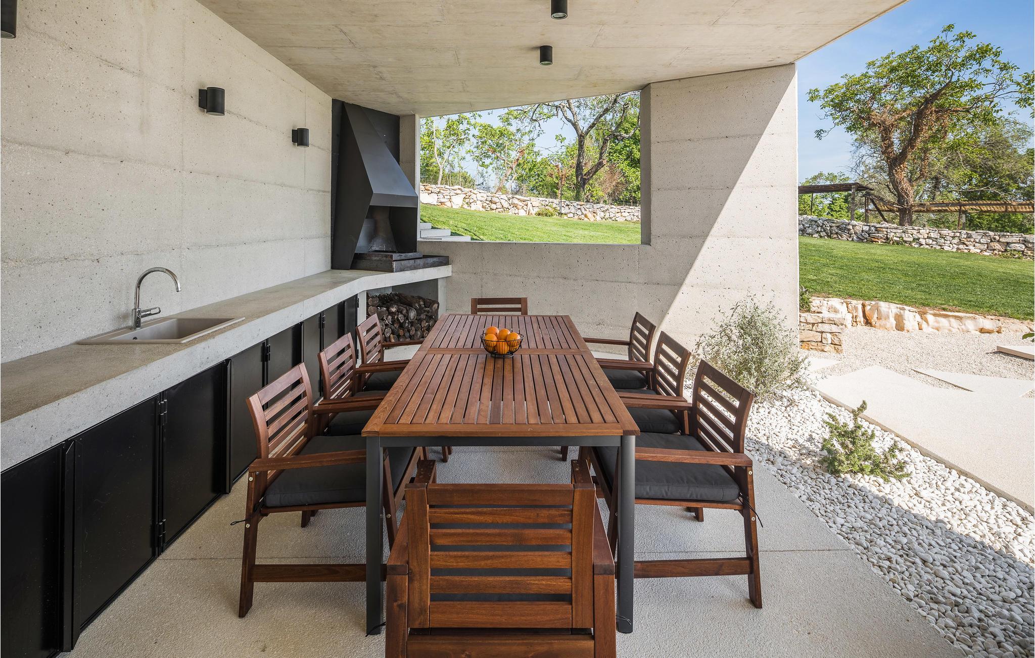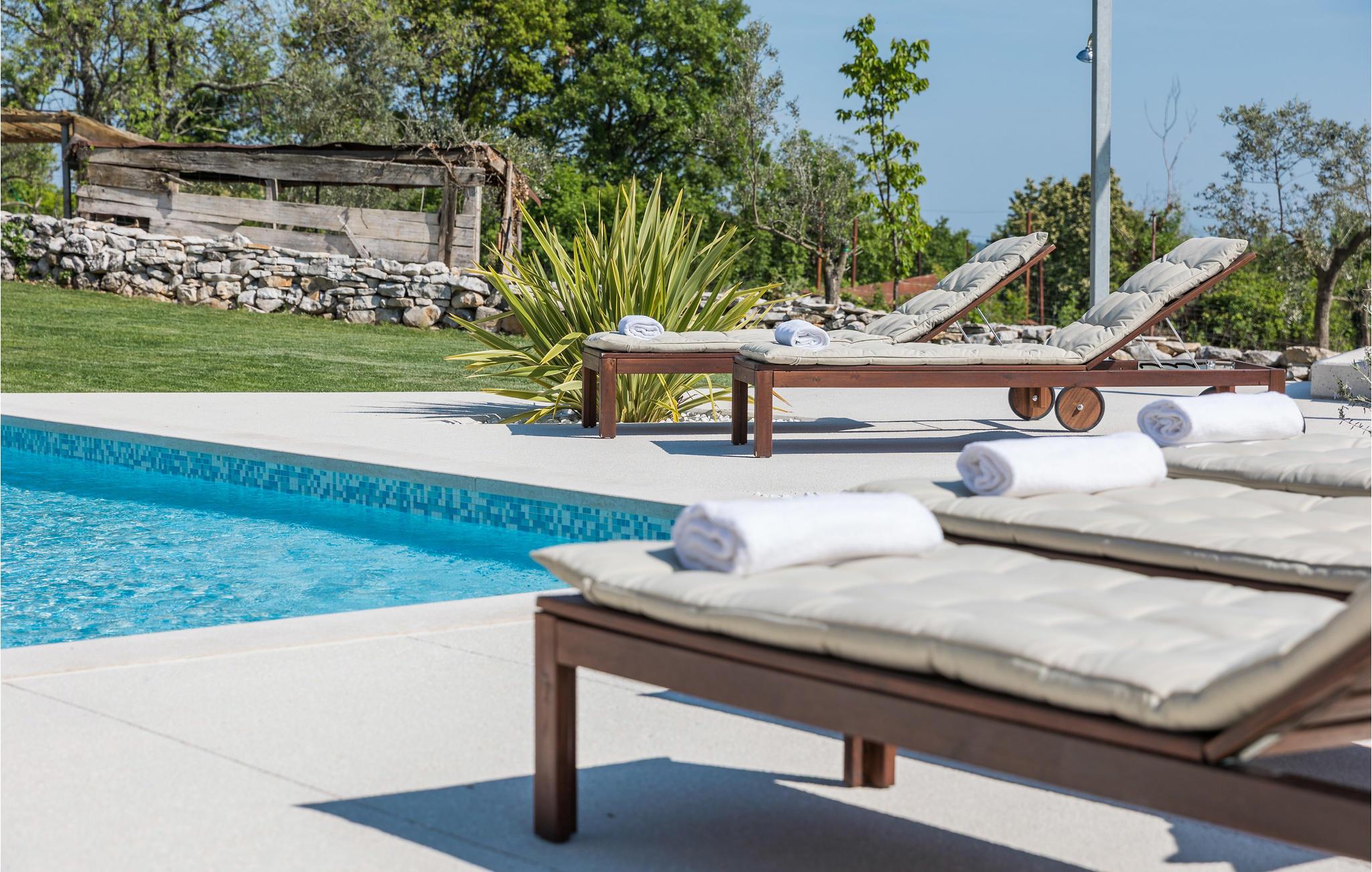 Das Haus befindet sich in der Region Barban an der Grenze zwischen "grünem" und "blauem" Istrien und ist eine gelungene Mischung aus istrischer Tradition und urbaner Architektur des 21. Jahrhunderts. Die untere Etage ist ein offener Raum, durch den sich Küche, Esszimmer und Wohnzimmer erstrecken. Es gibt auch eine Außenküche mit Grill. Im Obergeschoss befinden sich 3 Schlafzimmer mit dazugehörigen Badezimmern. Der schöne Pool im Außenbereich bietet Ihnen an heißen Sommertagen Erfrischung. Der Pool verfügt über eine Hydromassage-Ecke, ein Viertel des Pools ist mit 39 cm Wassertiefe für Kinder geeignet..