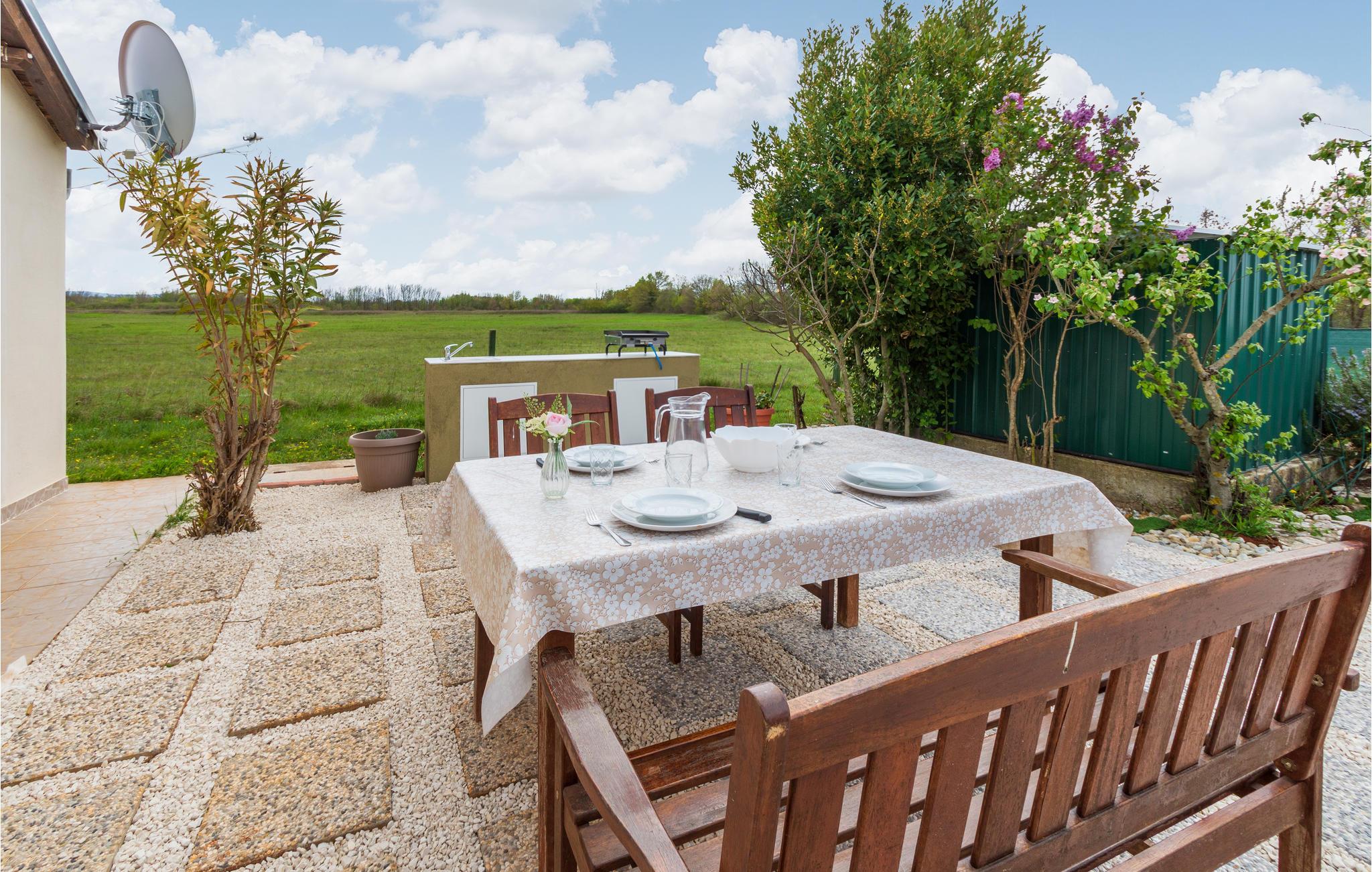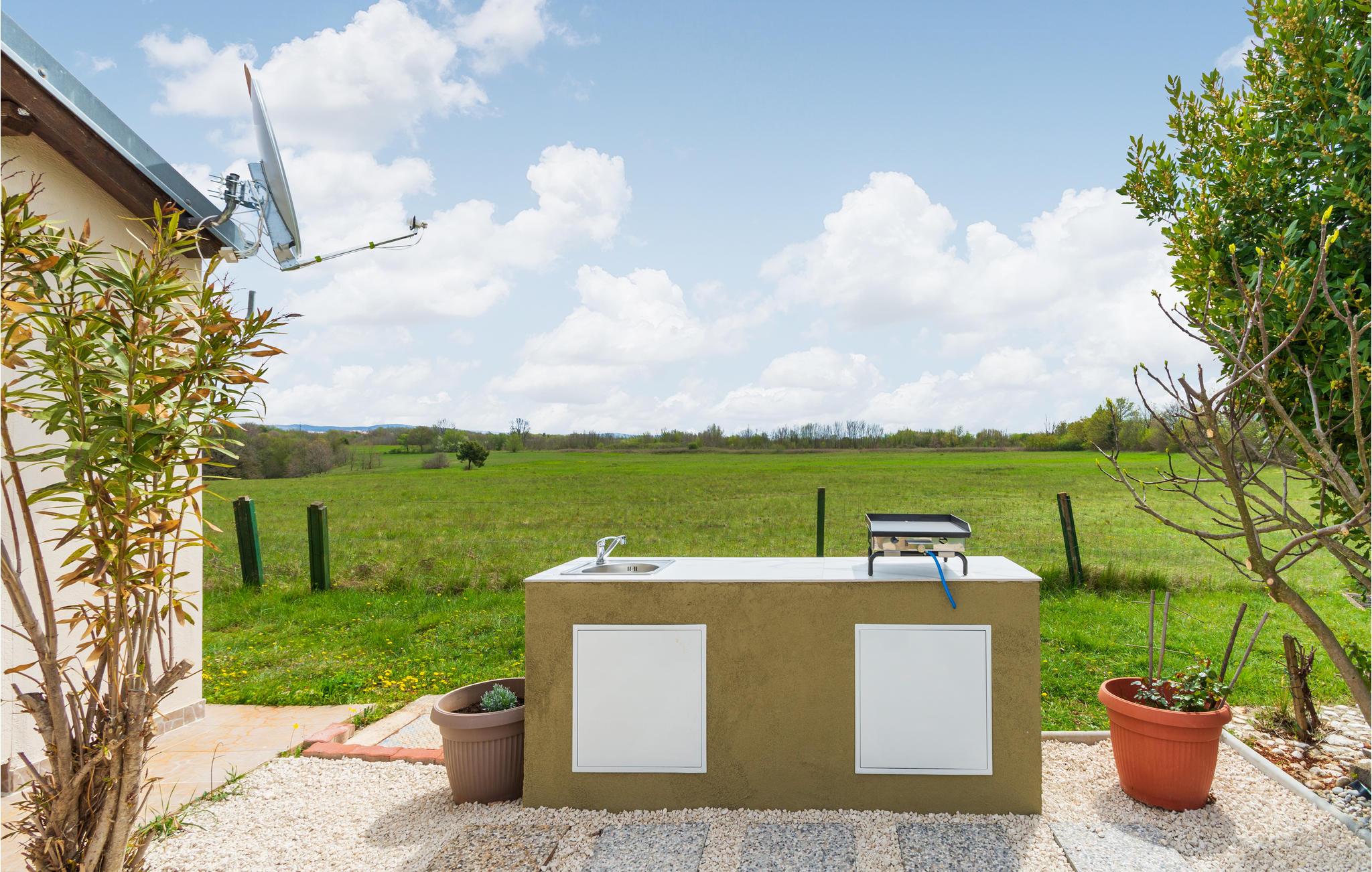 Auf der istrischen Halbinsel erwartet Sie dieses gemütliche, kleine Ferienhaus mit Whirlpool mitten im Grünen. Das einfach und funktionell eingerichtete Ferienhaus verfügt über ein ein Schlafzimmer und ein großes Wohnzimmer mit offener Küche.