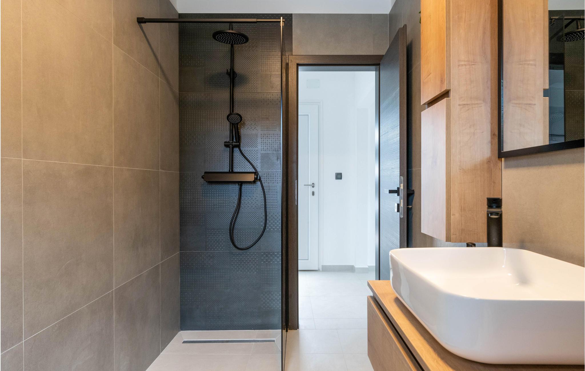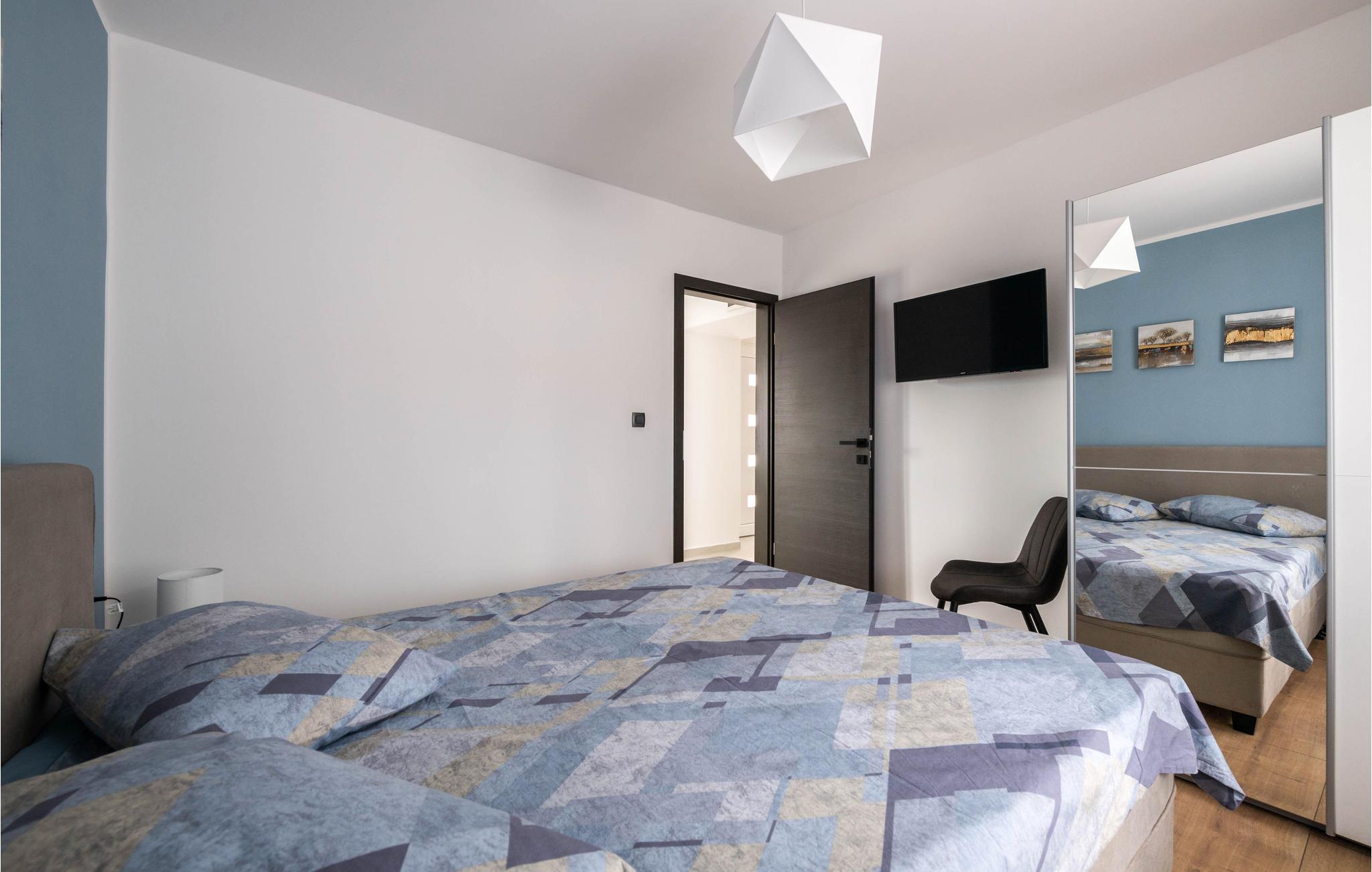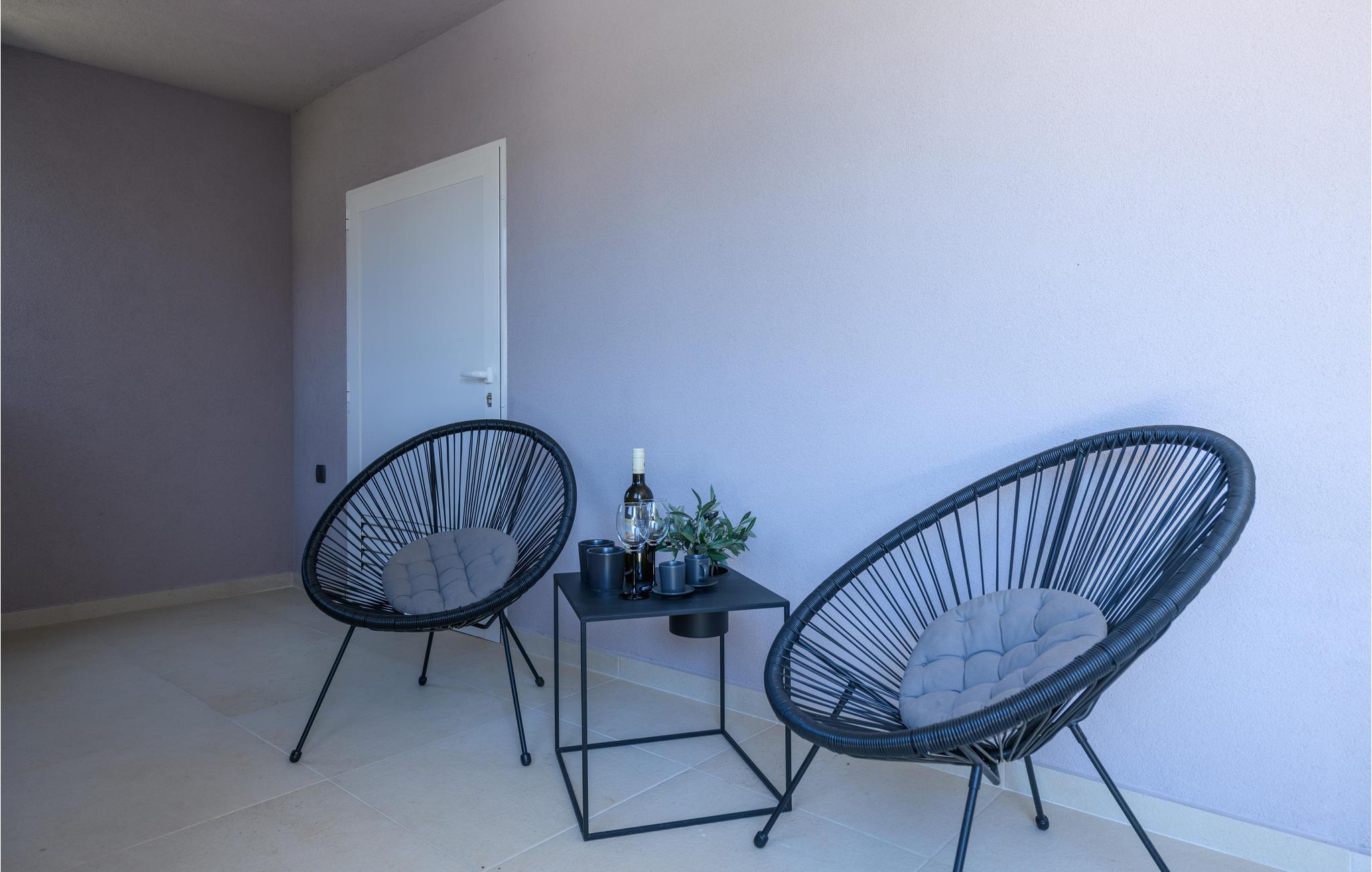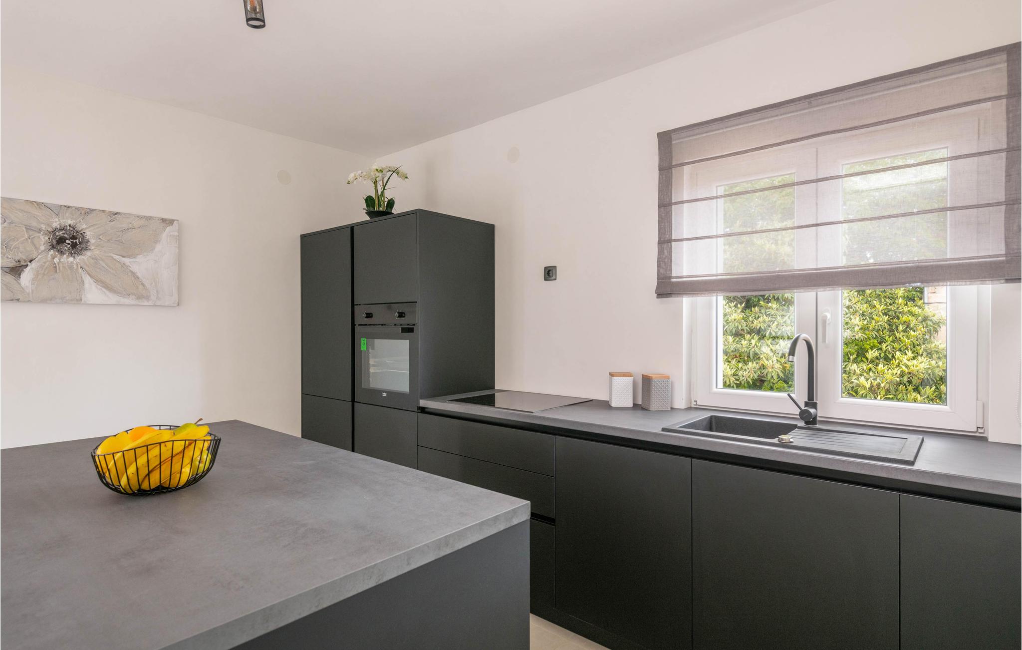 Die moderne Ferienwohnung heißt Sie in Prhati willkommen und empfängt Sie mit einer komfortablen und schönen Einrichtung, die gleich das Gefühl von zuhause ausstrahlt. Genießen Sie das offene Design der dunklen Küche, wo Sie gemeinsam an der Kochinsel die Zutaten für Ihre Gerichte schnippeln können oder im benachbarten Wohnbereich die Beine hochlegen können.