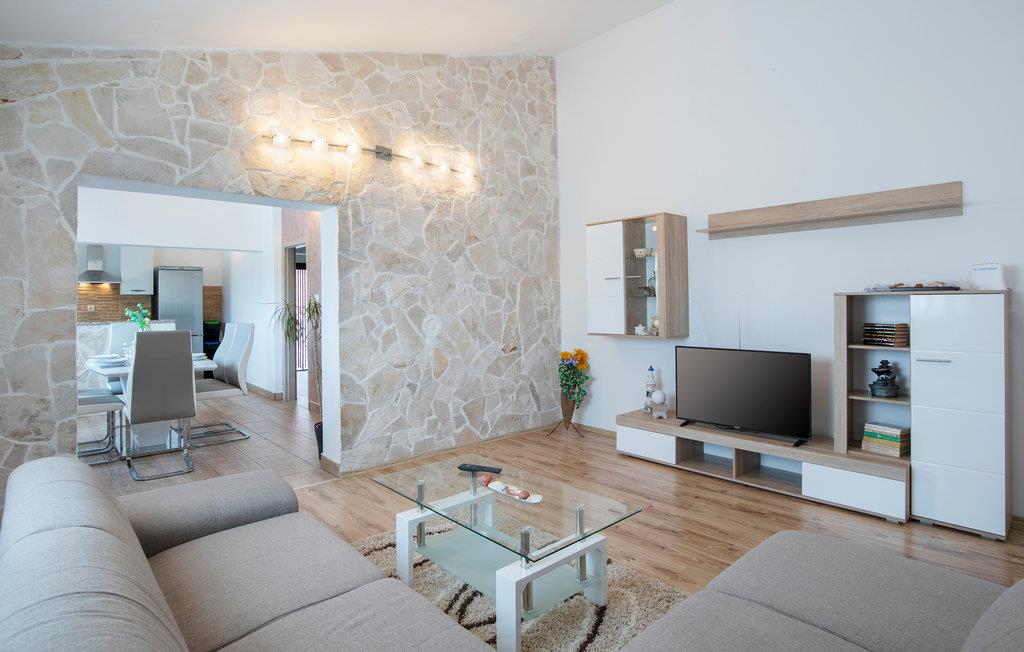Auf einem gemeinschaftlich genutzten Grundstück in Skitaca, in der Nähe von Barban, wohnen Sie in einem praktischen Apartment mit klassischer Einrichtung. Das geschmackvoll und modern eingerichtete Interieur sichert Ihnen einen schönen Start in Ihre Urlaubszeit. Das schöne Naturgrundstück ist besonders für ein unbeschwertes Herumtoben der Kinder geeignet.