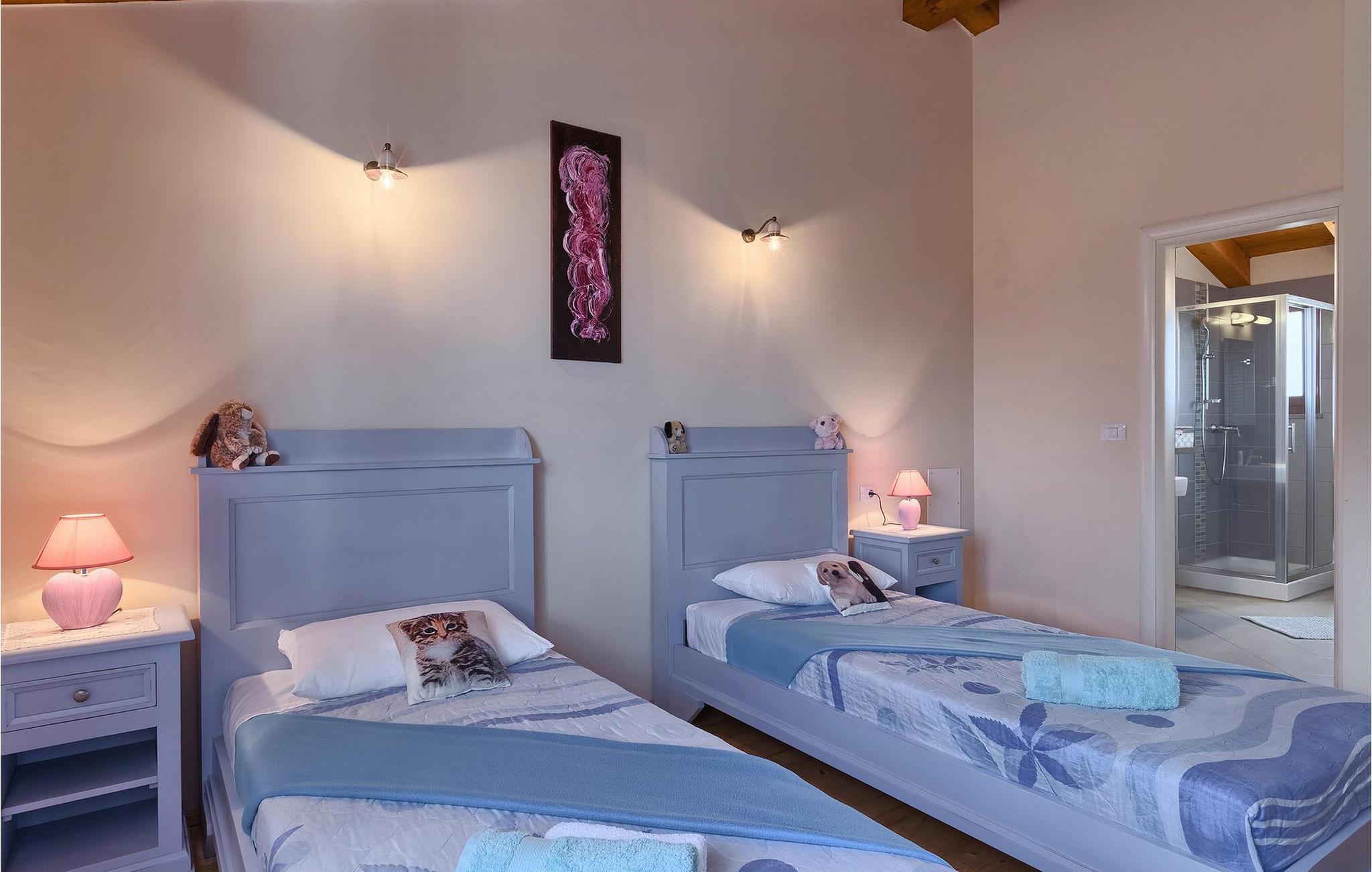 Mit mehr als 175 m2 Wohnfläche, verteilt auf 2 Etagen und mit 4 Schlafzimmern, kann dieses wunderschöne Haus bis zu 8+2 Personen beherbergen. Küche mit Essbereich, Wohnzimmer mit Kamin, 2 Schlafzimmer mit 2 Badezimmern mit Dusche befinden sich im Erdgeschoss. Im ersten Stock befinden sich außerdem 2 Schlafzimmer mit 2 Badezimmern, eines davon mit Badewanne. Die Umgebung des Swimmingpools erstreckt sich über 2000m2 Rasenfläche und ist mit 10 Liegestühlen ausgestattet.