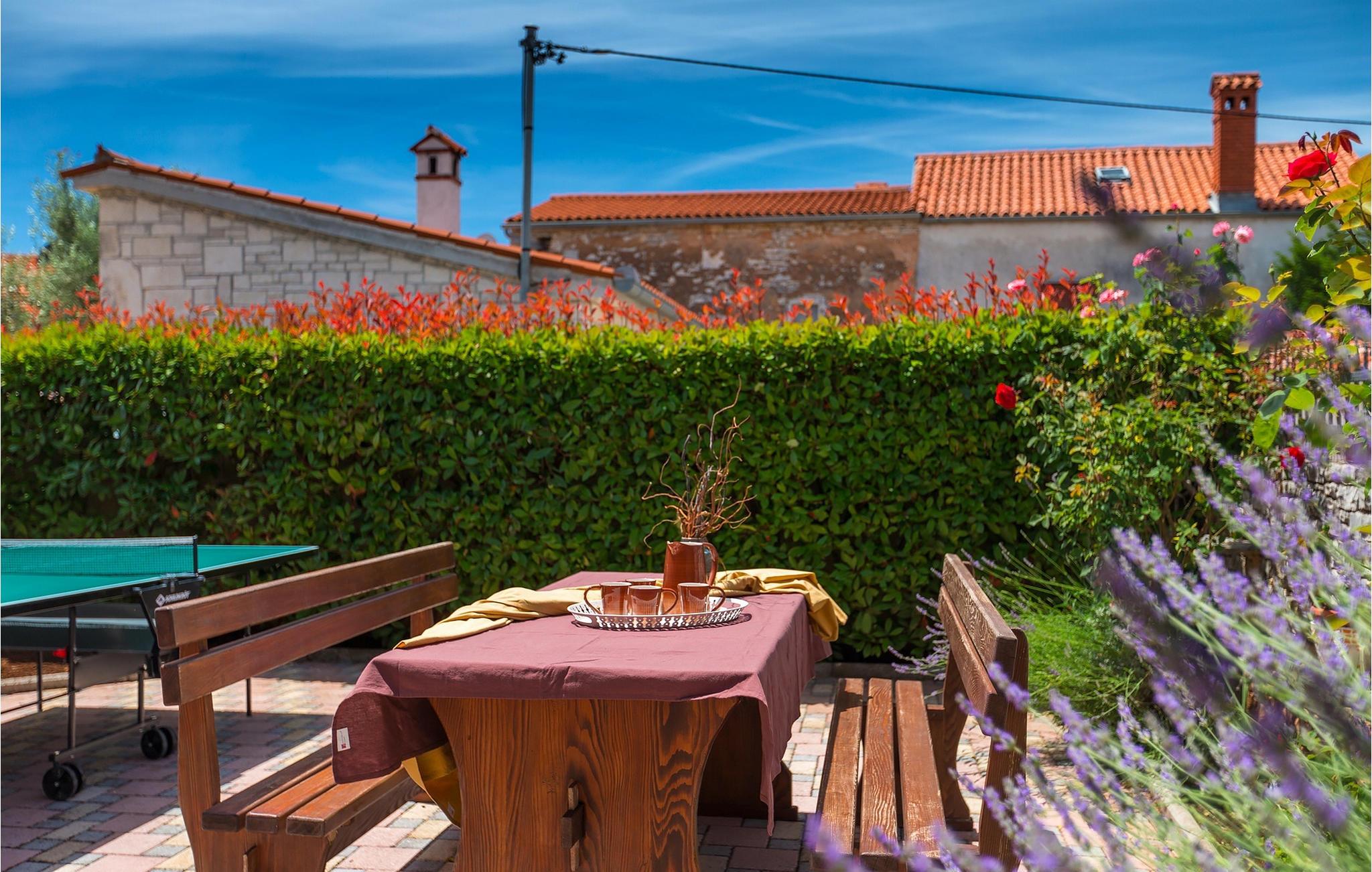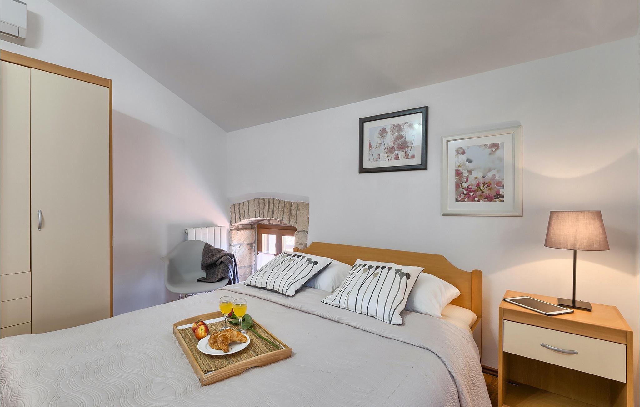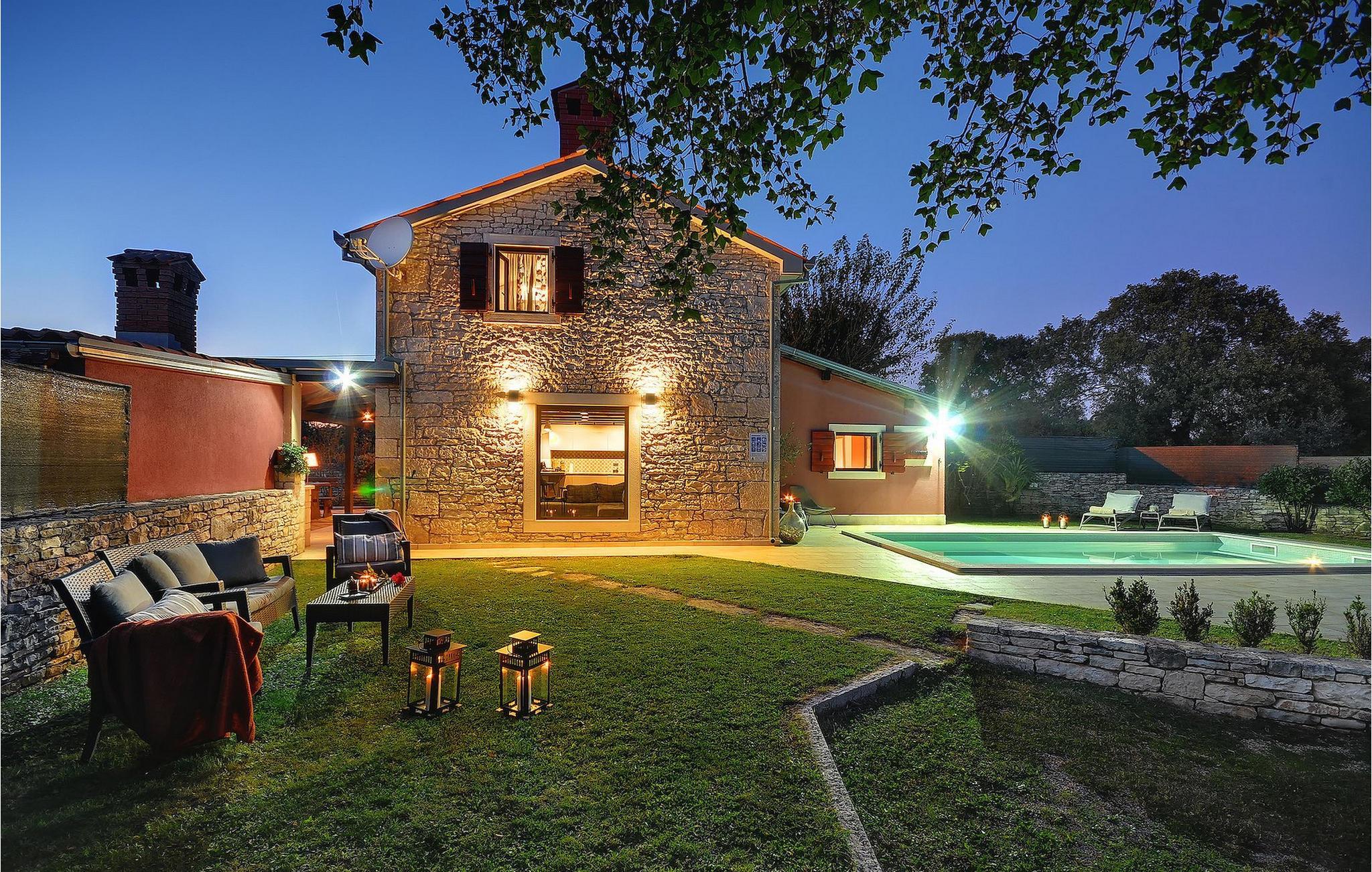 Diese charmante Villa wurde in 1860 gebaut und in 2010 komplett renoviert. Während der Renovierung wurde viel Wert darauf gelegt, den traditionellen Charme der Villa zu bewahren, sowohl im Innenraum als auch im Garten. Im Erdgeschoß finden Sie einen offenen Wohn-/Essbereich, in dem Holzbalken und offene Steinwände eine warme und einladende Atmosphäre schaffen. Für Saison 2018 ist eine Renovierung des Wohnzimmers vorgesehen. Der Kamin wird nicht mehr in diesem Raum sein. Im Erdgeschoß finden Sie auch das gemütliche Schlafzimmer mit Doppelbett, einem eigenen Badezimmer und schönem Blick auf den Poolbereich. 2 weitere Schlafzimmer, die über Klimaanlage und TV verfügen, befinden sich auf ersten Etage. Im ersten Stock gibt es noch ein weiteres Badezimmer. Mit insgesamt 3 Schlafzimmern und einem ausziehbaren Sofabett kann die Villa insgesamt 8 Personen beherbergen. Der Außenbereich ist auch bezaubernd: hier befindet sich der private Pool, der vom sorgfältig gepflegten Garten umgeben ist. Weiterhin können Sie im Garten leckere Mahlzeiten auf dem Grill zubereiten und im Freien essen, während Sie gleichzeitig die Friedlichkeit der istrischen Landschaft genießen. Den jüngsten Gästen steht der private Kinderspielplatz zur Verfügung.Diese wunderschöne Villa liegt inmitten der herrlichen hügeligen Landschaft Istriens ist aber zur gleichen Zeit nur einen Steinwurf vom smaragdblauen Meer und einsamen Kieselstränden der Adria entfernt. Eine sehr gute Pferderanch mit Trekking und Reiten in ihrem Angebot befindet sich gerade im Dorf Manjadvorci. Den Abenteurern stehen zur Verfügung ein großer Adrenalinpark nur 2 km von der Villa, ein Tauchzentrum in der schönen Bucht von Krnica (7 km entfernt), sowie zahlreiche verschiedene Wander- und Radwege in der Nähe der Villa. Hier gibt es eine große Auswahl an Gourmetgerichten zubereitet mit köstlichen lokalen Erzeugnissen, was bedeutet, dass Sie nie weit gehen werden müssen, um ein hervorragendes Essen zu finden. Ihre Lebensmitteln können Sie auch direkt von den lokalen Herstellern kaufen. Um die letzte Zutat zu dieser reichen Vielfalt an Aktivitäten hinzuzufügen, liegen die historische Stadt Pula, die für ihr atemberaubendes Kolosseum weltberühmt ist, und die lebendigen touristischen Hot Spots nur wenige Fahrminuten entfernt, sowie die Fähren für eine Tour um die atemberaubend schönen umliegenden Inseln.