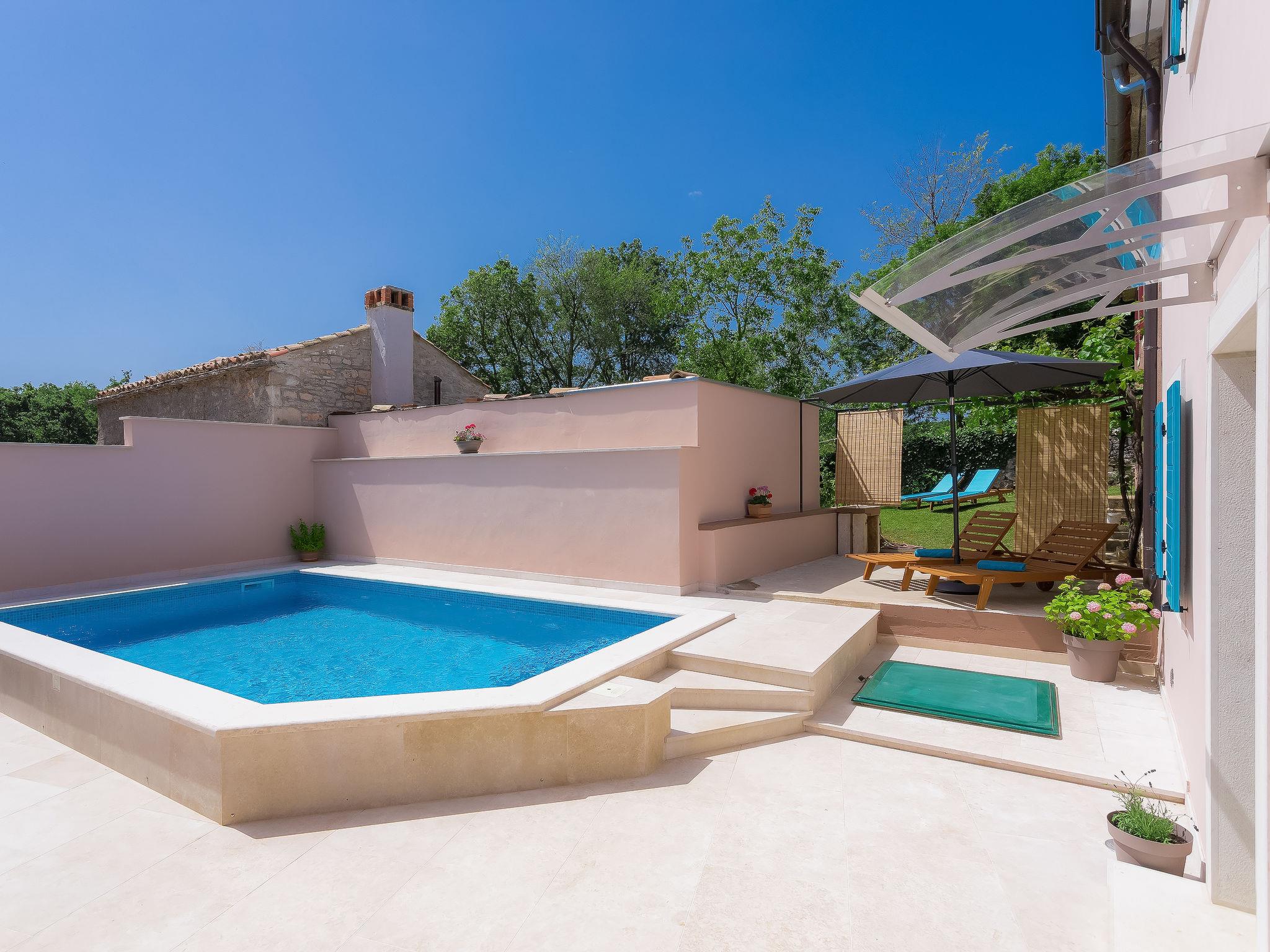 Beautiful single-family house "Mala Mare", 2 storeys, renovated in 2019. In the hamlet Regulici 4 km from the centre of Barban, in a quiet, sunny position, 10 km from the sea. Private: property 100 m2 (fenced), swimming pool angular (6 x 3 m, 21 m2, depth 140 cm, seasonal availability: 16.Apr. - 10.Oct.) with internal staircase. In the house: internet access, washing machine. Parking at the house on the premises. Shop 4 km, supermarket 4 km, restaurant 2.5 km, bus stop 3 km, pebble beach 12 km, rocky beach 10 km. Riding stable 12 km, walking paths from the house 100 m, cycle lane 150 m. Nearby attractions: adrenaline park 10 km, adventure park 10 km. Please note: airfield 27 km from the property. By groups of young people double deposit is requested on arrival.
