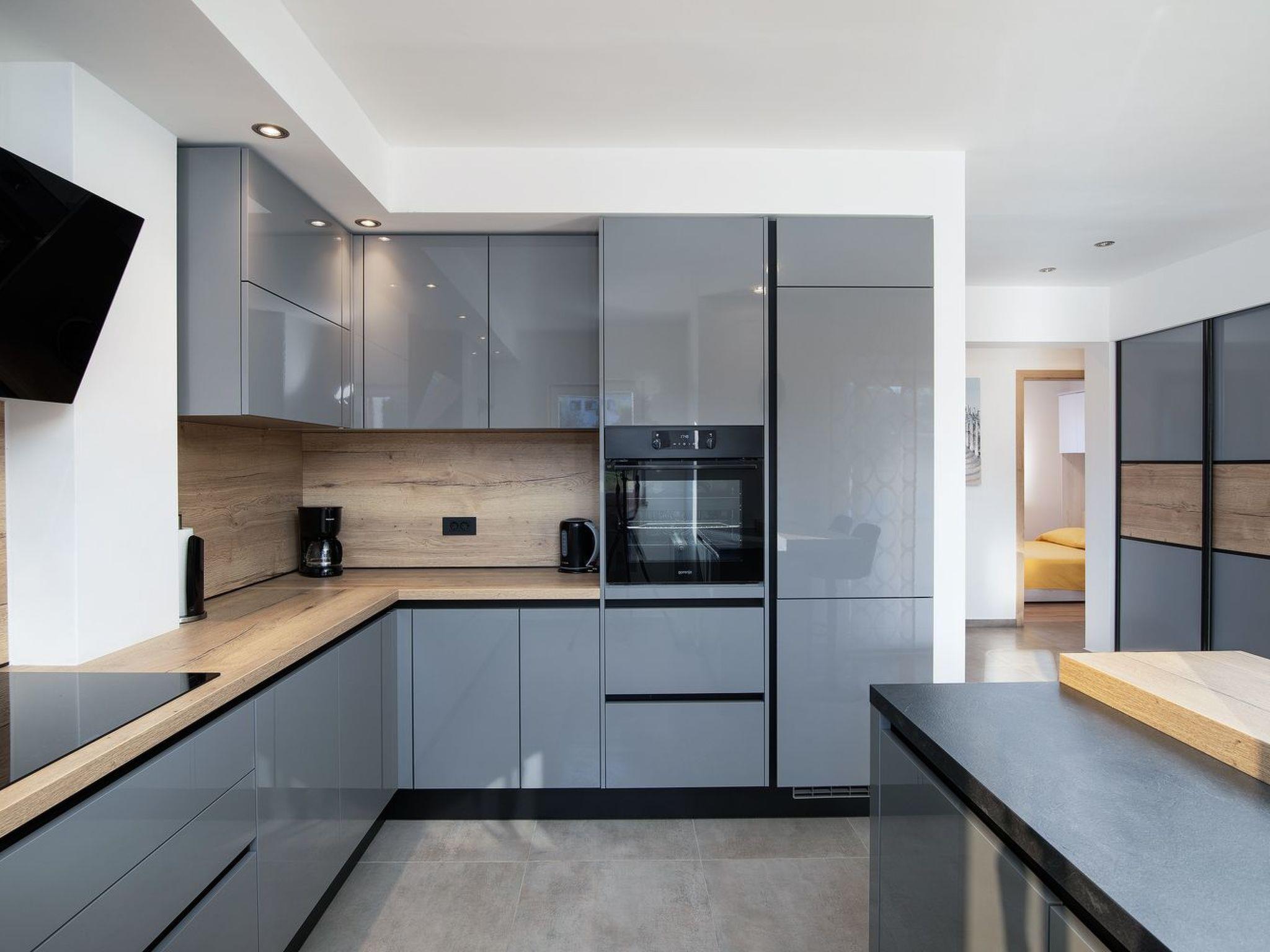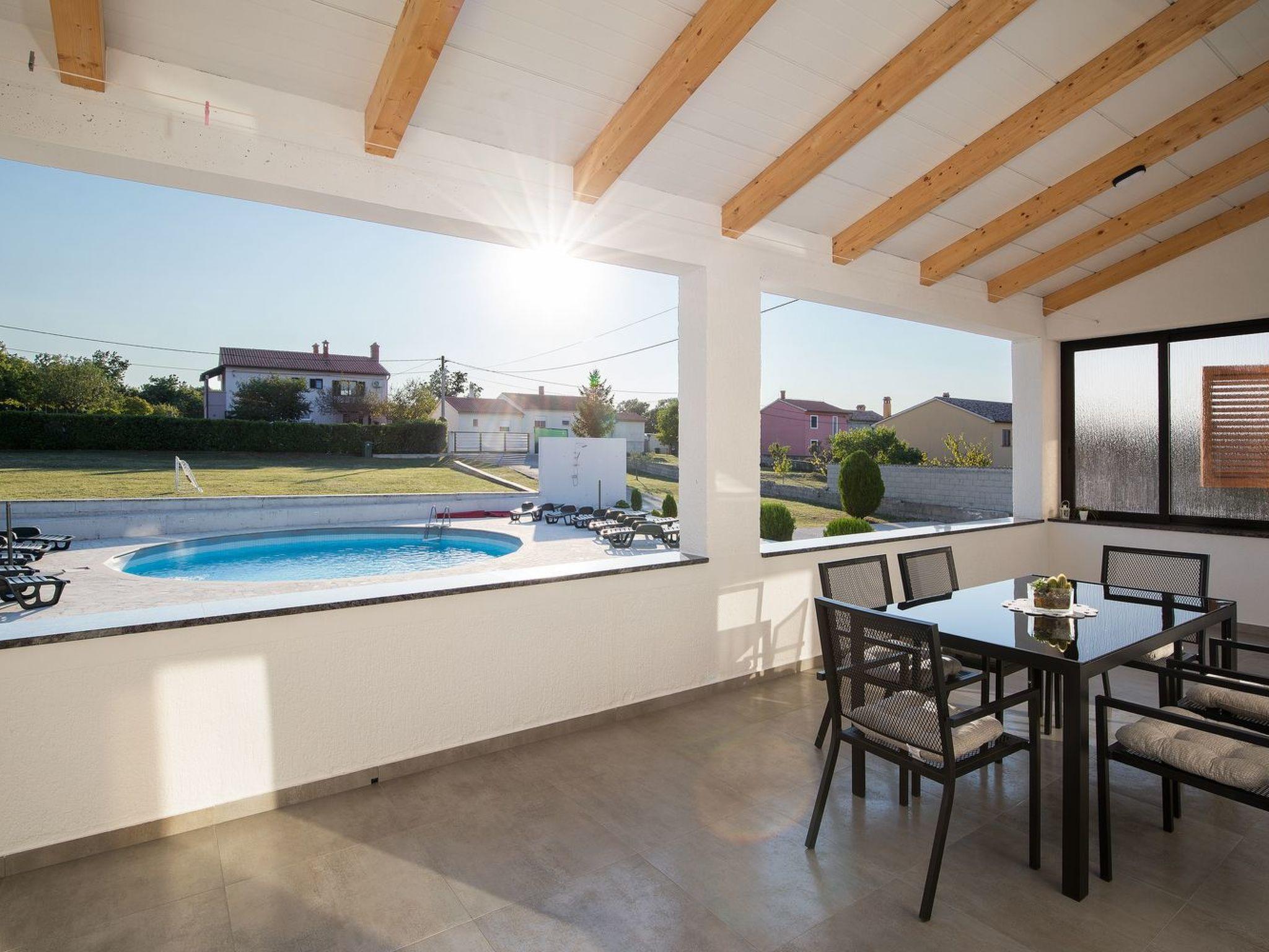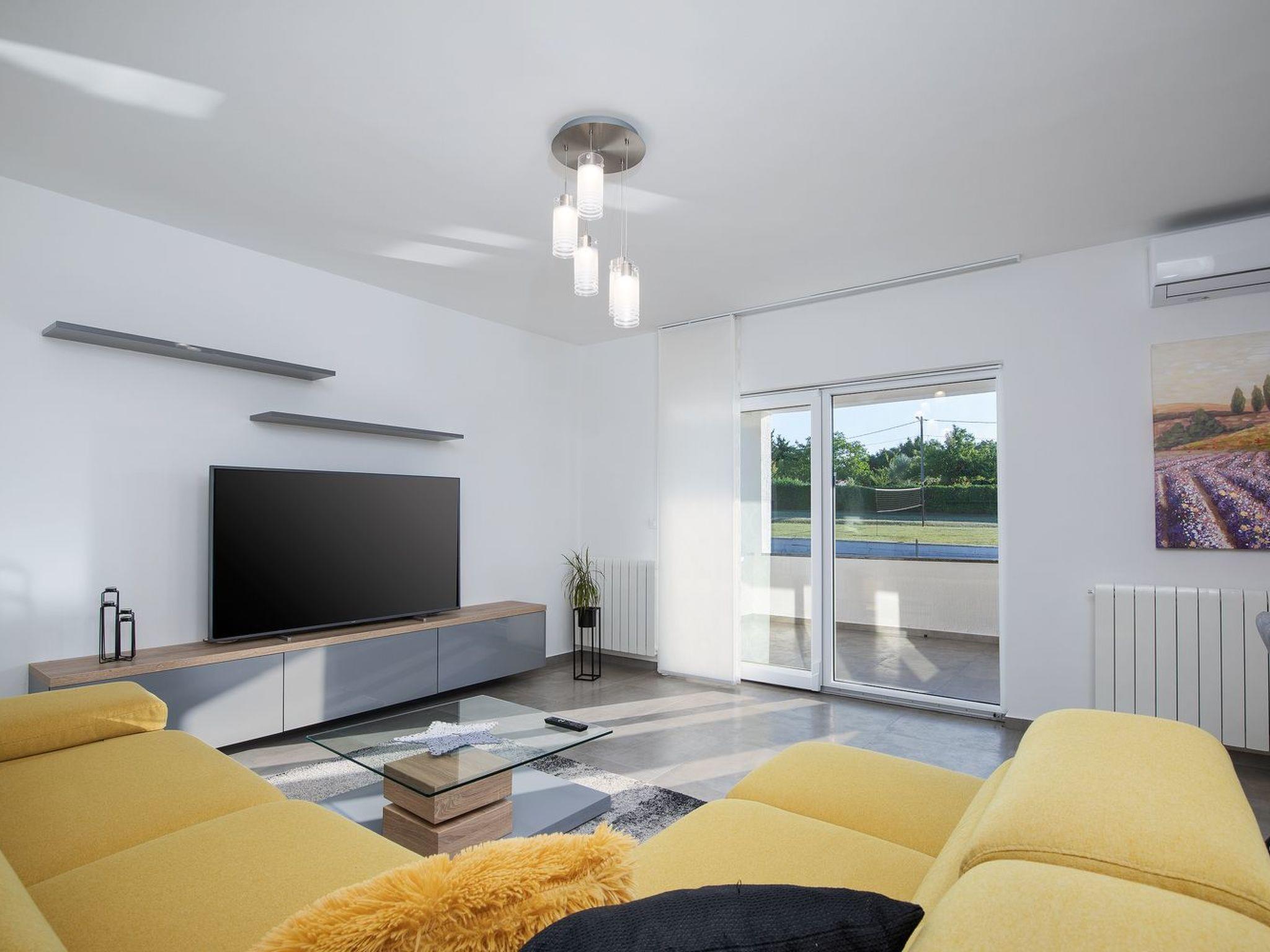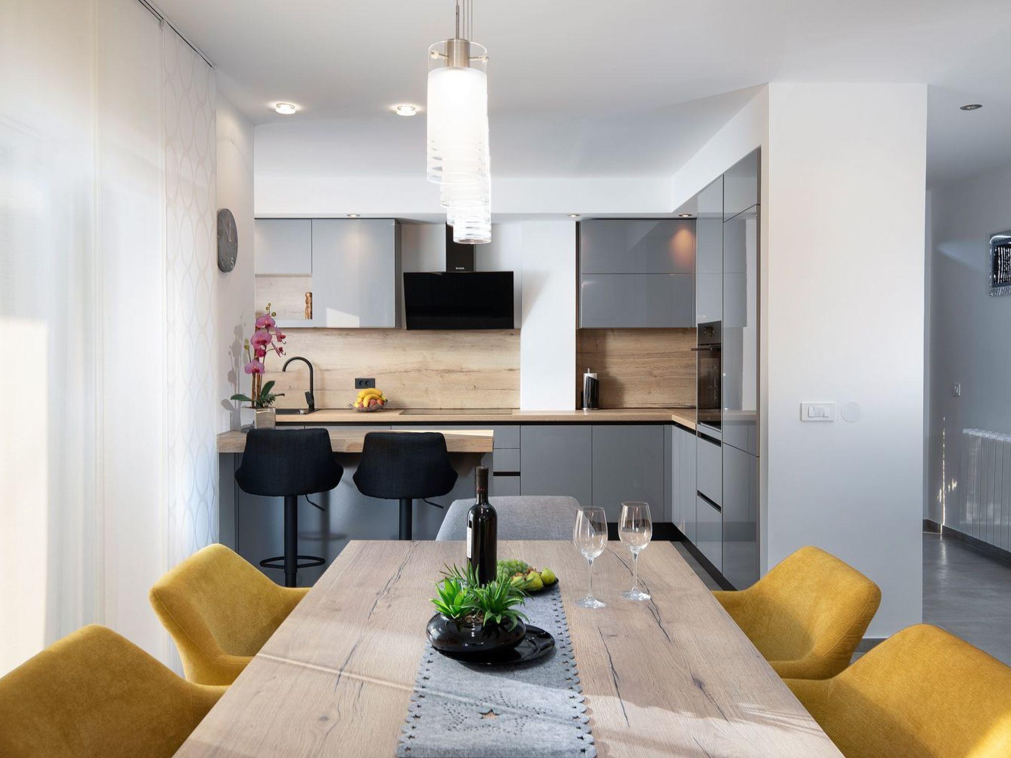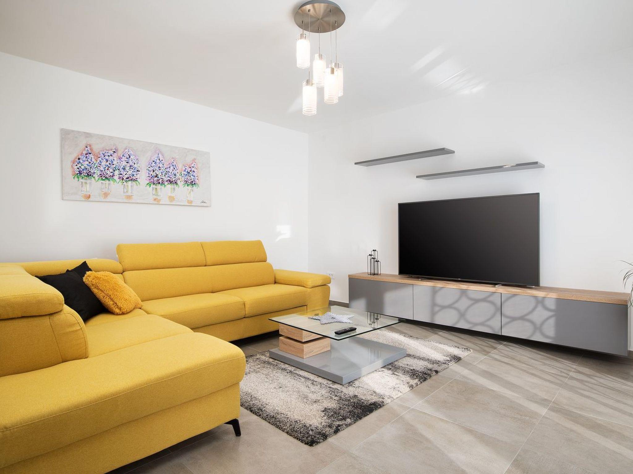 Well equipped apartment with plenty of space will meet the requests of the bigger family or smaller groups of friends. To make your stay complete, the garden area of 2000 m2 with shared pool, BBQ, sitting furniture, volleyball court and children playground is on your disposal. Parking space on the property, wi-fi and air condition are included in the price. Baby cot: on request; free of charge.