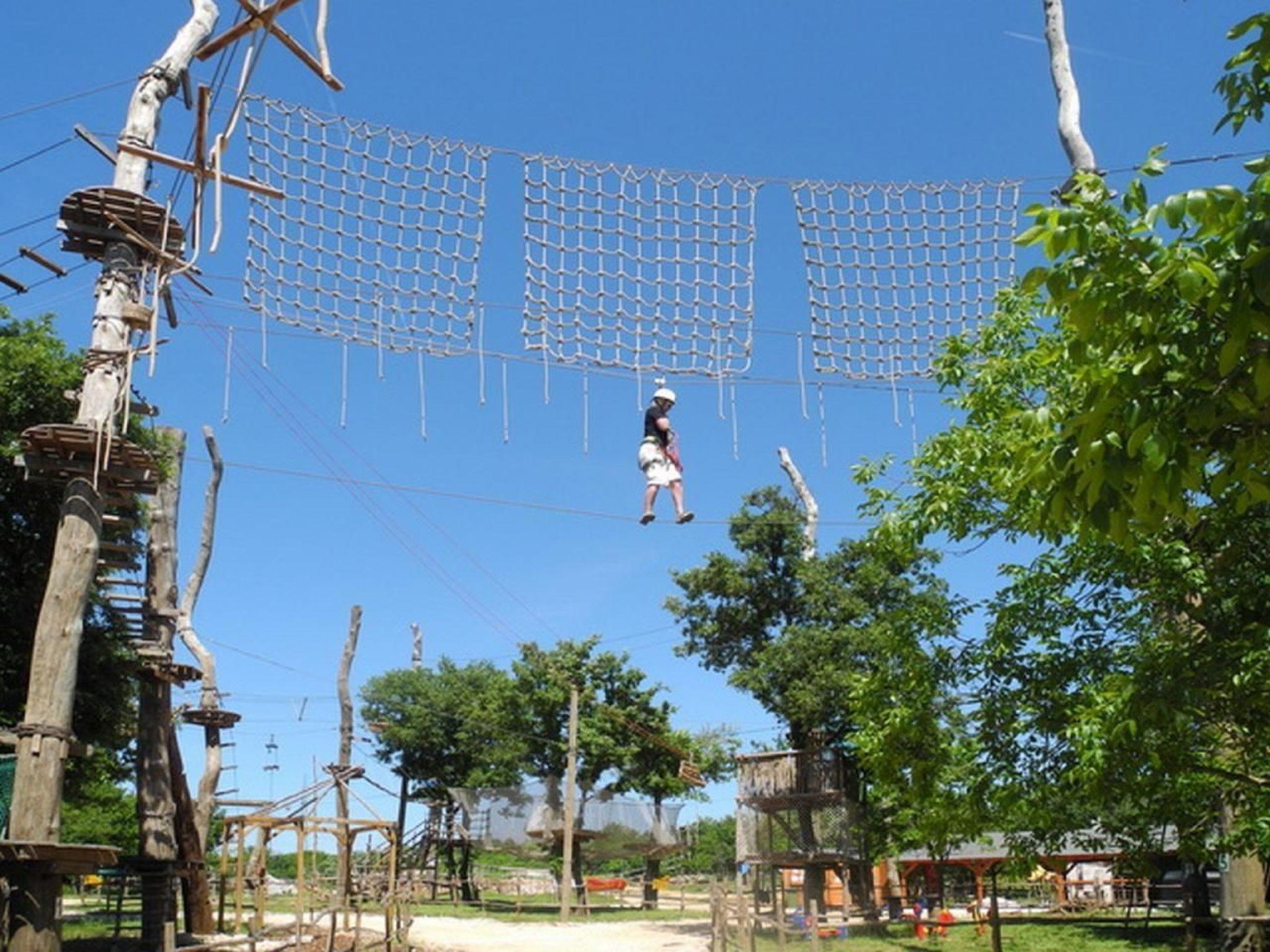 -garden with pool, sun beds, sun umbrella, BBQ, sitting furniture, volleyball court and children playground
