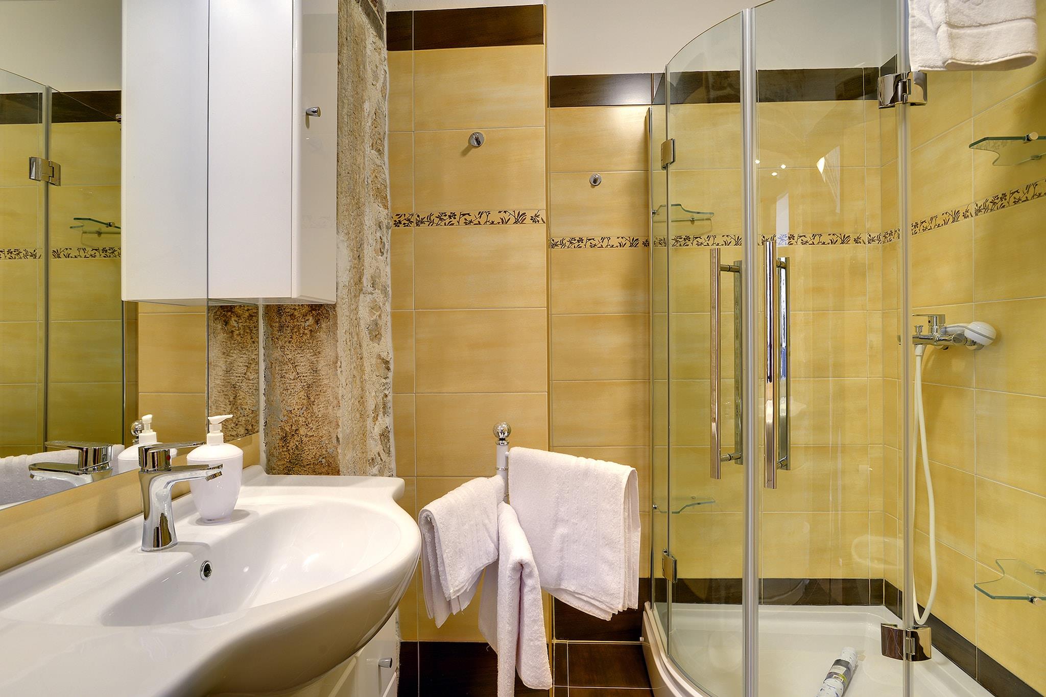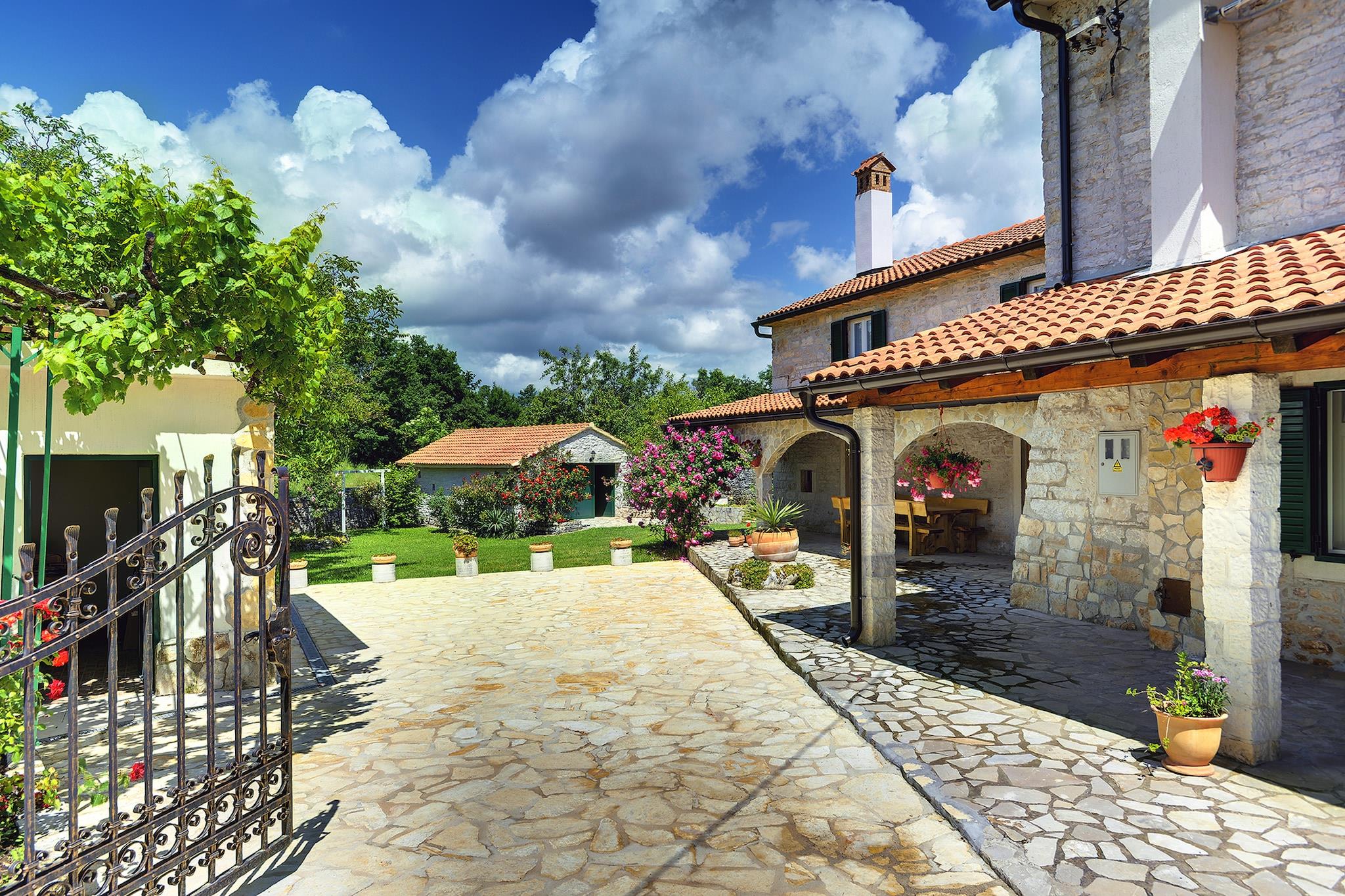 This pet-friendly holiday home in Rojnici comes with 7 bedrooms and offers a pleasant stay for a group of 14 people or families with children . The private swimming pool and roofed terrace is perfect to enjoy in a 3700 square meters of private land. There are two houses with separate entrances, both are on two floors. In one house there is living room, dining room and kitchen with five bedrooms, three bathrooms and two additional sleeping possibilities in the attic on two separate beds. While in the other, there is also a living room together with kitchen and dining room, but it has two bedrooms and two bathrooms. A vacation here is one of pure bliss with the serene natural location. At 12 km lies the beach where surfing, sunbathing, or other beach activities are possible. You can relax here without any worries about your daily needs as the supermarket and restaurants are at 3 km. There is a fireplace in the living room to lounge during the evenings. All the bedrooms have double beds and satellite TV to keep you connected to your favourite shows. Kids can retire on the children's bed and even spend time with the play equipment in the garden. barbecue is delectable and enjoy it with the family on the roofed terrace. There is a public transport at 7 km and train station at 30 km.