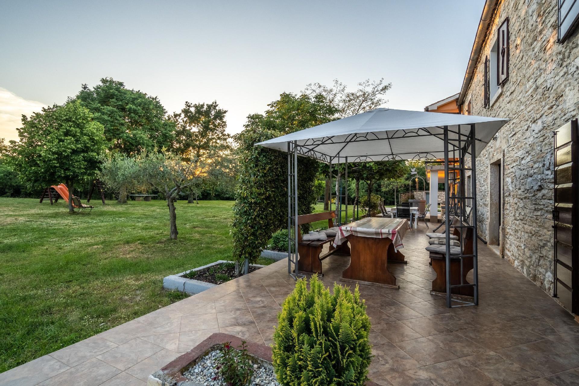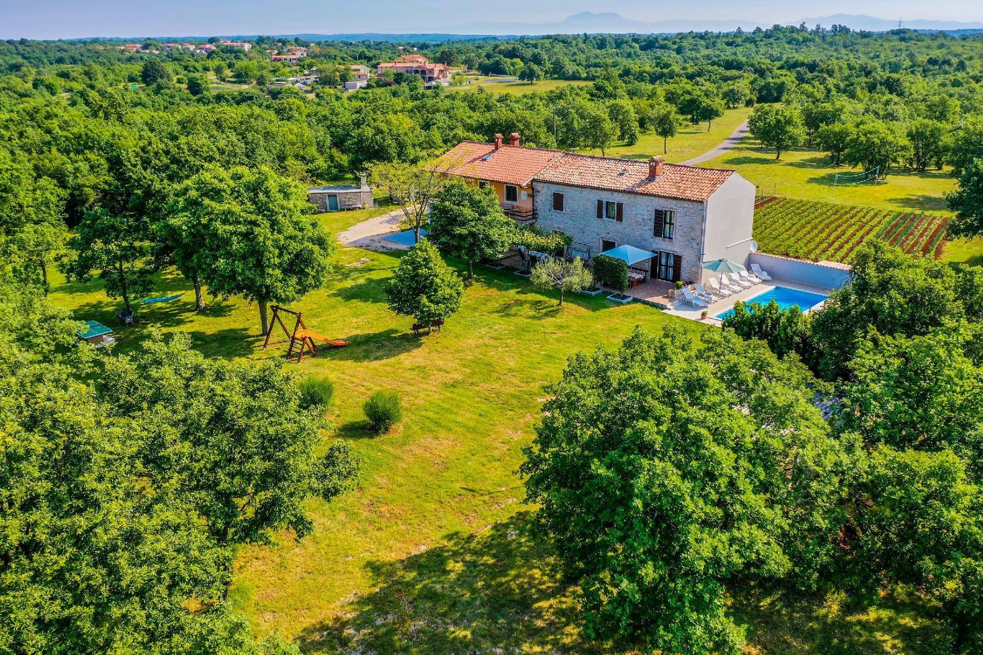 Beautiful house with huge green surrounding and private swimming pool is located in a tiny picturesque village called Bulici. Location in the inland Istria makes this property a nice choice for relaxing and peaceful holiday. Outside activities on the spacious private property include various sports, children playground or just swimming and laying by the pool. Evenings under the open air with tasteful BBQ dinner will be a nice closure of the long summer day.