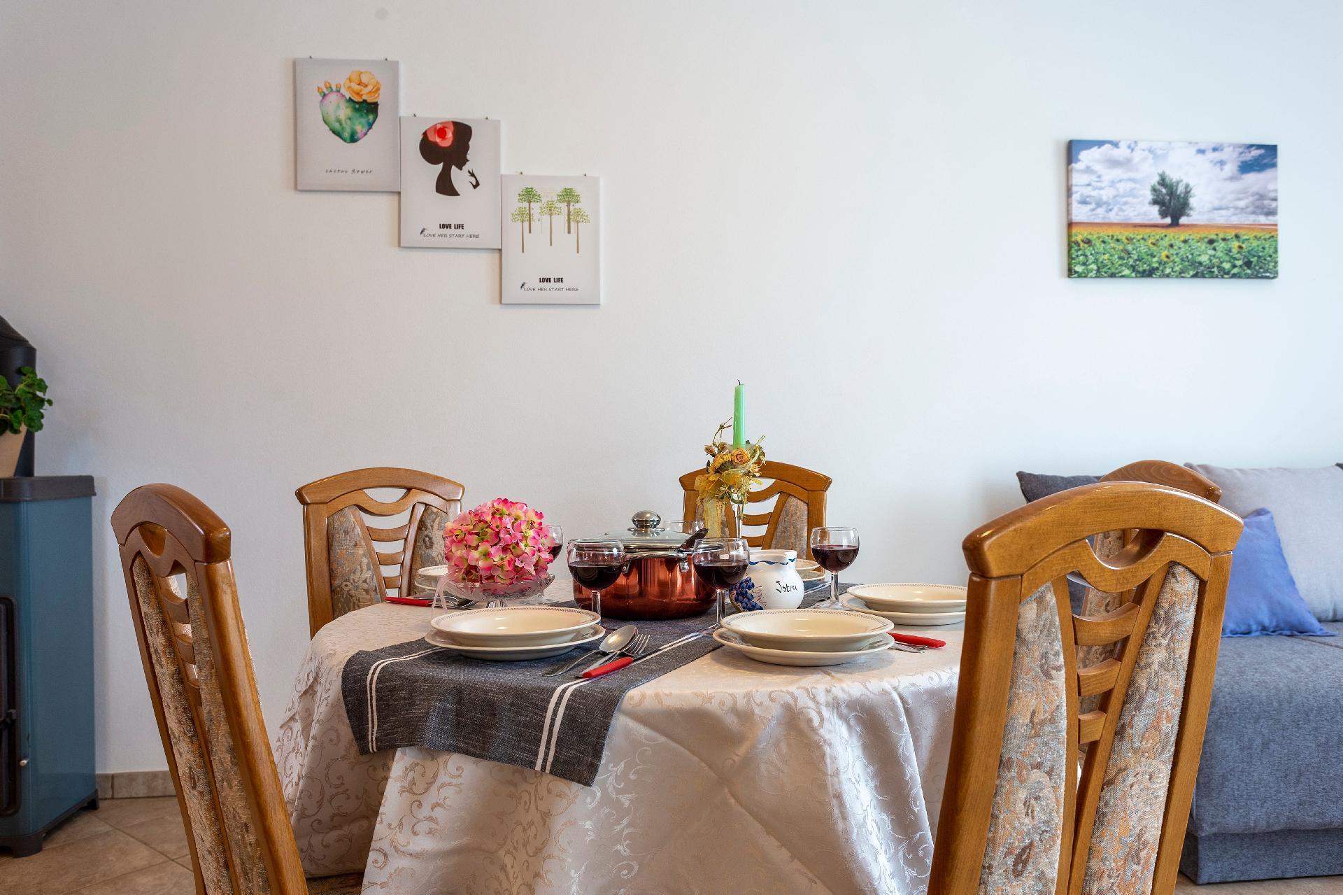 Step inside to find a beautifully appointed interior that combines comfort with elegance. Villa Mirela features two cozy double bedrooms, ensuring a restful night's sleep for all guests. The heart of the home is its inviting kitchen, equipped with modern amenities and adjoining a dining room perfect for enjoying meals together. The living room, a blend of style and comfort, offers direct access to the terrace, creating a seamless indoor-outdoor living experience. Air conditioning and WiFi internet connection are provided to enhance your stay, ensuring your utmost comfort at all times.