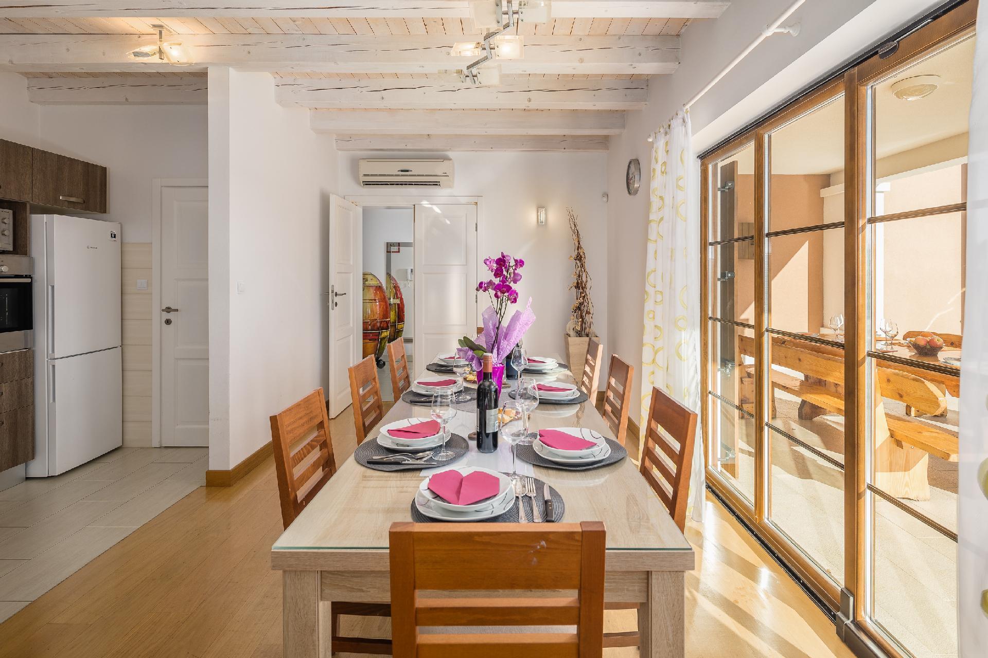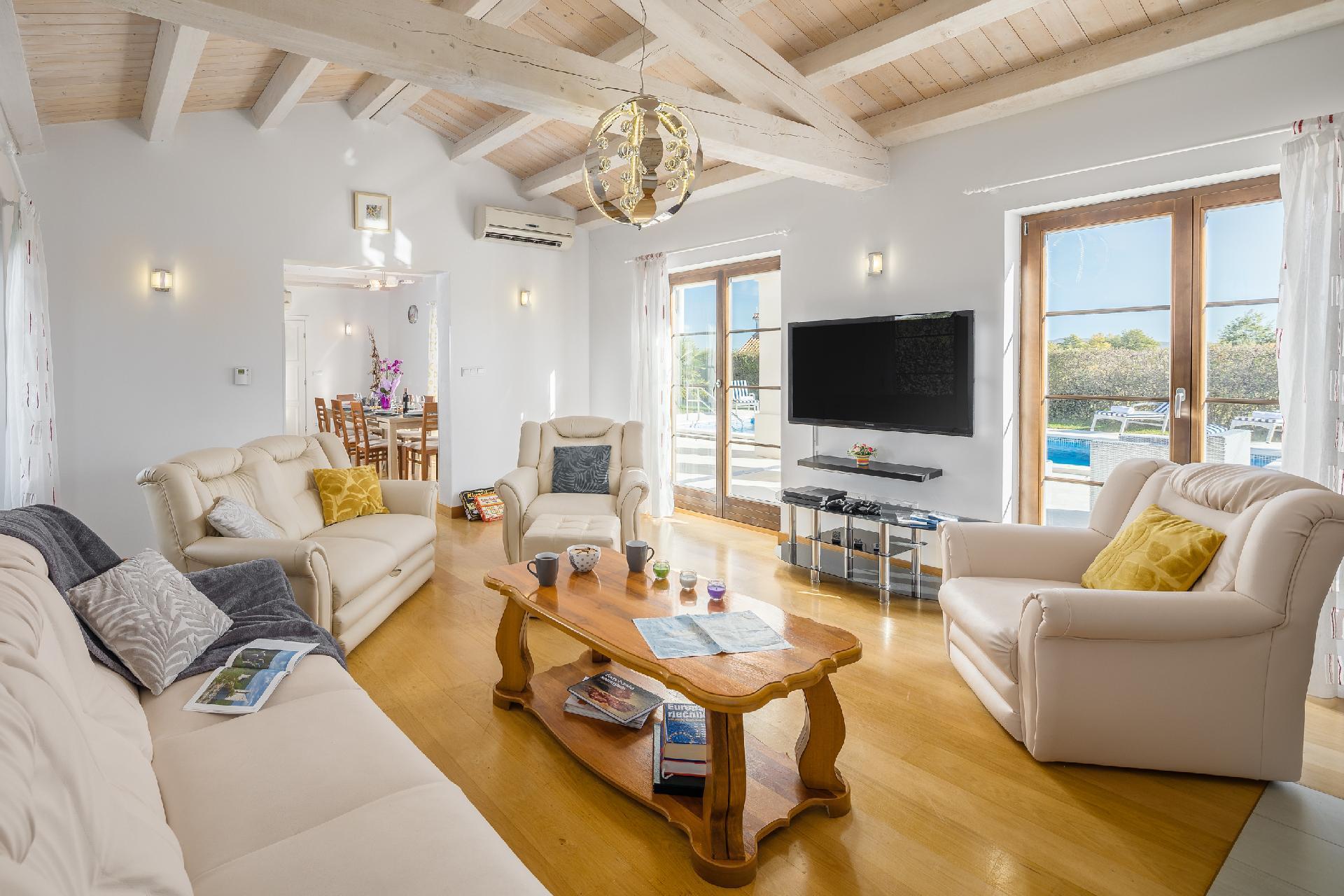 Villa Kanco is located in the place Frkeci close to the small town Barban. Nearby beaches are located in places called Krnica, Rabac, Rakalj approximately 15 km from the villa, and 40 km from beautiful famous touristic pearls such as Rovinj, Porec, Vrsar, Rabac. Villa is suitable for renting in winter time because it has heating all over the house.