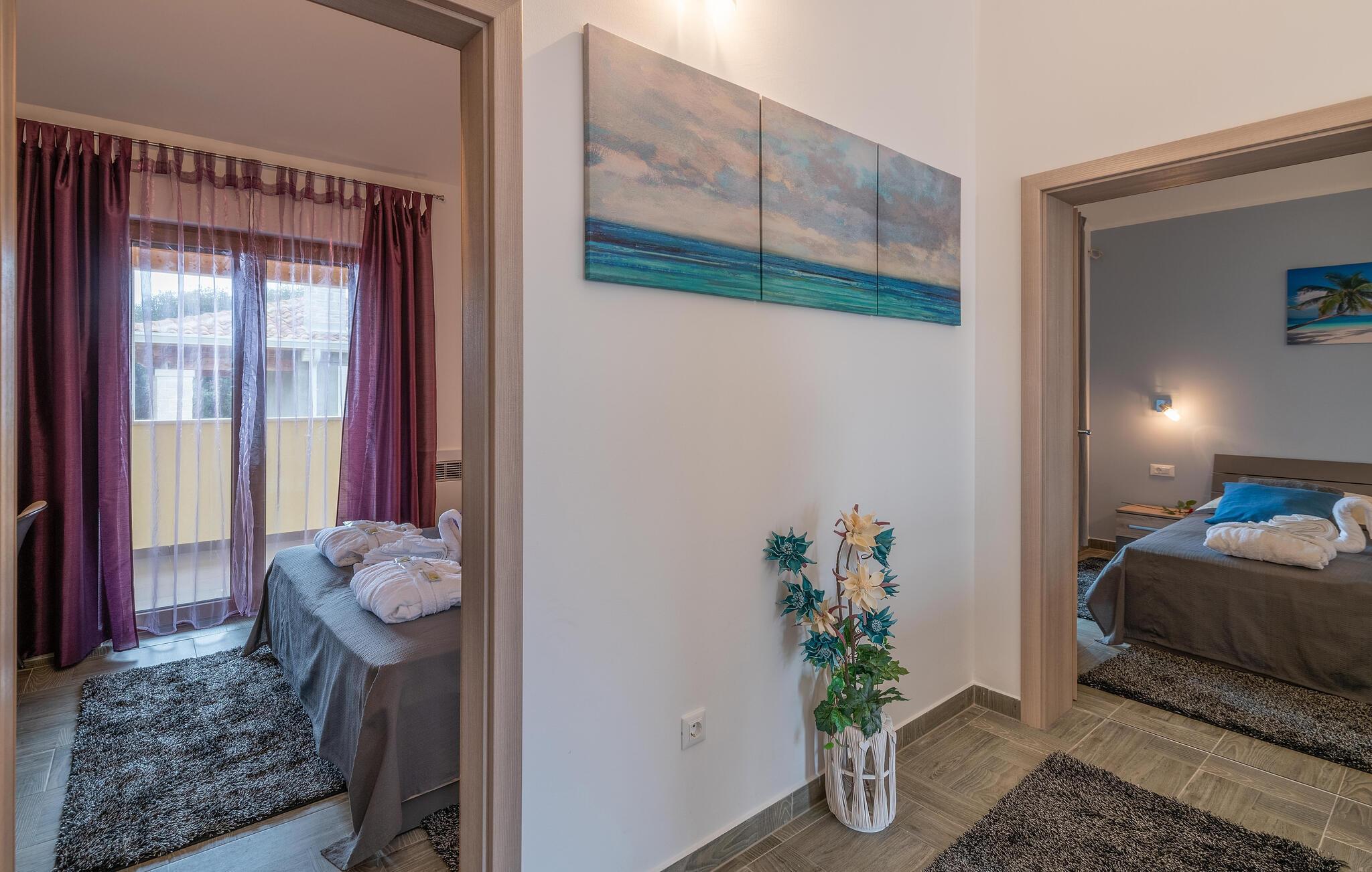 Packen Sie Ihre Strandtasche und gehen Sie in wenigen Minuten zum kiesigen Felsstrand. Genießen Sie das herrliche Meer und ziehen Sie Ihre Bahnen durch die Wellen. Zudem können Sie nach einer kurzen Autofahrt die Stadt Pula erreichen. Dieser einzigartige Ort überzeugt durch eine lange Schiffbau- und Marinetradition, die eine eher industrielle und urbane Atmosphäre verbreitet. Die Stadt bietet einen Mix aus verschiedenen kulturellen Einflüssen und hat viele interessante und liebenswerte Ecken, die es zu erkunden gilt.