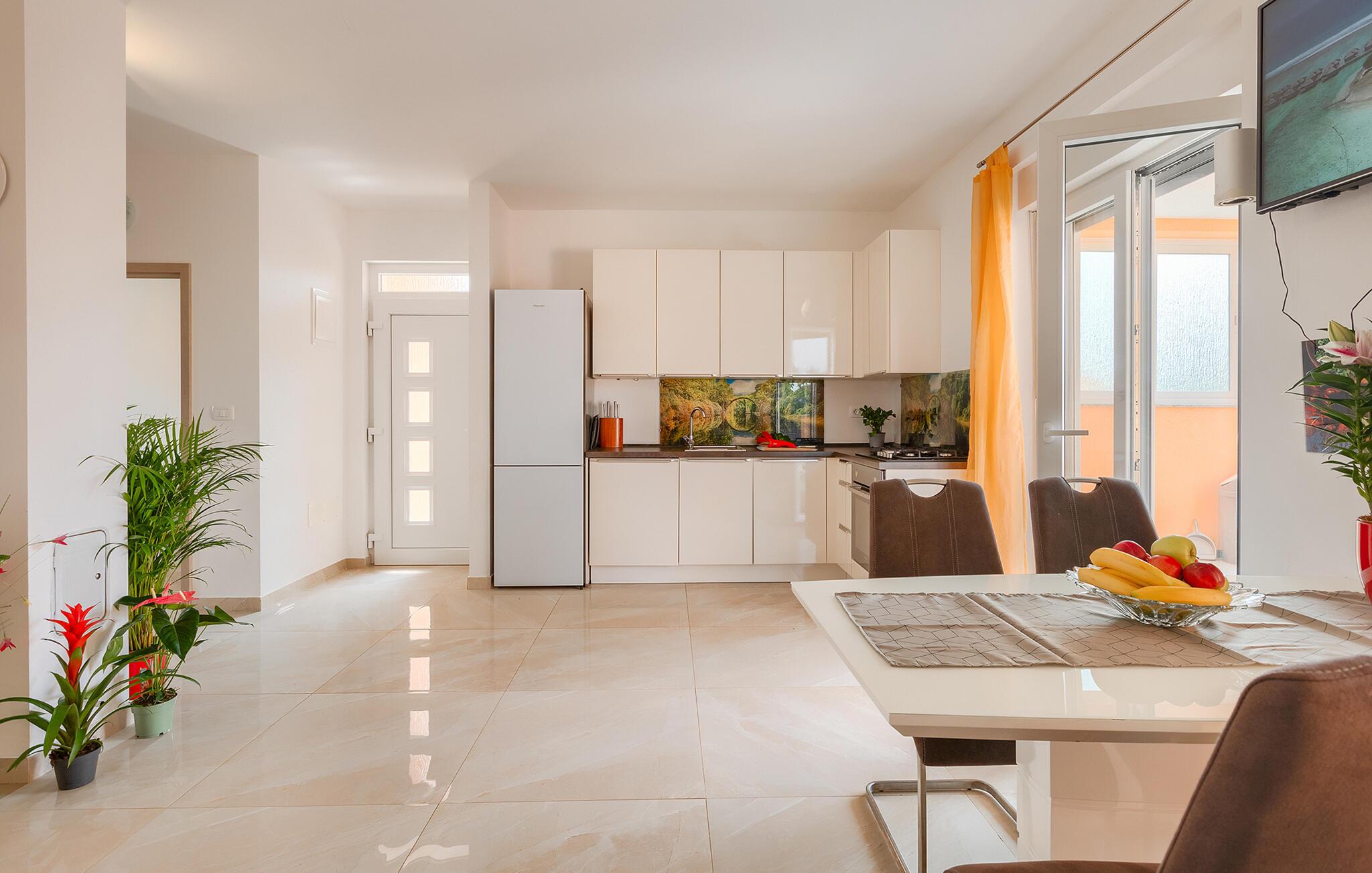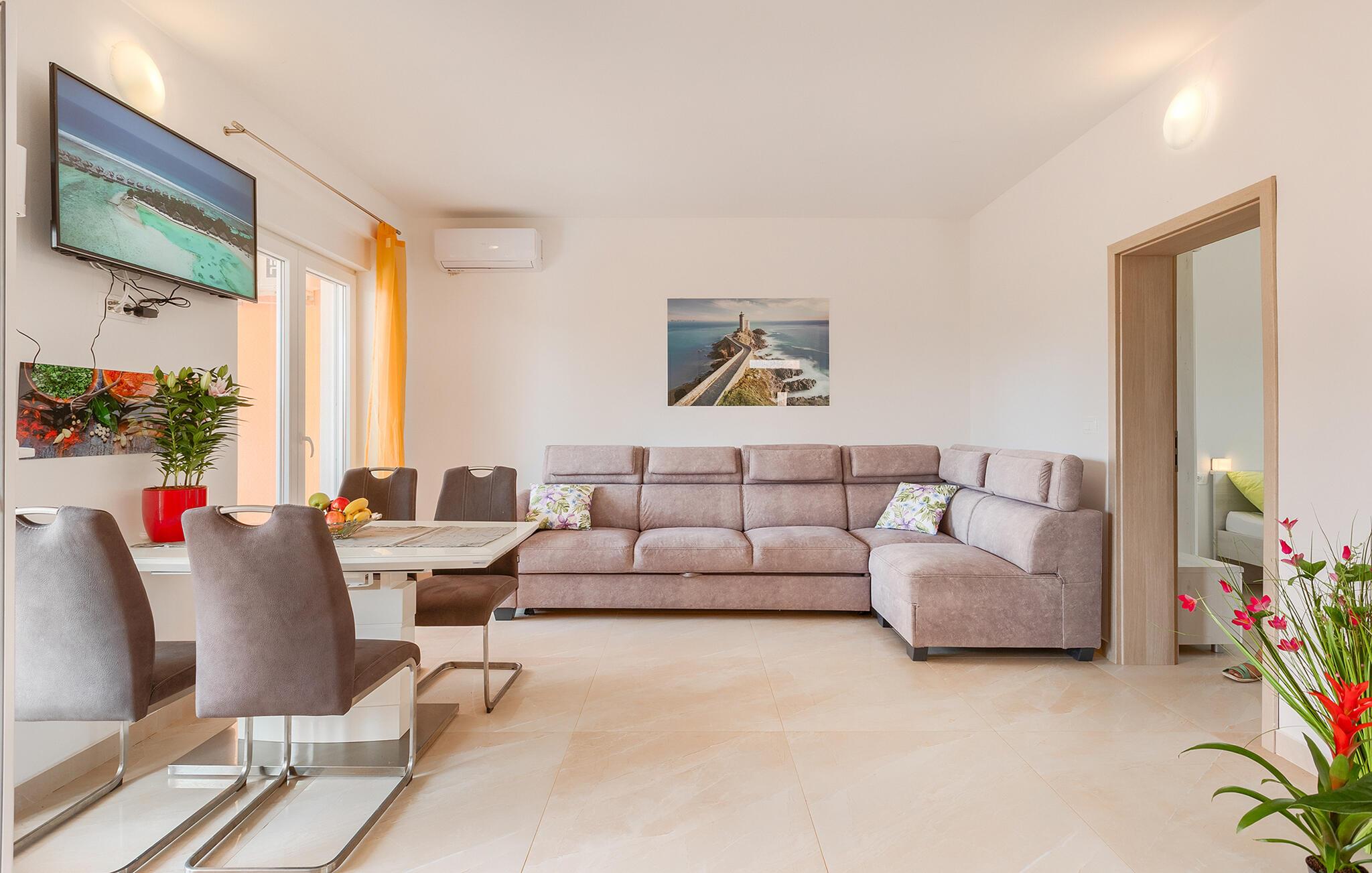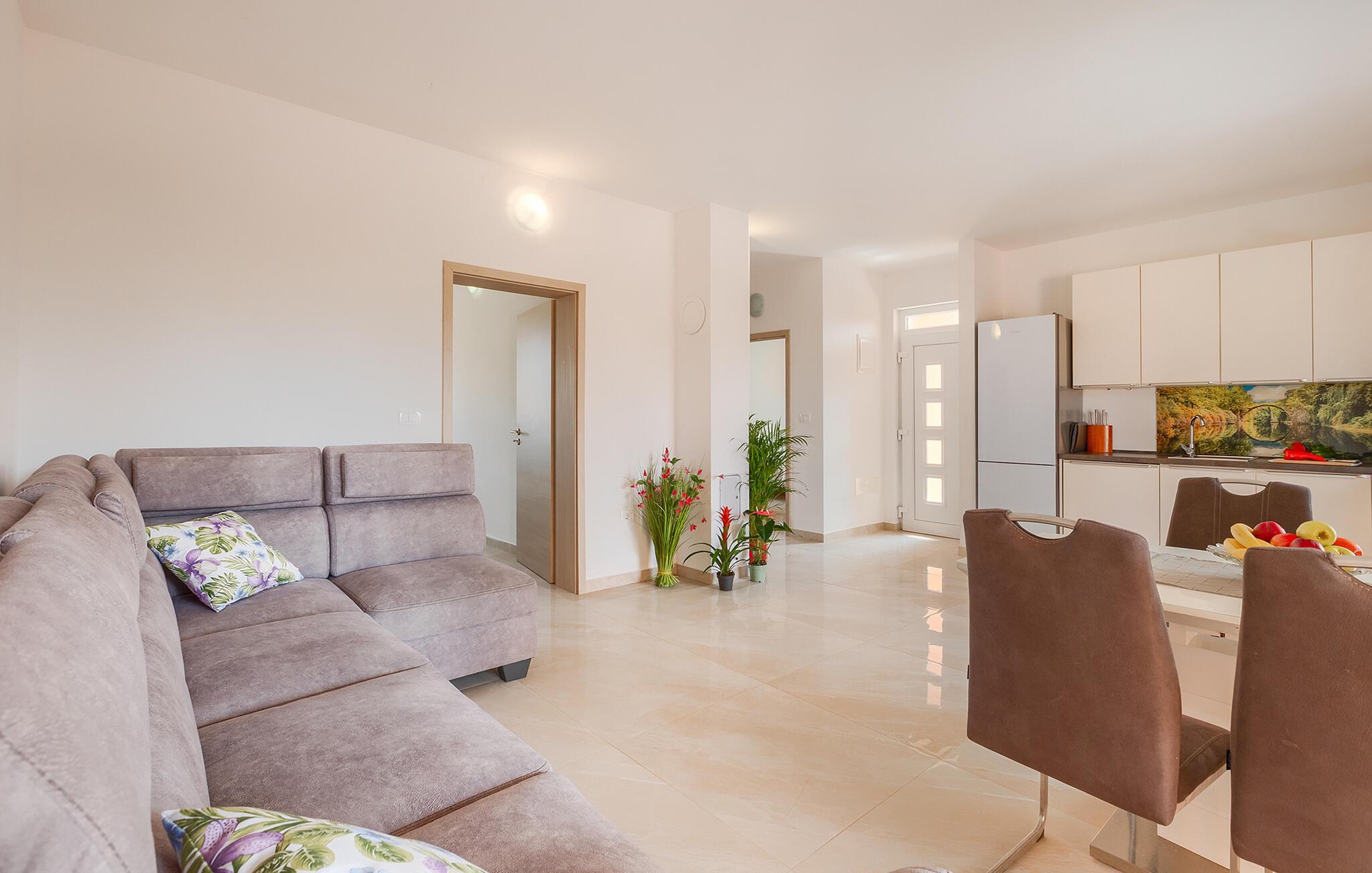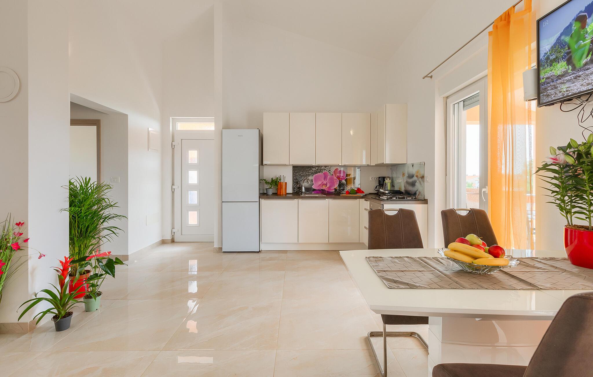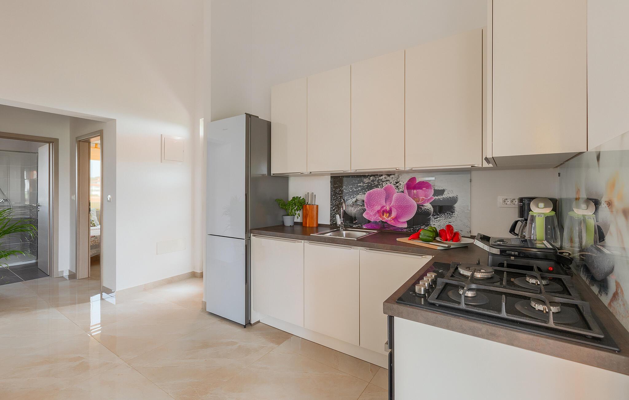 Dieses moderne Feriendomizil bietet reichlich Platz und Komfort, um gesellige Tage mit Freunden oder der Familie zu genießen. Freuen Sie sich auf stimmungsvolle Koch-Events in der offenen Küche, machen Sie es sich für einen Spieleabend auf der gemütlichen Sofalandschaft bequem oder streamen Sie eine spannende Serie.