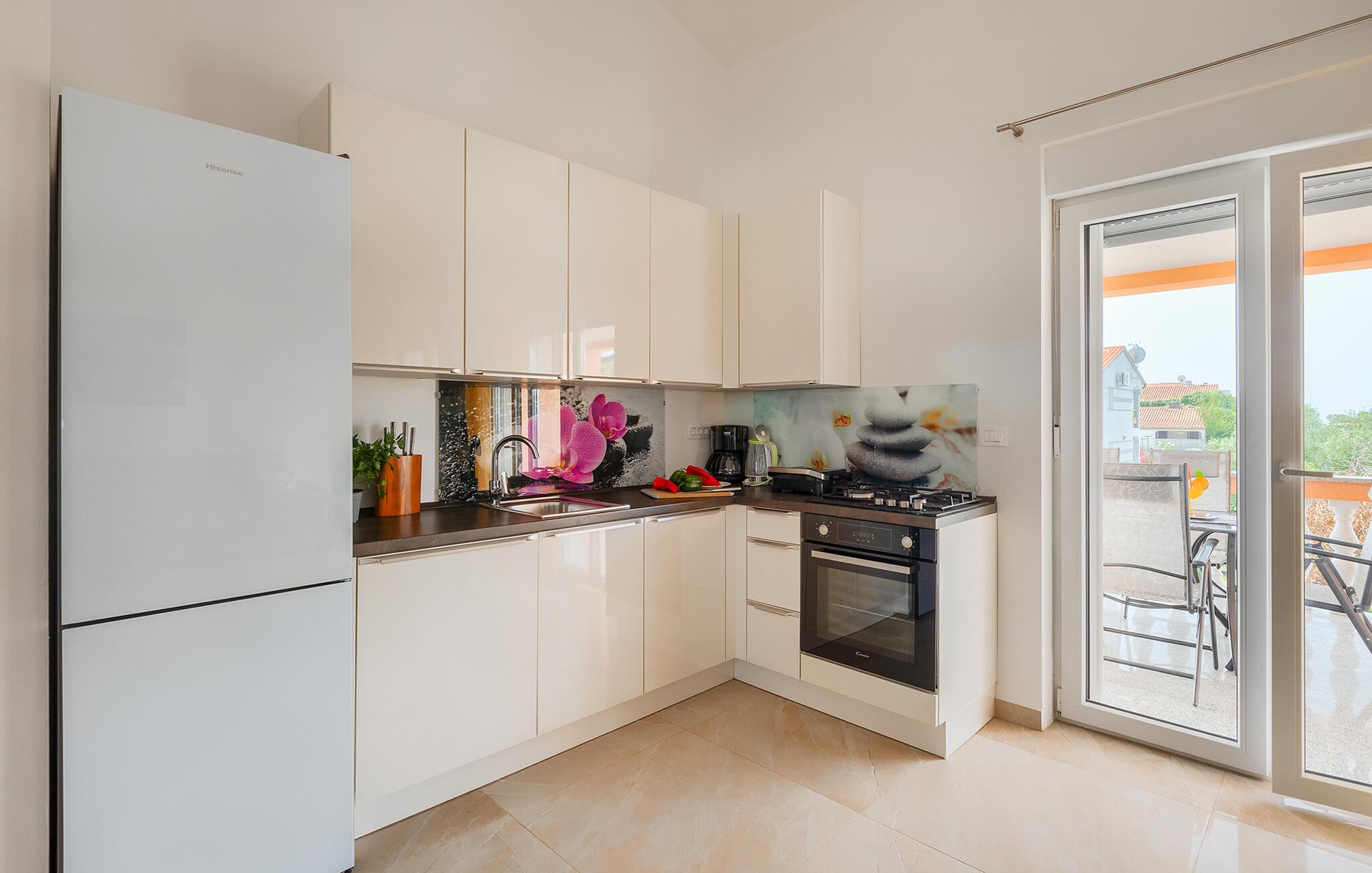 The kitchen has hot and cold water