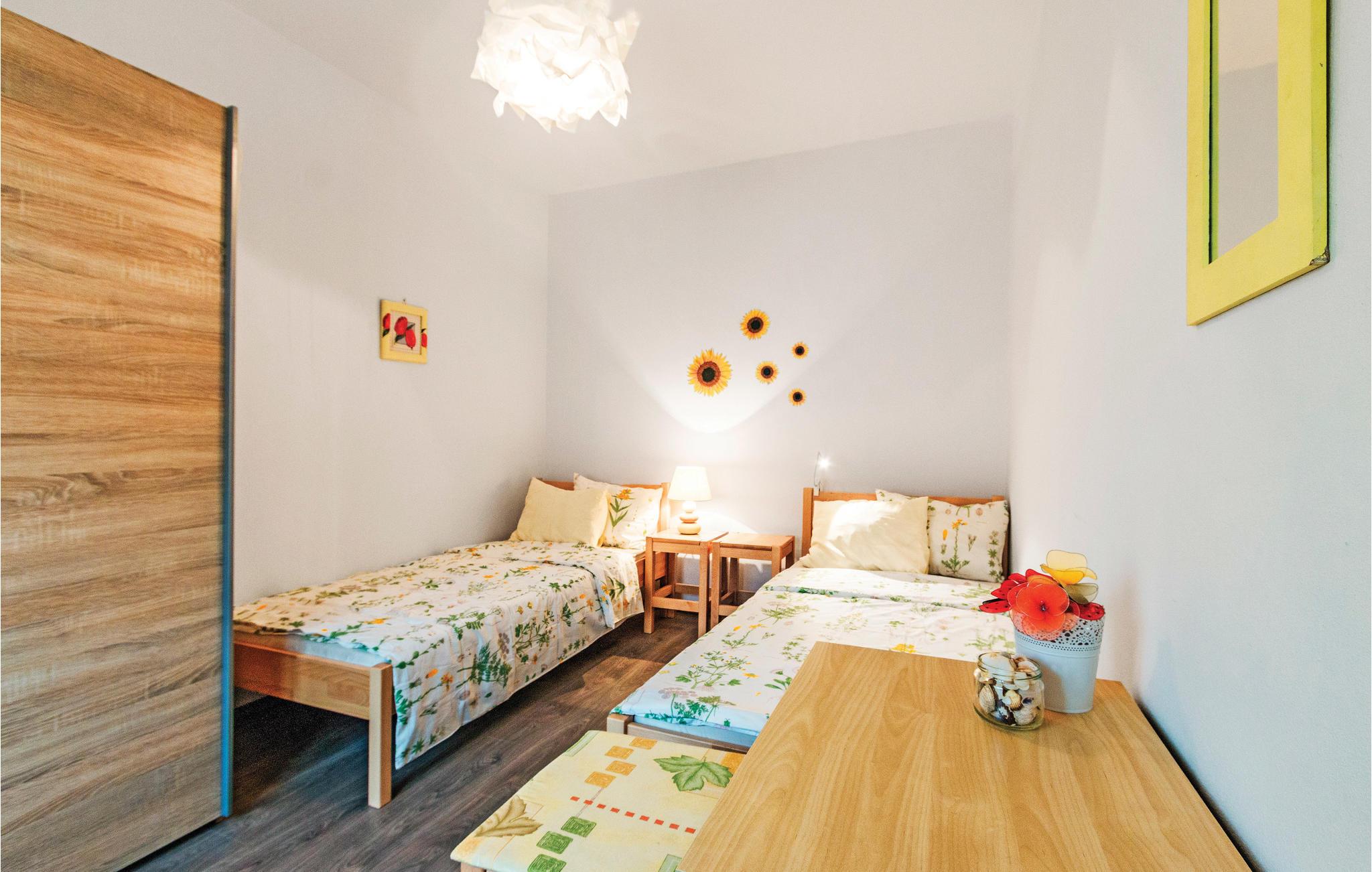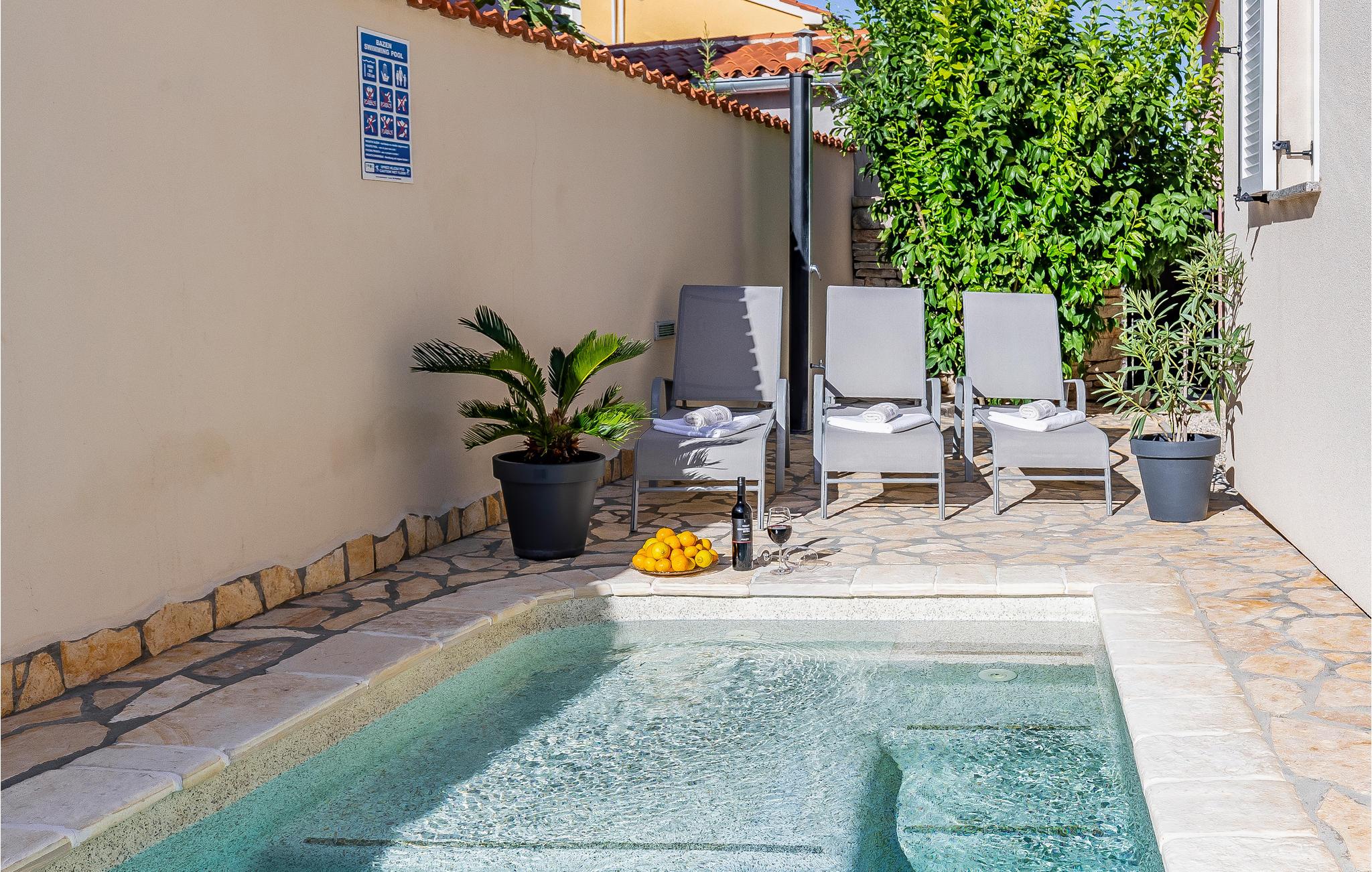 Diese komfortabel eingerichtete Doppelhaushälfte befindet sich im ruhigen Ort Betiga, einem Teil von Barbariga. Die zwei Wohnungen haben separate Eingänge, so eignen sie sich für zwei Familien oder Freunde. Das Erdgeschoss verfügt über eine kleinere Wohnung mit einem Schlafzimmer, während im Obergeschoss die Wohnung mit zwei Zimmern untergebracht ist. Erfrischung während der heißen Sommertage werden Sie im Außenpool finden. In der Nähe gibt es schöne Naturstrände sowie Radwege für Aktivurlauber. Das schöne Fischerdorf Fazana ist der Ausgangshafen für den Nationalpark Brijuni.