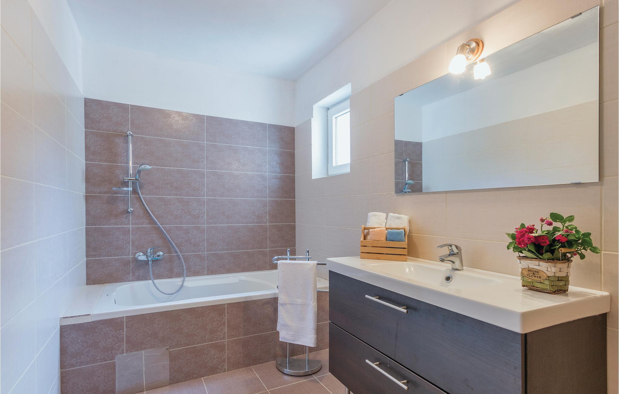 Diese geräumige und angenehm eingerichtete Ferienwohnung erstreckt sich über das Erdgeschoss eines privaten Hauses im Ort Betiga, nahe der Touristendestination Barbariga. Im Inneren sind zwei Schlafzimmer und zwei Badezimmer, die genügend Komfort während des Urlaubs garantieren. Auf dem Gemeinschaftsgrundstück steht ein Grill zur Verfügung, an dem Sie leckere Mahlzeiten zubereiten und gesellige Stunden mit Ihren Liebsten verbringen können. Barbariga ist bekannt für gute Badestrände und jede Menge Restaurants mit traditionellen Spezialitäten. Die letzten ca. 80 m der Zufahrtsstraße sind nicht asphaltiert.