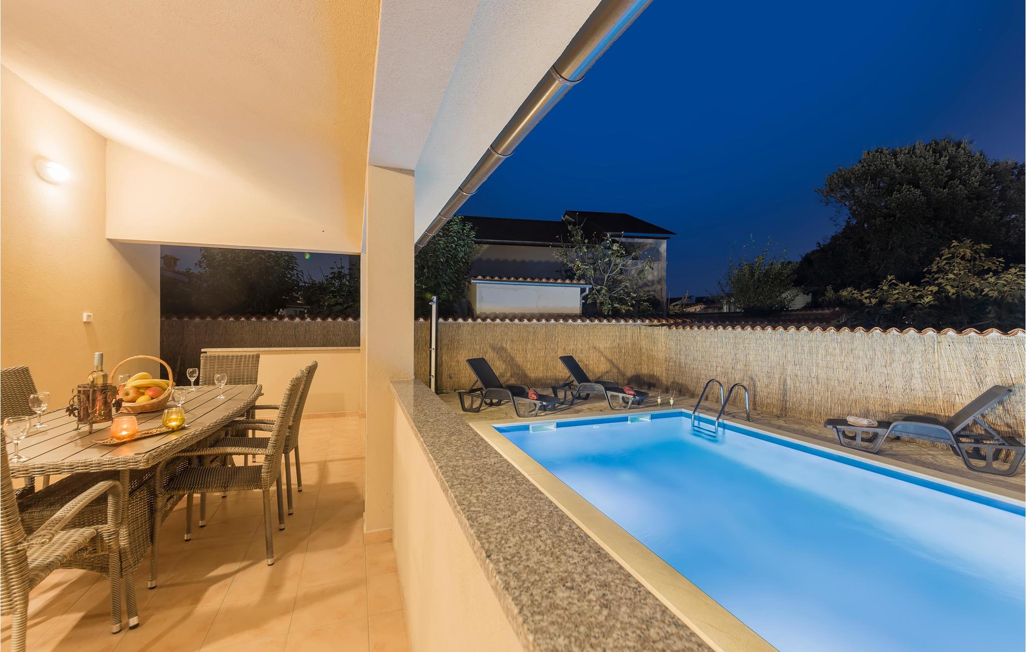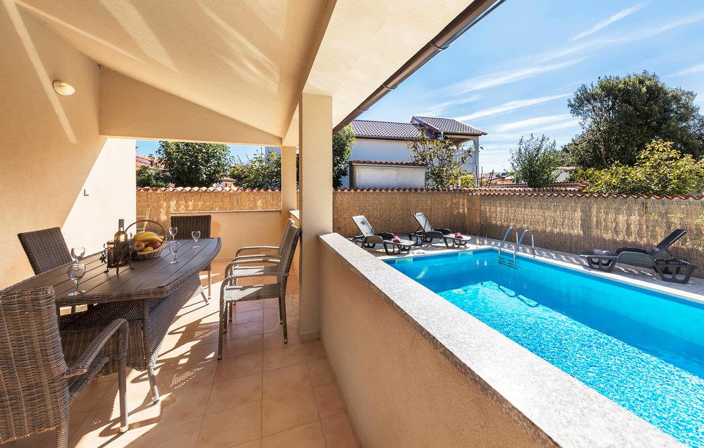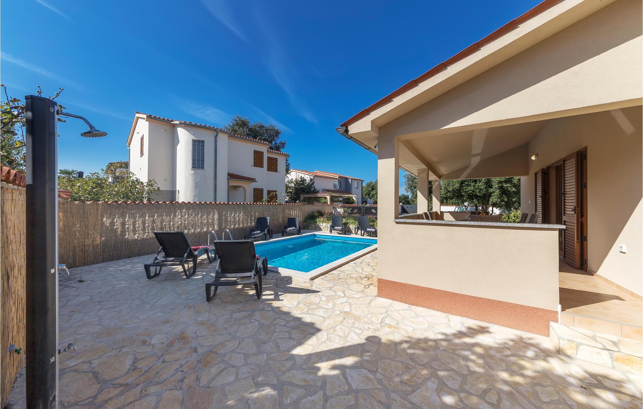 Verbringen Sie einen erholsamen Urlaub fern ab vom hektischen Alltag in diesen fantastischen Ferienhaus mit Pool. Es liegt in der schönen Wohnsiedlung Betiga, bei Barbariga wo Sie gemütlich beim Lauschen vom Vogelgezwitscher Ihren Morgenkaffee auf der Terrasse trinken können. Die Innenräume sind stilvoll eingerichtet, jedes Schlafzimmer hat ein eigenes Badezimmer. Im zur Verfügung stehenden Aktivitätsraum können Sie Spaß und sportliche Unterhaltung finden. Auf dem eingezäunten Grundstück erwartet Sie ein erfrischender Swimmingpool und es sind einige Spielgeräte für das unbeschwerte Spielen Ihrer Kinder vorhanden. Lokale Spezialitäten werden in den nahe gelegenen Restaurants serviert und empfehlenswert sind auch Besuche der Kleinstadt Fažana sowie der Altstadt von Pula.