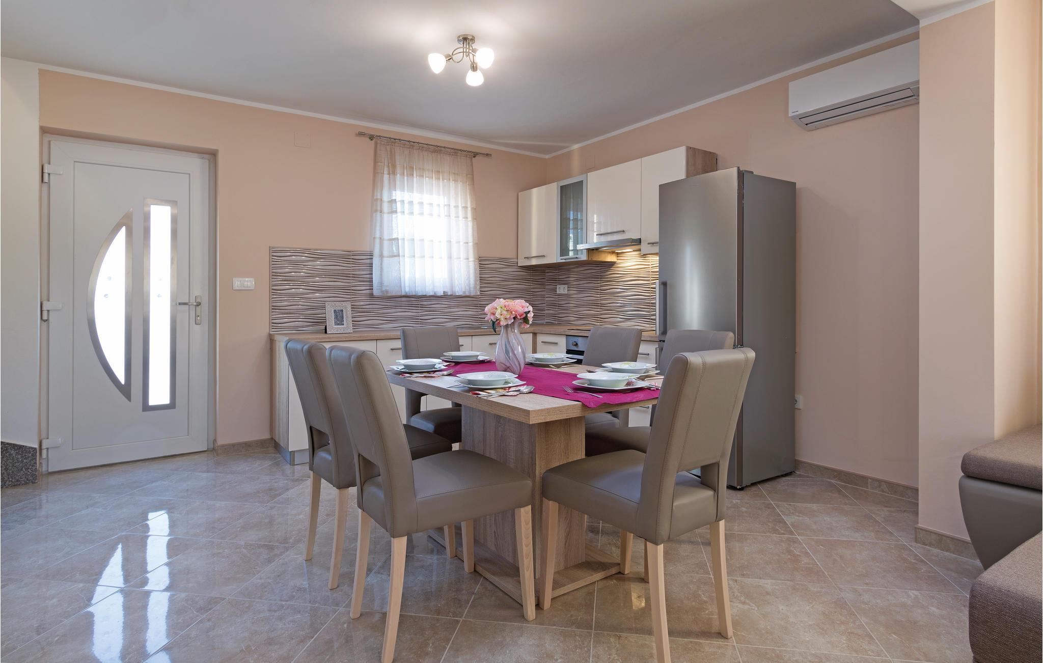 Das stilvolle Ferienhaus liegt in der Siedlung Betiga. Der Wohnraum besteht aus zwei separaten Wohnungen, von denen jede ein Wohnzimmer mit Küche und Essbereich sowie eine zusätzliche Toilette im Erdgeschoss hat, während im Obergeschoss zwei Schlafzimmer, zwei Badezimmer sowie Balkone mit teilweisem Meerblick sind. Genießen Sie das Sonnen und Baden im Garten am Poolbereich oder fahren Sie zu den Stränden und baden im herrlichen Meer. Das Doppelhaus bietet genügend Platz für mehrere Familien oder eine Gruppe von Freunden. In den nahe gelegenen Restaurants werden istrische Spezialitäten und hausgemachte Weine angeboten. Das Feriendomizil ist ein guter Ausgangspunkt um Ausflüge den zu den umliegenden Touristenzentren wie Rovinj, Fažana, Vodnjan, Pula und den Brijuni Insel zu unternehmen.