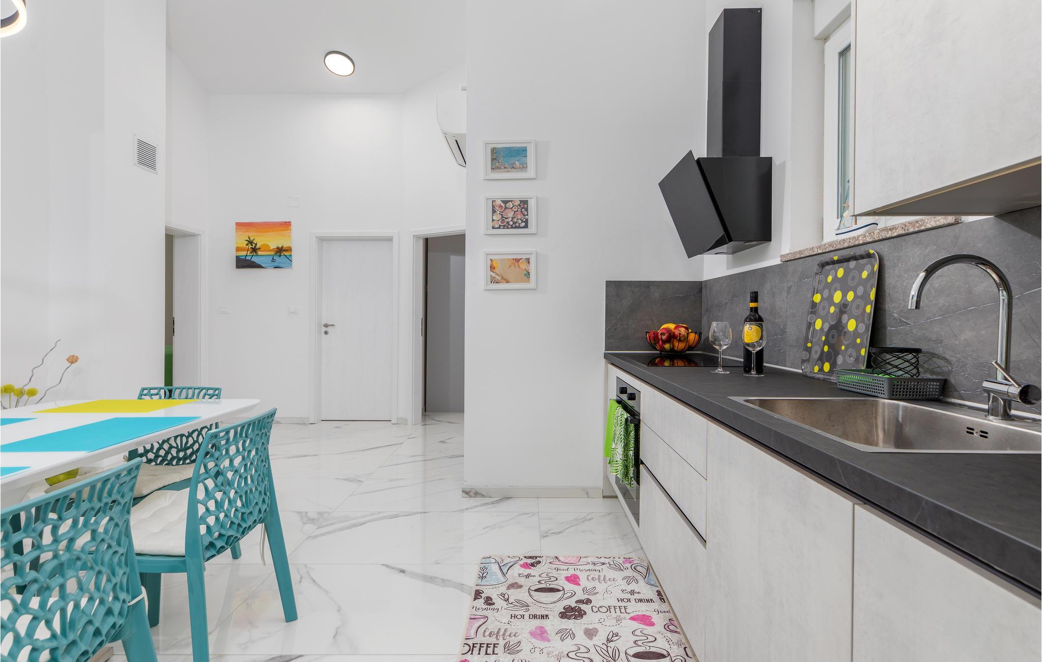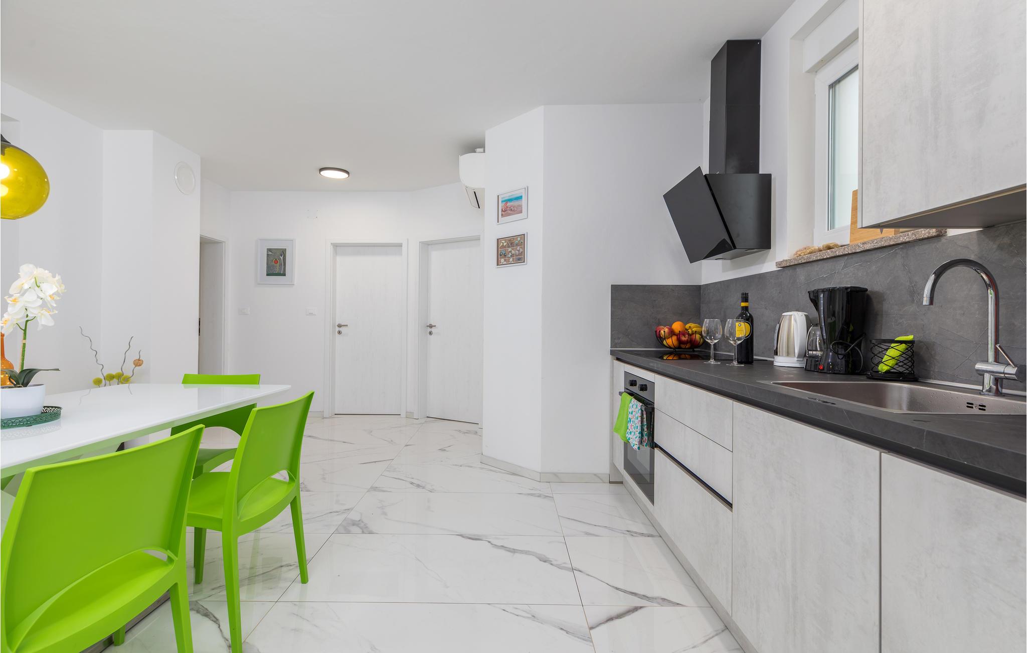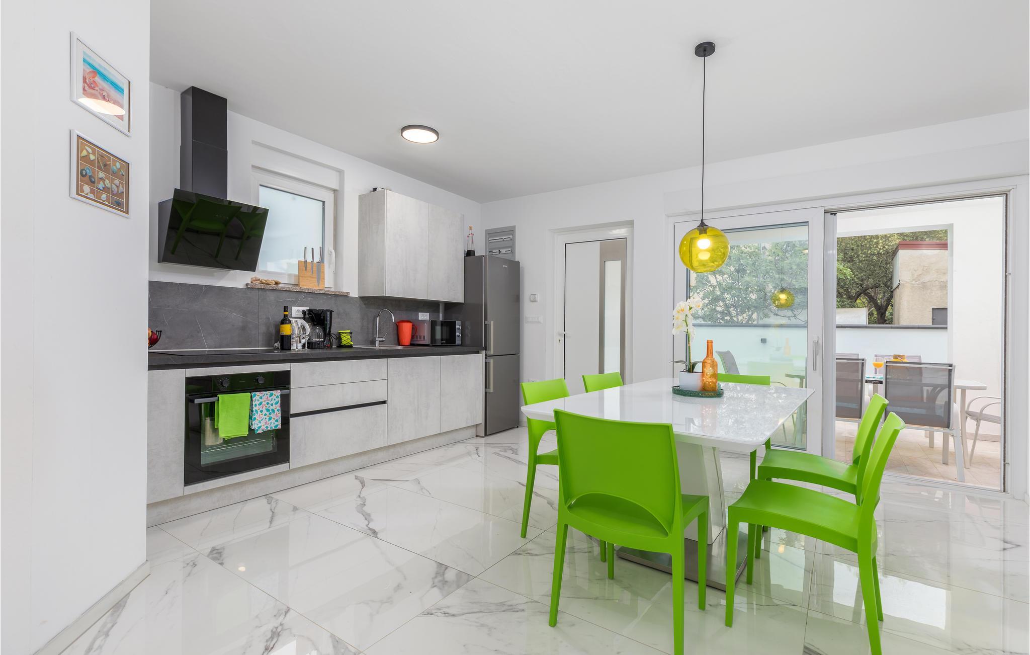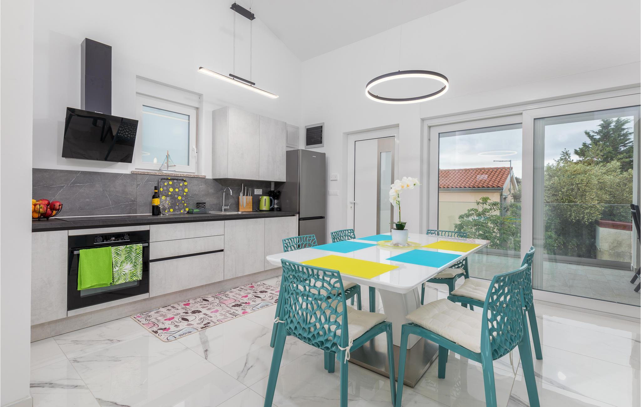 Hier ist die Rede von einem besonders hellen und geräumigen Ferienhaus mit farbenfrohen Möbeln und gemütlicher Atmosphäre. Machen Sie es sich hier mit Ihrer Begleitung bequem, lesen Ihren Lieblingsroman, nutzen die moderne Küchenzeile oder genießen gemeinsame Mahlzeiten, die von unterhaltsamen Unterhaltungen begleitet werden. Vom Erdgeschoss erreichen Sie auch die überdachte Terrasse mit Grill und Gartenmöbeln, somit der ideale Ort, um die Morgensonne zu begrüßen oder Sommerabende entspannt ausklingen zu lassen. Zudem haben Sie auch einen privaten Außenpool, der für die Erfrischung bei heißen Temperaturen sorgt.