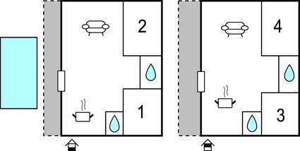 Badezimmer 6m2 (nr. 1) - WC. Warmes und kaltes Wasser. Dusche