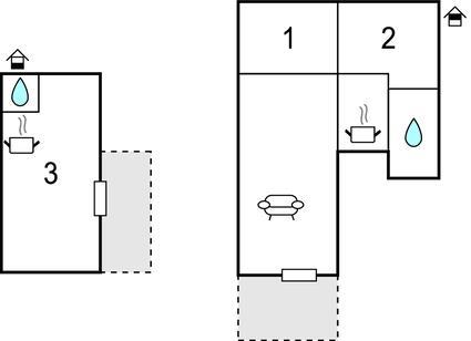 Badezimmer (nr. 1) - WC. Warmes und kaltes Wasser. Dusche