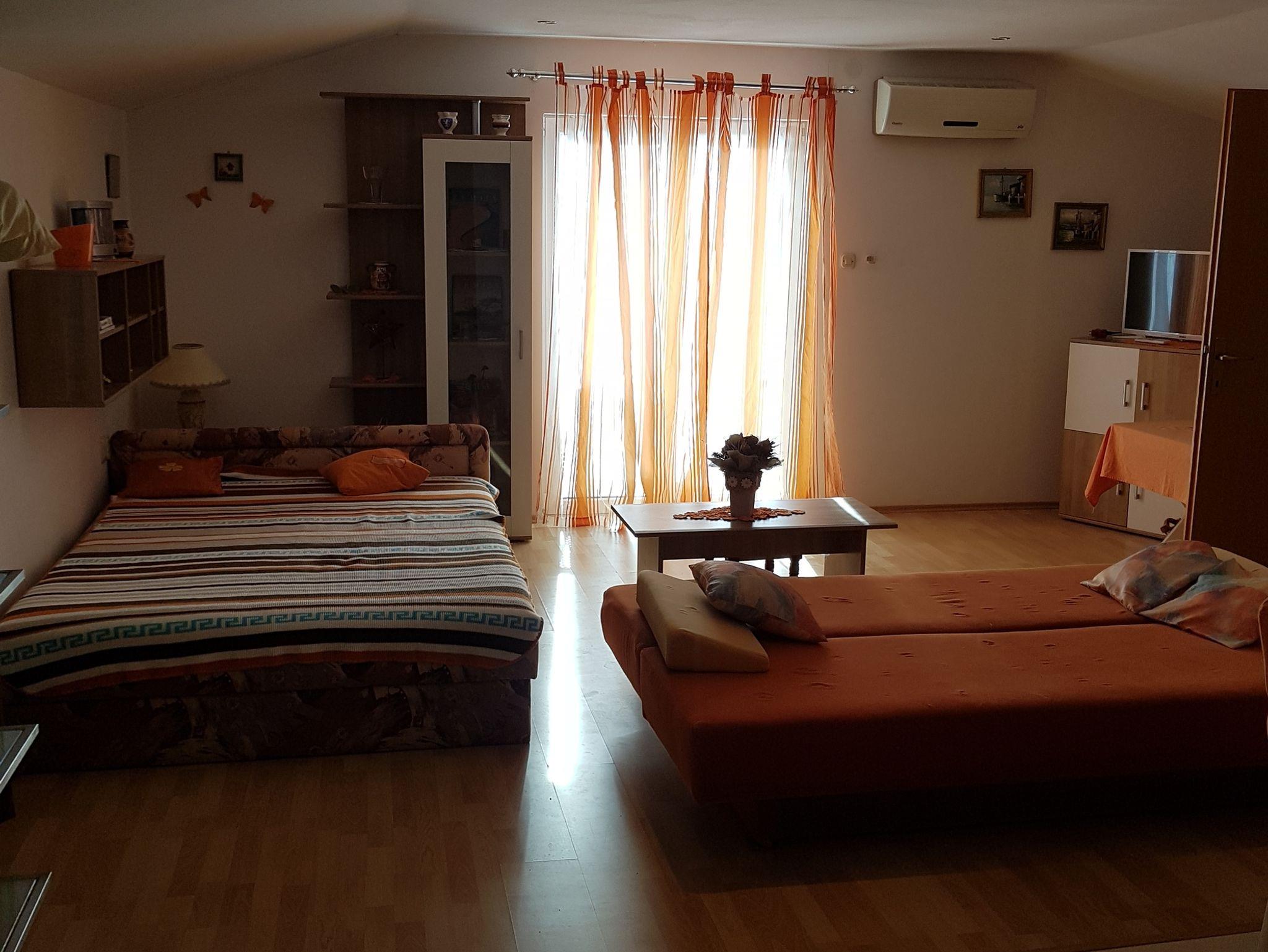 Studio bietet Platz für 4 Gäste. Die Betten sind in Schlafzimmern, die es 1 gibt, innerhalb einer Gesamtfläche von 27m2, angeordnet. Die Gäste haben eine eigene Terrasse zur Verfügung, auf der sie in warmen Sommernächten genießen können. Das Studio-Apartment bietet Meerblick. Es ist erlaubt, Speisen auf dem Gemeinschafts-Grill vorzubereiten. IM PREIS INBEGRIFFEN: Kurtaxe, Endreinigung, Klimatisierung, Parkplatz, Bügeleisen, Bügelbrett, Föhn. VERBINDLICHE ZUSÄTZLICHE KOSTEN: Aufzahlung für Kurzaufenthalte (prozentualer Zuschlag pro Nächtigungsanzahl: 30% - 1, 20% - 2, 10% - 3). UNVERBINDLICHE ZUSÄTZLICHE KOSTEN: Wäschewaschen (5,00 € Waschen), Bootsanlegeplatz (25,00 € pro Nacht). Die Verfügbarkeit zusätzlicher Dienstleistungen in Ihrem reservierten Termin und die Preise derselben (falls nicht aufgeführt) müssen im Voraus überprüft werden. Zusätzliche Dienstleistungen die in der Zahlungsaufforderung nicht aufgeführt sind werden direkt beim Vermieter bezahlt, angenommen der Gast nutzt auch diese. Ermäßigung auf den Grundpreis: Gratistag 14=13 (bei einem Aufenthalt von 14 Tagen oder mehr erhalten Sie einen Gratistag für den Aufenthalt bis 31.12.26).
