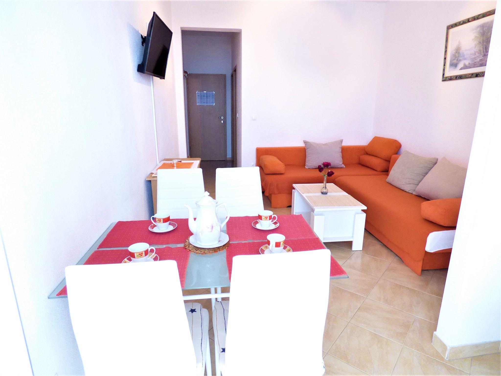 Ferienwohnung bietet Platz für 3 Gäste. Die Betten sind in Schlafzimmern, die es 1 gibt, und in Wohnzimmer, innerhalb einer Gesamtfläche von 35m2, angeordnet. Die Gäste haben einen eigenen Balkon zur Verfügung, auf der sie in warmen Sommernächten genießen können. Das Apartment bietet Meerblick. Es ist erlaubt, Speisen auf dem Gemeinschafts-Grill vorzubereiten. IM PREIS INBEGRIFFEN: Kurtaxe, Endreinigung, Klimatisierung, Parkplatz, Internet, Kinderbett, Bügeleisen, Bügelbrett, Föhn. VERBINDLICHE ZUSÄTZLICHE KOSTEN: Aufzahlung für Kurzaufenthalte (prozentualer Zuschlag pro Nächtigungsanzahl: 30% - 1, 20% - 2, 10% - 3). UNVERBINDLICHE ZUSÄTZLICHE KOSTEN: Wäschewaschen (10,00 € Waschen). Die Verfügbarkeit zusätzlicher Dienstleistungen in Ihrem reservierten Termin und die Preise derselben (falls nicht aufgeführt) müssen im Voraus überprüft werden. Zusätzliche Dienstleistungen die in der Zahlungsaufforderung nicht aufgeführt sind werden direkt beim Vermieter bezahlt, angenommen der Gast nutzt auch diese. Ermäßigung auf den Grundpreis: Gratistag 21=19 (bei einem Aufenthalt von 21 Tagen oder mehr erhalten Sie 2 Gratistage für den Aufenthalt bis 31.12.26).