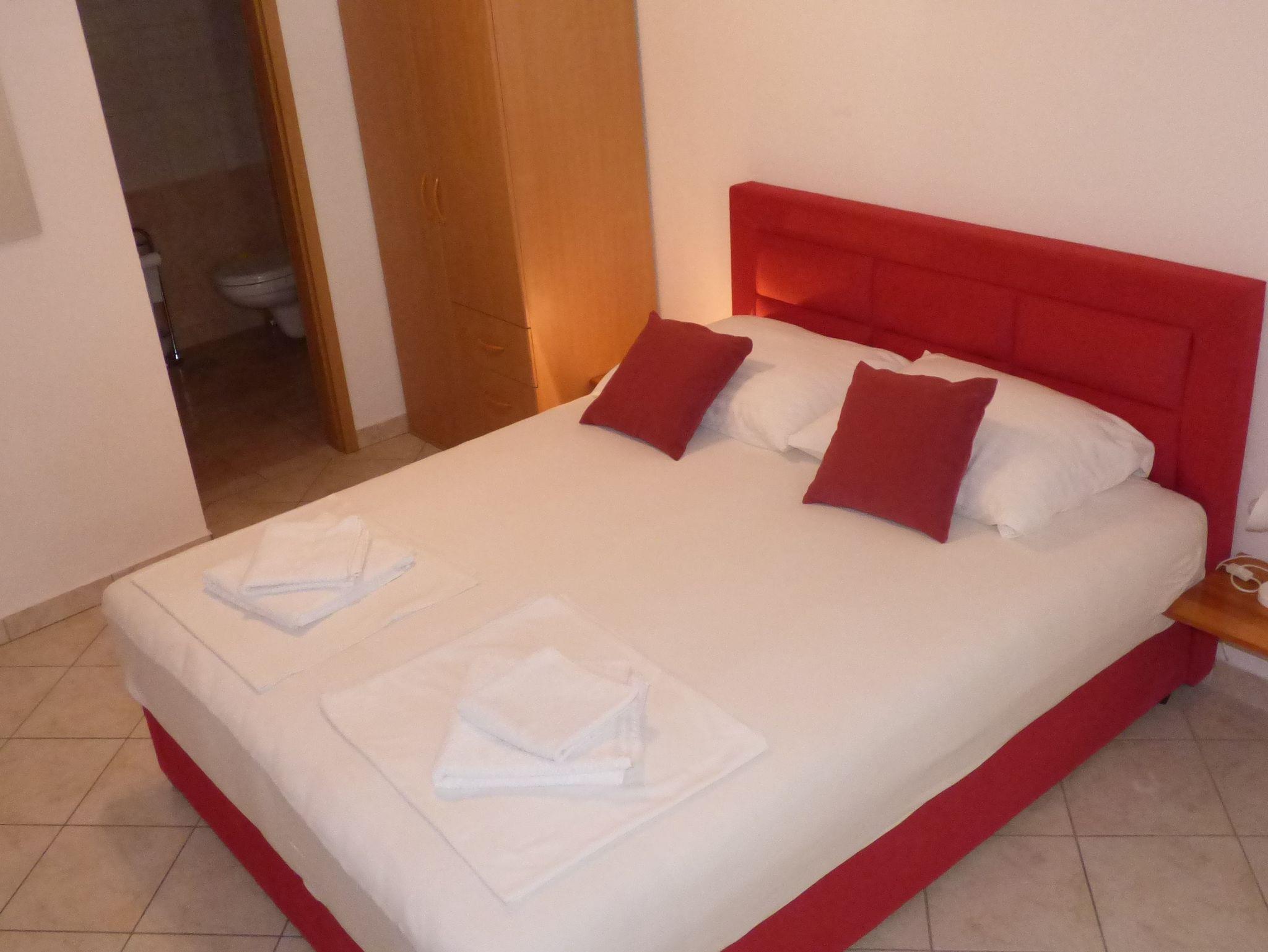 Studio bietet Platz für 2 Gäste. Die Betten sind in Schlafzimmern, die es 1 gibt, innerhalb einer Gesamtfläche von 22m2, angeordnet. Die Gäste haben einen eigenen Balkon zur Verfügung, auf der sie in warmen Sommernächten genießen können. Es ist erlaubt, Speisen auf dem Gemeinschafts-Grill vorzubereiten. IM PREIS INBEGRIFFEN: Kurtaxe, Endreinigung, Klimatisierung, Parkplatz, Internet, Kinderbett, Bügeleisen, Bügelbrett, Föhn. VERBINDLICHE ZUSÄTZLICHE KOSTEN: Aufzahlung für Kurzaufenthalte (prozentualer Zuschlag pro Nächtigungsanzahl: 30% - 1, 20% - 2, 10% - 3). UNVERBINDLICHE ZUSÄTZLICHE KOSTEN: Wäschewaschen (10,00 € Waschen). Die Verfügbarkeit zusätzlicher Dienstleistungen in Ihrem reservierten Termin und die Preise derselben (falls nicht aufgeführt) müssen im Voraus überprüft werden. Zusätzliche Dienstleistungen die in der Zahlungsaufforderung nicht aufgeführt sind werden direkt beim Vermieter bezahlt, angenommen der Gast nutzt auch diese. Ermäßigung auf den Grundpreis: Gratistag 21=19 (bei einem Aufenthalt von 21 Tagen oder mehr erhalten Sie 2 Gratistage für den Aufenthalt bis 31.12.26).