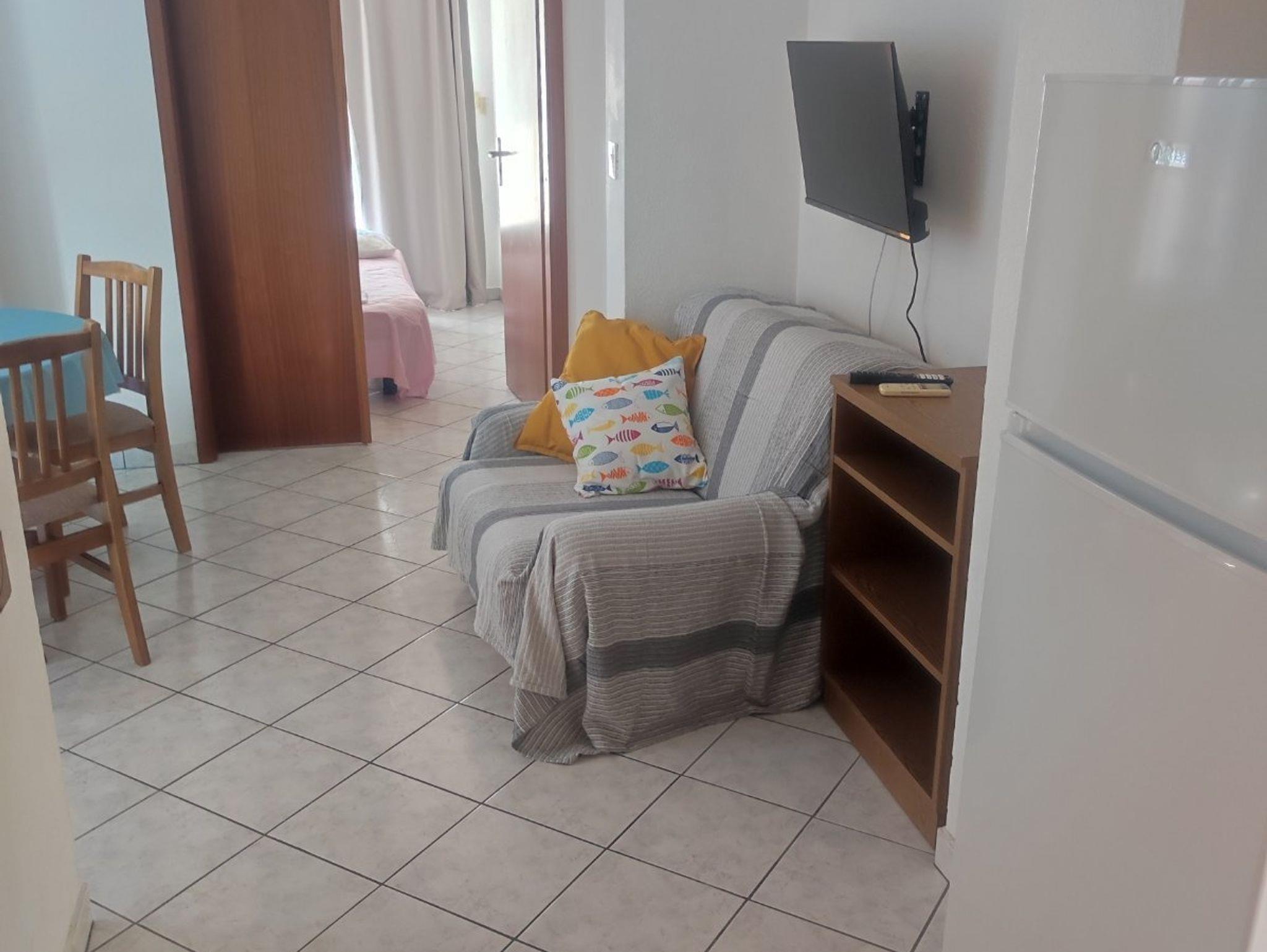 Ferienwohnung bietet Platz für 4 Gäste. Die Betten sind in Schlafzimmern, die es 1 gibt, und in Wohnzimmer, innerhalb einer Gesamtfläche von 37m2, angeordnet. Die Gäste haben eine eigene Terrasse zur Verfügung, auf der sie in warmen Sommernächten genießen können. IM PREIS INBEGRIFFEN: Kurtaxe, Endreinigung, Klimatisierung, Parkplatz, Internet, Kinderbett, Bügeleisen, Bügelbrett. VERBINDLICHE ZUSÄTZLICHE KOSTEN: Aufzahlung für Kurzaufenthalte (prozentualer Zuschlag pro Nächtigungsanzahl: 30% - 1, 20% - 2, 10% - 3). UNVERBINDLICHE ZUSÄTZLICHE KOSTEN: Wäschewaschen (5,00 € Waschen). Die Verfügbarkeit zusätzlicher Dienstleistungen in Ihrem reservierten Termin und die Preise derselben (falls nicht aufgeführt) müssen im Voraus überprüft werden. Zusätzliche Dienstleistungen die in der Zahlungsaufforderung nicht aufgeführt sind werden direkt beim Vermieter bezahlt, angenommen der Gast nutzt auch diese.
