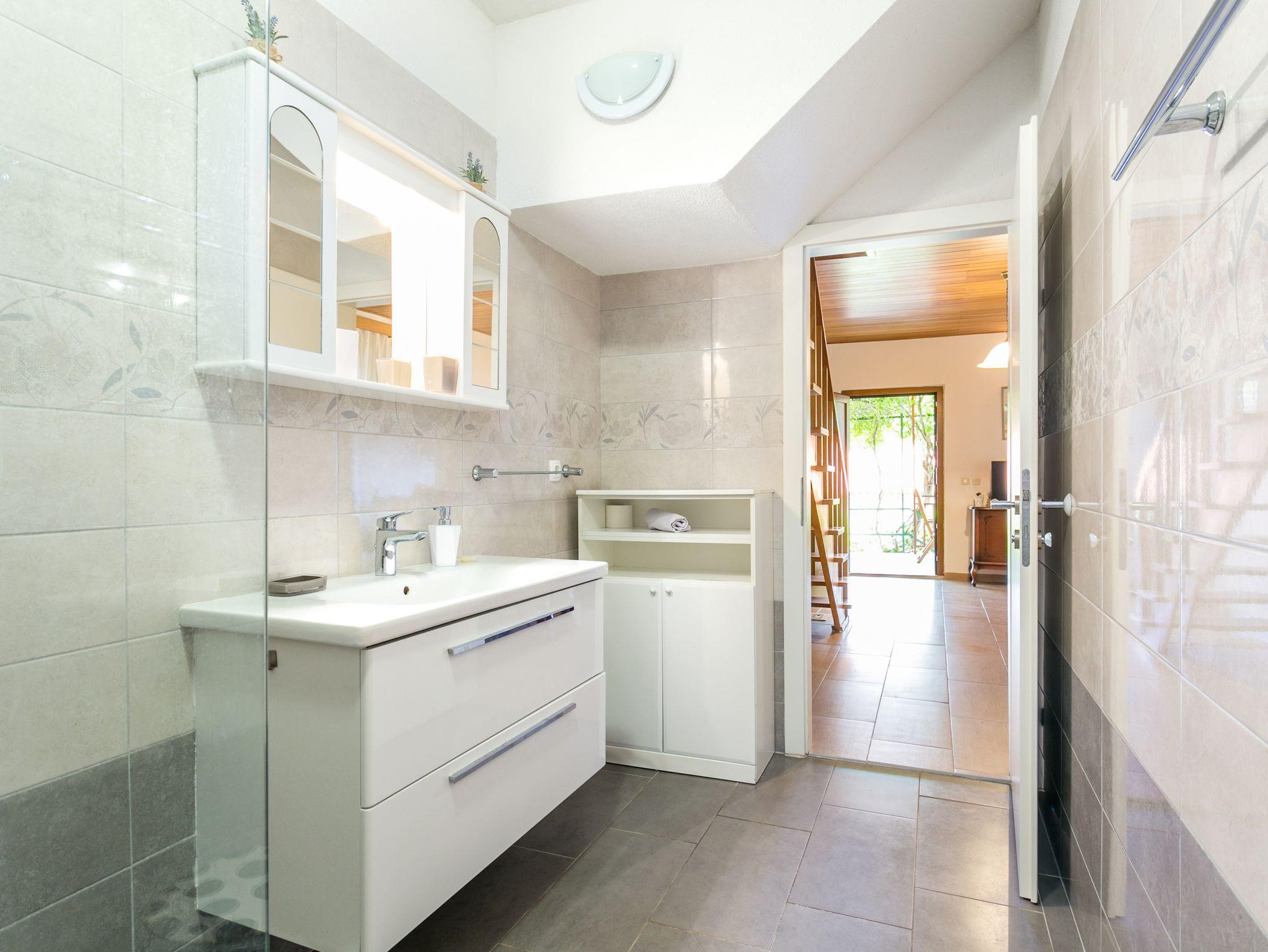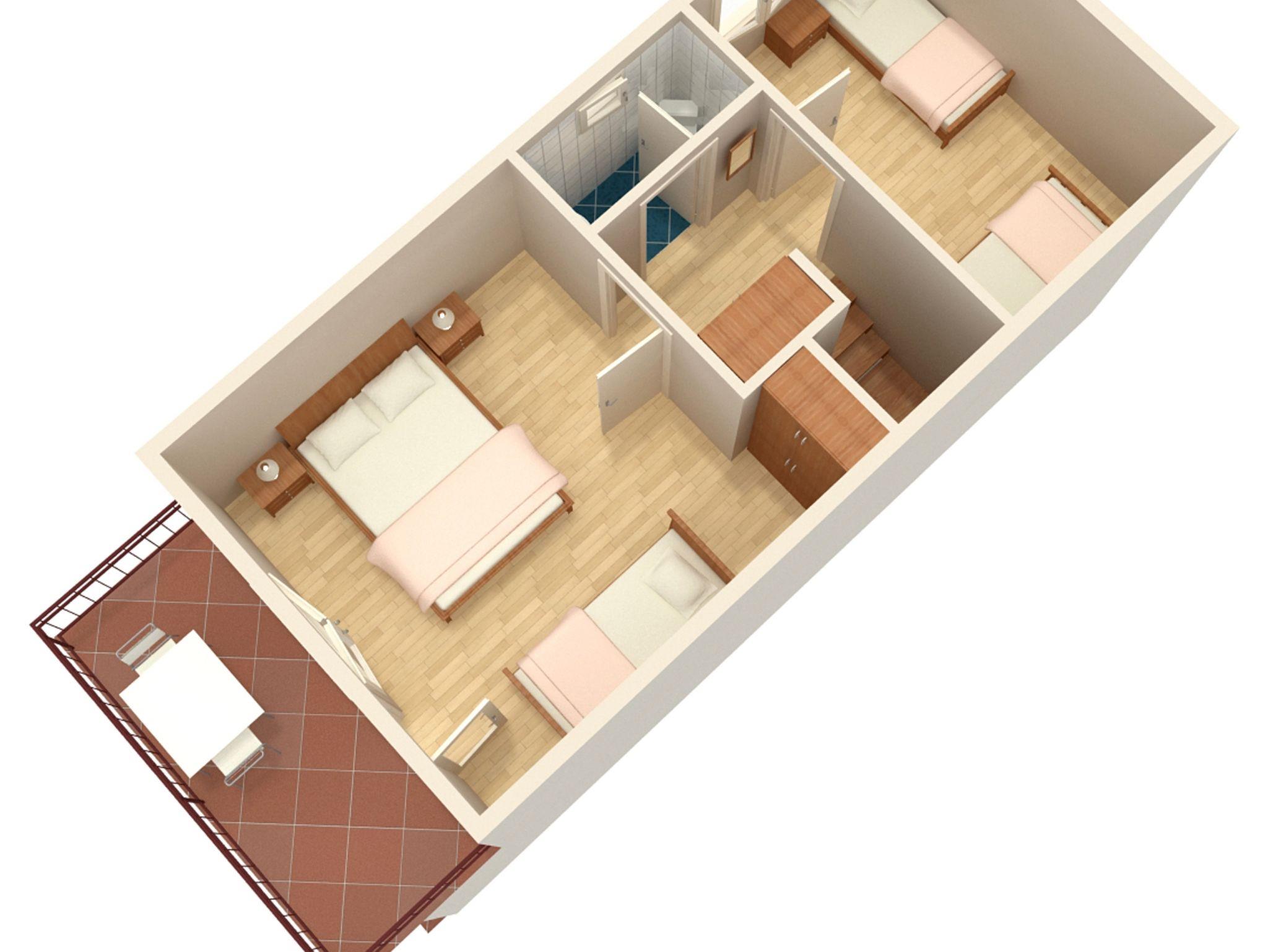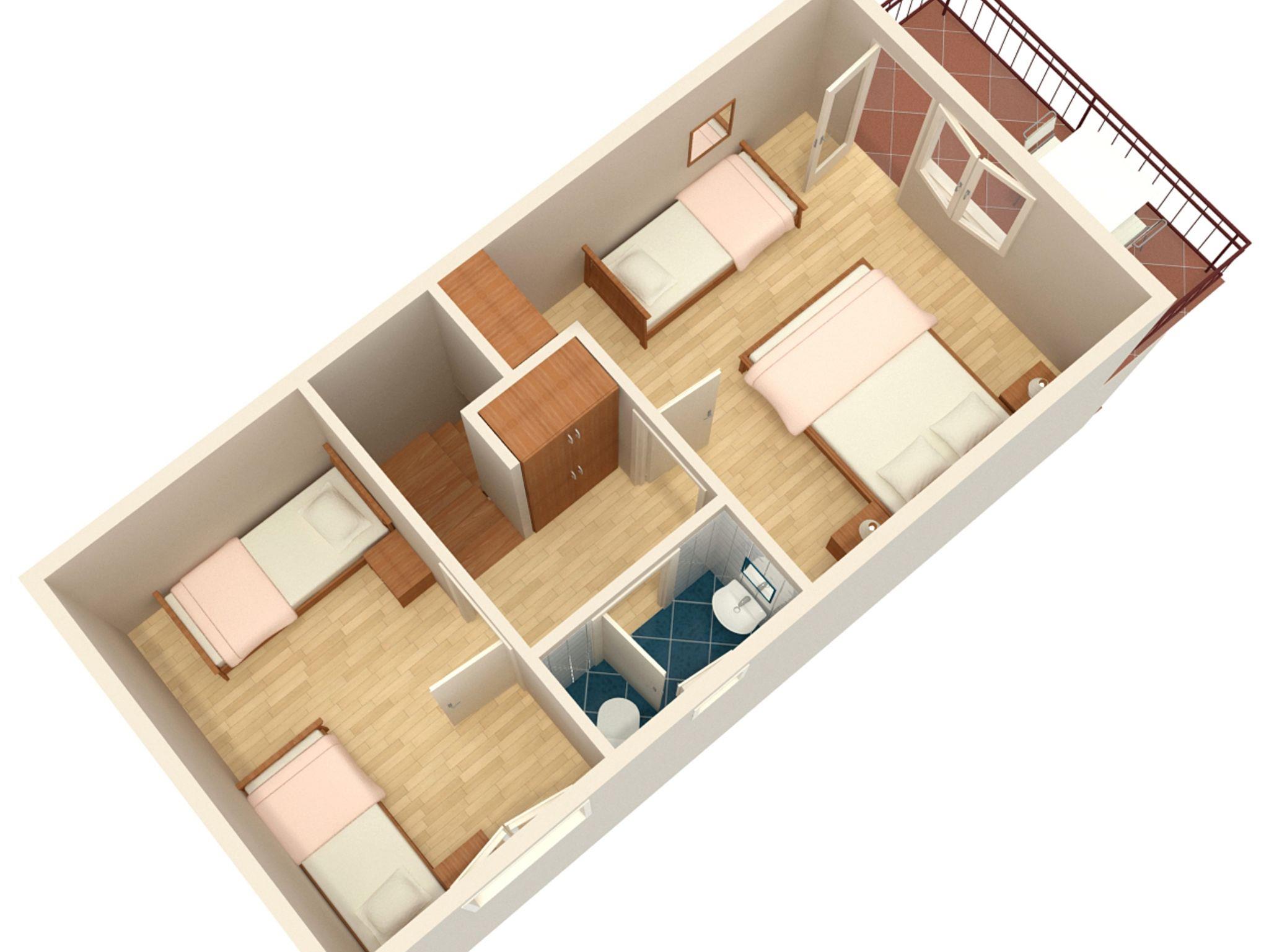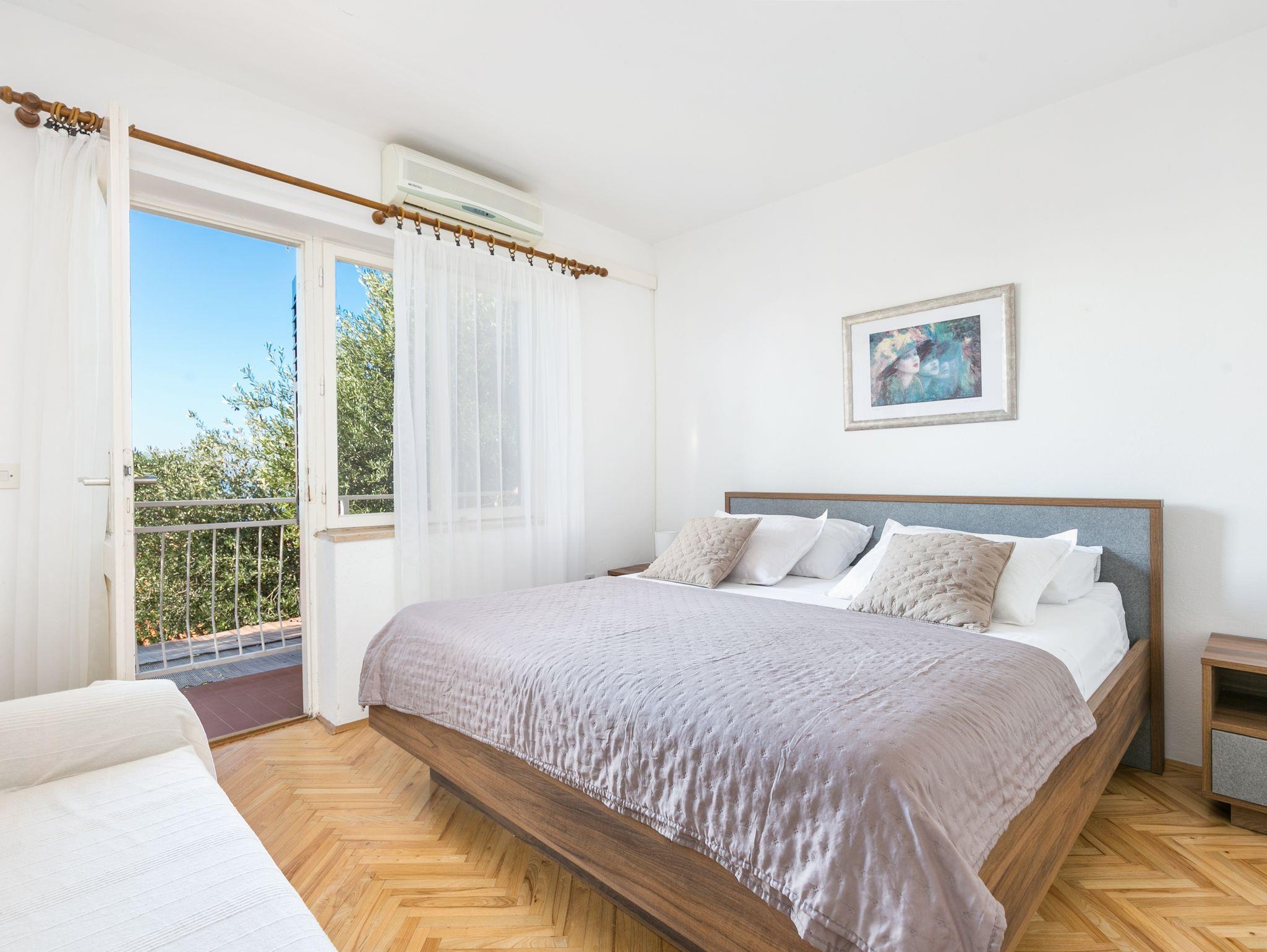 Ferienwohnung bietet Platz für 6 Gäste. Die Betten sind in Schlafzimmern, die es 2 gibt, innerhalb einer Gesamtfläche von 57m2, angeordnet. Die Gäste haben eine eigene Terrasse zur Verfügung, auf der sie in warmen Sommernächten genießen können. Das Apartment bietet Meerblick. Es ist erlaubt, Speisen auf dem Gemeinschafts-Grill vorzubereiten. IM PREIS INBEGRIFFEN: Kurtaxe, Endreinigung, Klimatisierung, Parkplatz, Internet, Wäschewaschen, Kinderbett, Bügeleisen, Bügelbrett, Föhn. VERBINDLICHE ZUSÄTZLICHE KOSTEN: Aufzahlung für Kurzaufenthalte (prozentualer Zuschlag pro Nächtigungsanzahl: 30% - 1, 20% - 2, 10% - 3). Die Verfügbarkeit zusätzlicher Dienstleistungen in Ihrem reservierten Termin und die Preise derselben (falls nicht aufgeführt) müssen im Voraus überprüft werden. Zusätzliche Dienstleistungen die in der Zahlungsaufforderung nicht aufgeführt sind werden direkt beim Vermieter bezahlt, angenommen der Gast nutzt auch diese.