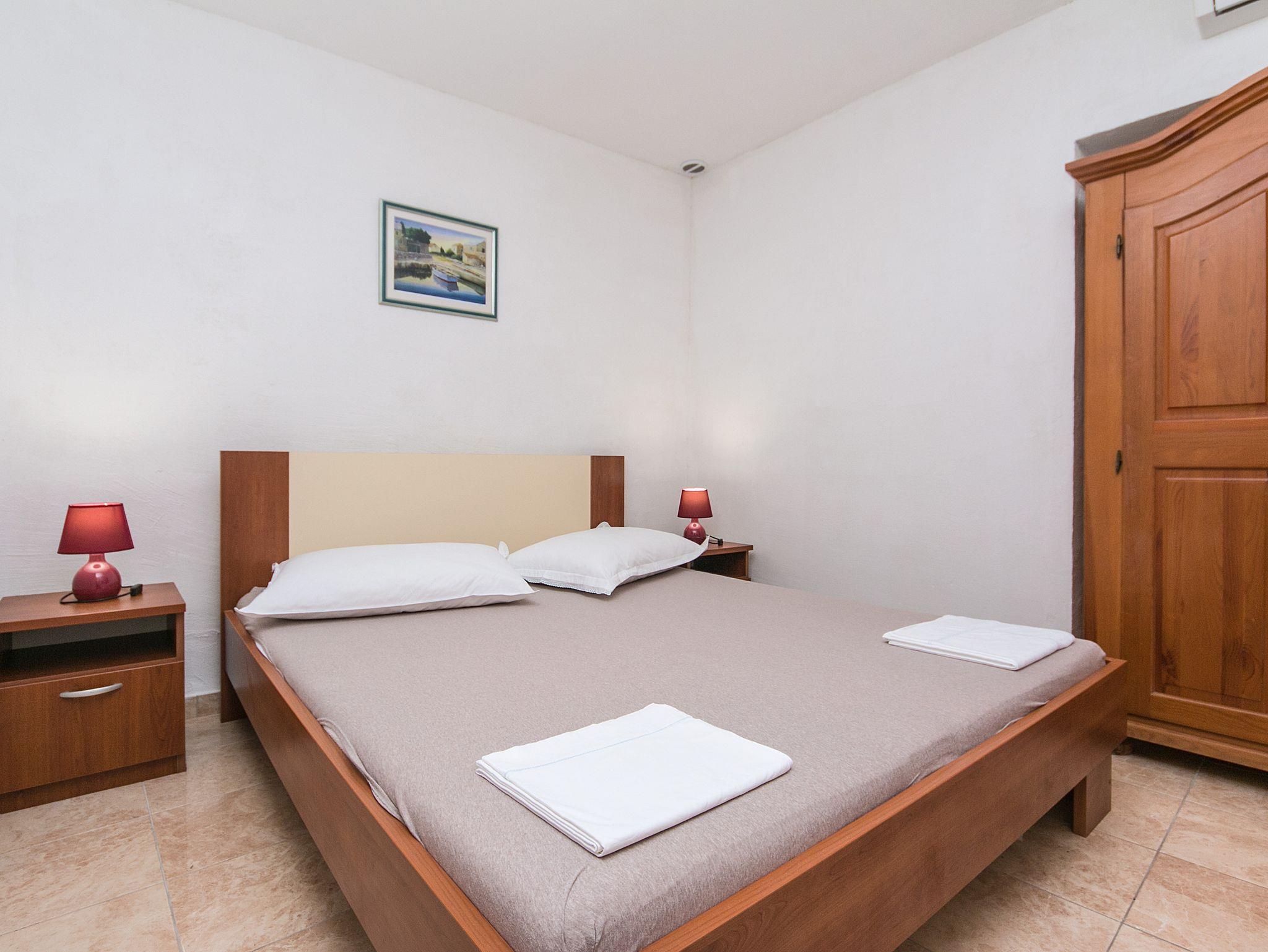 Ferienwohnung bietet Platz für 4 Gäste. Die Betten sind in Schlafzimmern, die es 2 gibt, innerhalb einer Gesamtfläche von 40m2, angeordnet. Die Gäste haben eine eigene Terrasse zur Verfügung, auf der sie in warmen Sommernächten genießen können. Es ist erlaubt, Speisen auf dem Gemeinschafts-Grill vorzubereiten. IM PREIS INBEGRIFFEN: Kurtaxe, Endreinigung, Klimatisierung, Parkplatz, Internet, Bügeleisen, Bügelbrett, Föhn. VERBINDLICHE ZUSÄTZLICHE KOSTEN: Aufzahlung für Kurzaufenthalte (prozentualer Zuschlag pro Nächtigungsanzahl: 30% - 1, 20% - 2, 10% - 3). Die Verfügbarkeit zusätzlicher Dienstleistungen in Ihrem reservierten Termin und die Preise derselben (falls nicht aufgeführt) müssen im Voraus überprüft werden. Zusätzliche Dienstleistungen die in der Zahlungsaufforderung nicht aufgeführt sind werden direkt beim Vermieter bezahlt, angenommen der Gast nutzt auch diese. Ermäßigung auf den Grundpreis: Gratistag 28=25 (bei einem Aufenthalt von 28 oder mehr Tagen erhalten Sie 3 kostenlose Tage für den Aufenthalt bis 31.12.26).