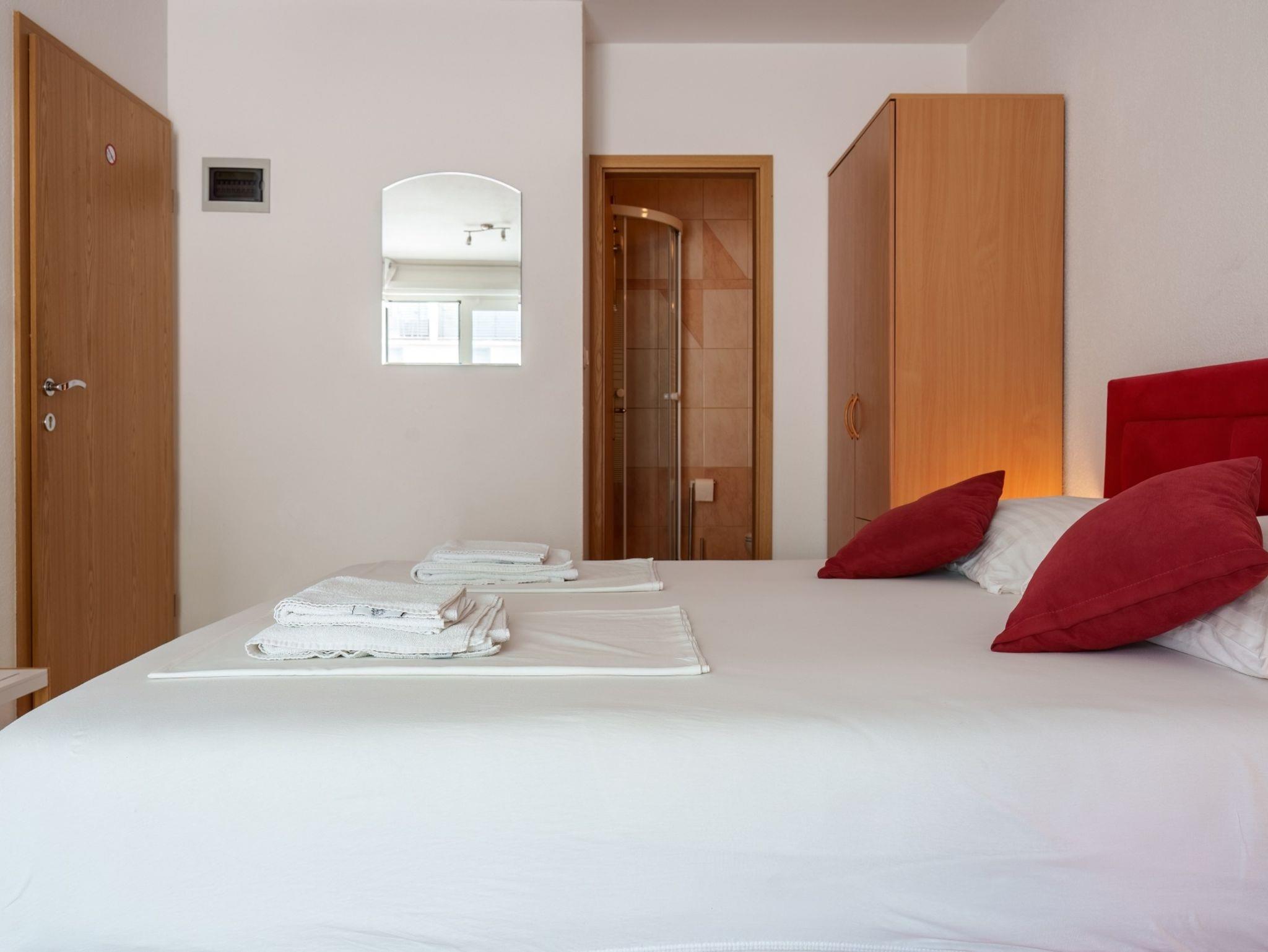 Studio bietet Platz für 2 Gäste. Die Betten sind in Schlafzimmern, die es 1 gibt, innerhalb einer Gesamtfläche von 26m2, angeordnet. Die Gäste haben einen eigenen Balkon zur Verfügung, auf der sie in warmen Sommernächten genießen können. Es ist erlaubt, Speisen auf dem Gemeinschafts-Grill vorzubereiten. IM PREIS INBEGRIFFEN: Kurtaxe, Endreinigung, Klimatisierung, Parkplatz, Internet, Kinderbett, Bügeleisen, Bügelbrett, Föhn. VERBINDLICHE ZUSÄTZLICHE KOSTEN: Aufzahlung für Kurzaufenthalte (prozentualer Zuschlag pro Nächtigungsanzahl: 30% - 1, 20% - 2, 10% - 3). UNVERBINDLICHE ZUSÄTZLICHE KOSTEN: Wäschewaschen (10,00 € Waschen). Die Verfügbarkeit zusätzlicher Dienstleistungen in Ihrem reservierten Termin und die Preise derselben (falls nicht aufgeführt) müssen im Voraus überprüft werden. Zusätzliche Dienstleistungen die in der Zahlungsaufforderung nicht aufgeführt sind werden direkt beim Vermieter bezahlt, angenommen der Gast nutzt auch diese. Ermäßigung auf den Grundpreis: Gratistag 21=19 (bei einem Aufenthalt von 21 Tagen oder mehr erhalten Sie 2 Gratistage für den Aufenthalt bis 31.12.26).
