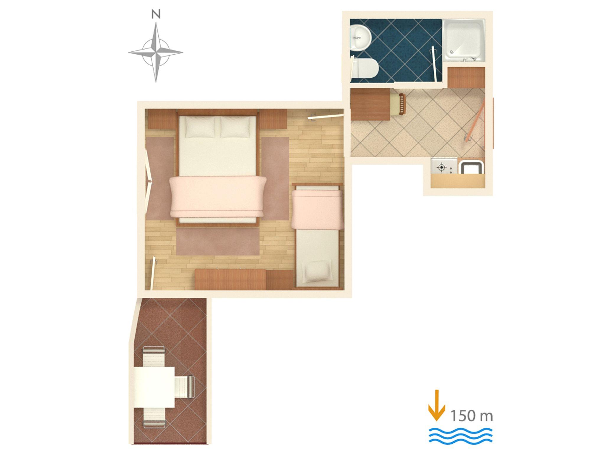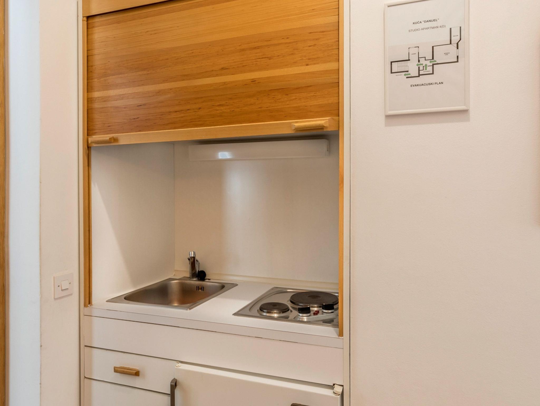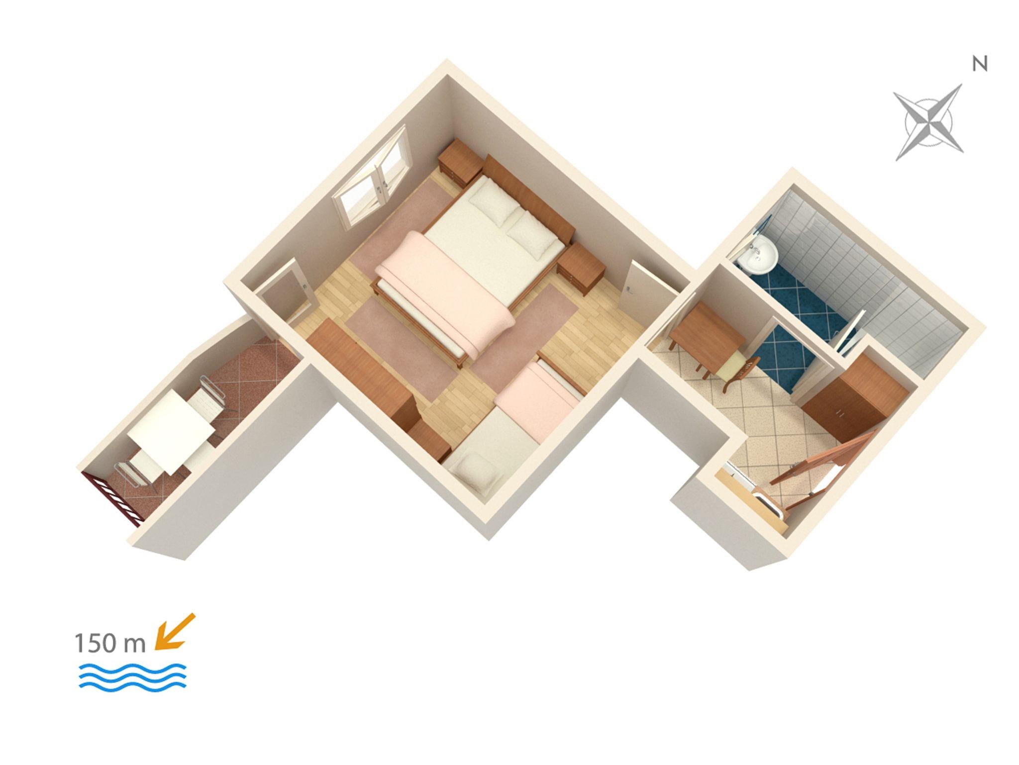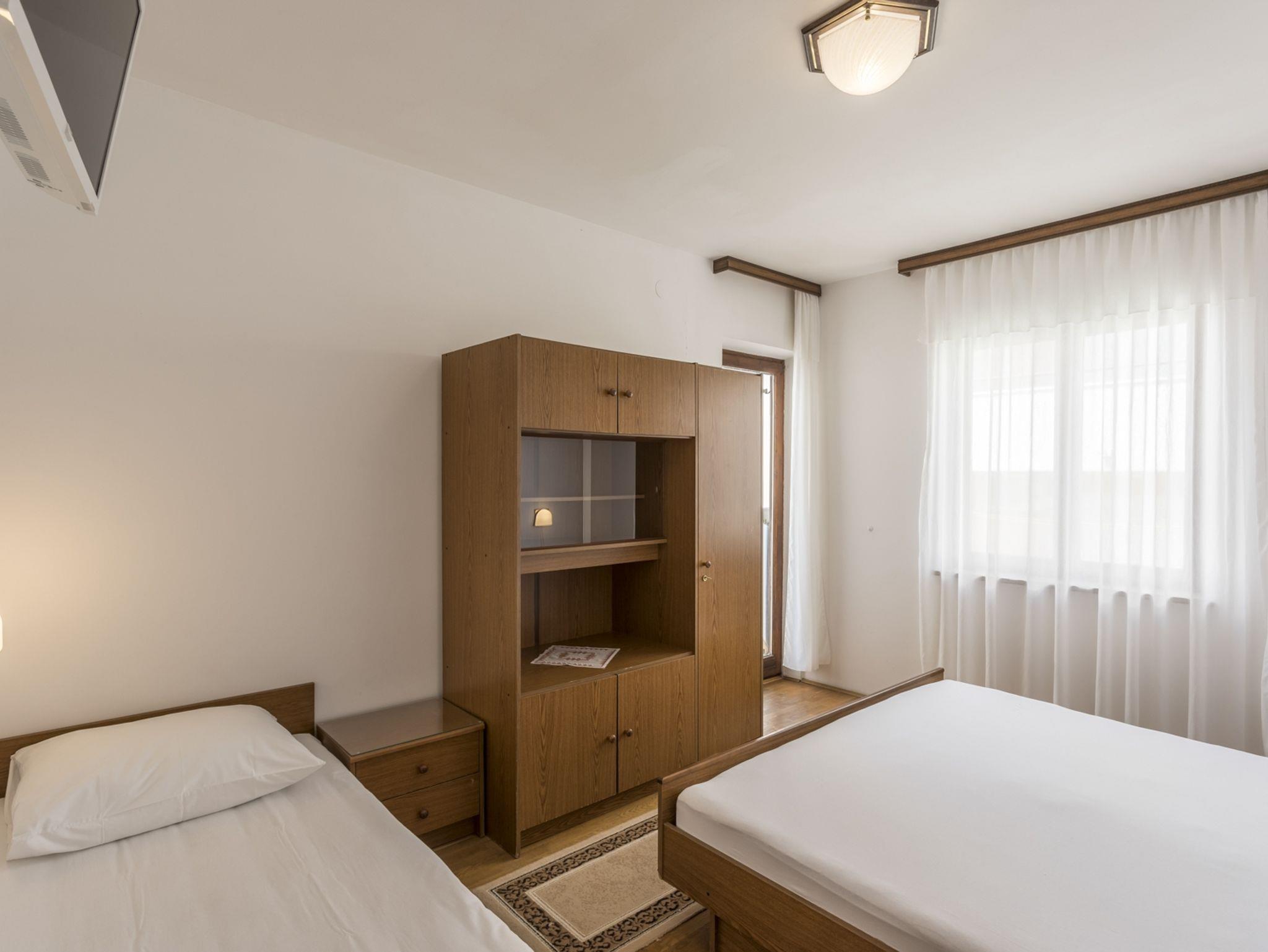 Studio bietet Platz für 2 Gäste. Die Betten sind in Schlafzimmern, die es 1 gibt, innerhalb einer Gesamtfläche von 19m2, angeordnet. Die Gäste haben einen eigenen Balkon zur Verfügung, auf der sie in warmen Sommernächten genießen können. Das Studio-Apartment bietet Meerblick. Es ist erlaubt, Speisen auf dem Gemeinschafts-Grill vorzubereiten. In der Unterkunftseinheit besteht die Möglichkeit des Mitbringens von Haustieren gegen Aufpreis. IM PREIS INBEGRIFFEN: Kurtaxe, Endreinigung, Klimatisierung, Parkplatz, Internet, Kinderbett, Bügeleisen, Sonnenschirm. VERBINDLICHE ZUSÄTZLICHE KOSTEN: Aufzahlung für Kurzaufenthalte (prozentualer Zuschlag pro Nächtigungsanzahl: 30% - 1, 20% - 2, 10% - 3). UNVERBINDLICHE ZUSÄTZLICHE KOSTEN: Wäschewaschen (5,00 € Waschen), Haustiere (5,00 € pro Nacht). Die Verfügbarkeit zusätzlicher Dienstleistungen in Ihrem reservierten Termin und die Preise derselben (falls nicht aufgeführt) müssen im Voraus überprüft werden. Zusätzliche Dienstleistungen die in der Zahlungsaufforderung nicht aufgeführt sind werden direkt beim Vermieter bezahlt, angenommen der Gast nutzt auch diese.