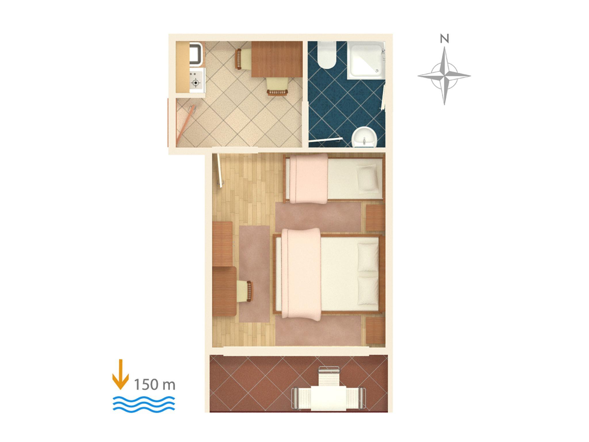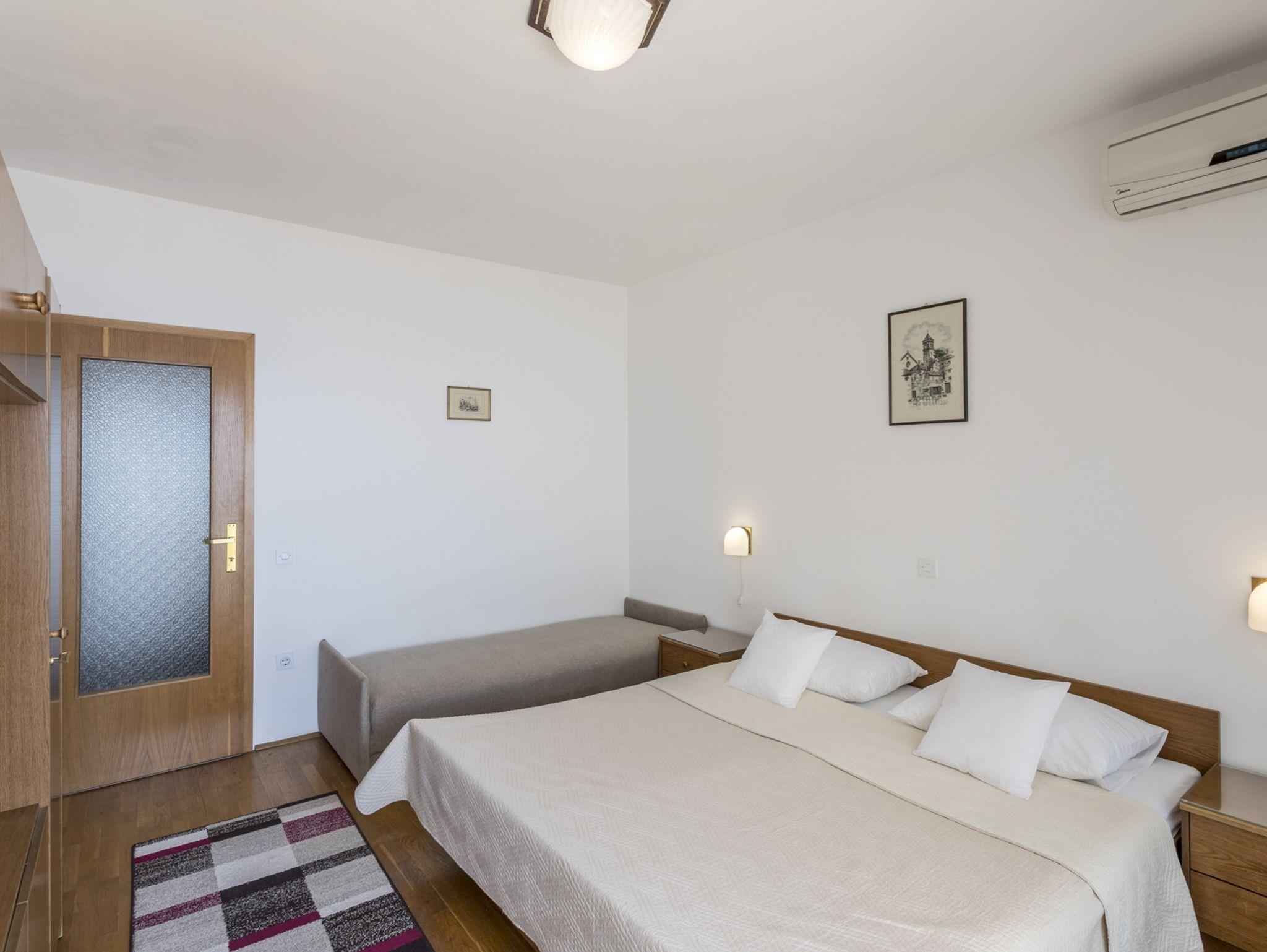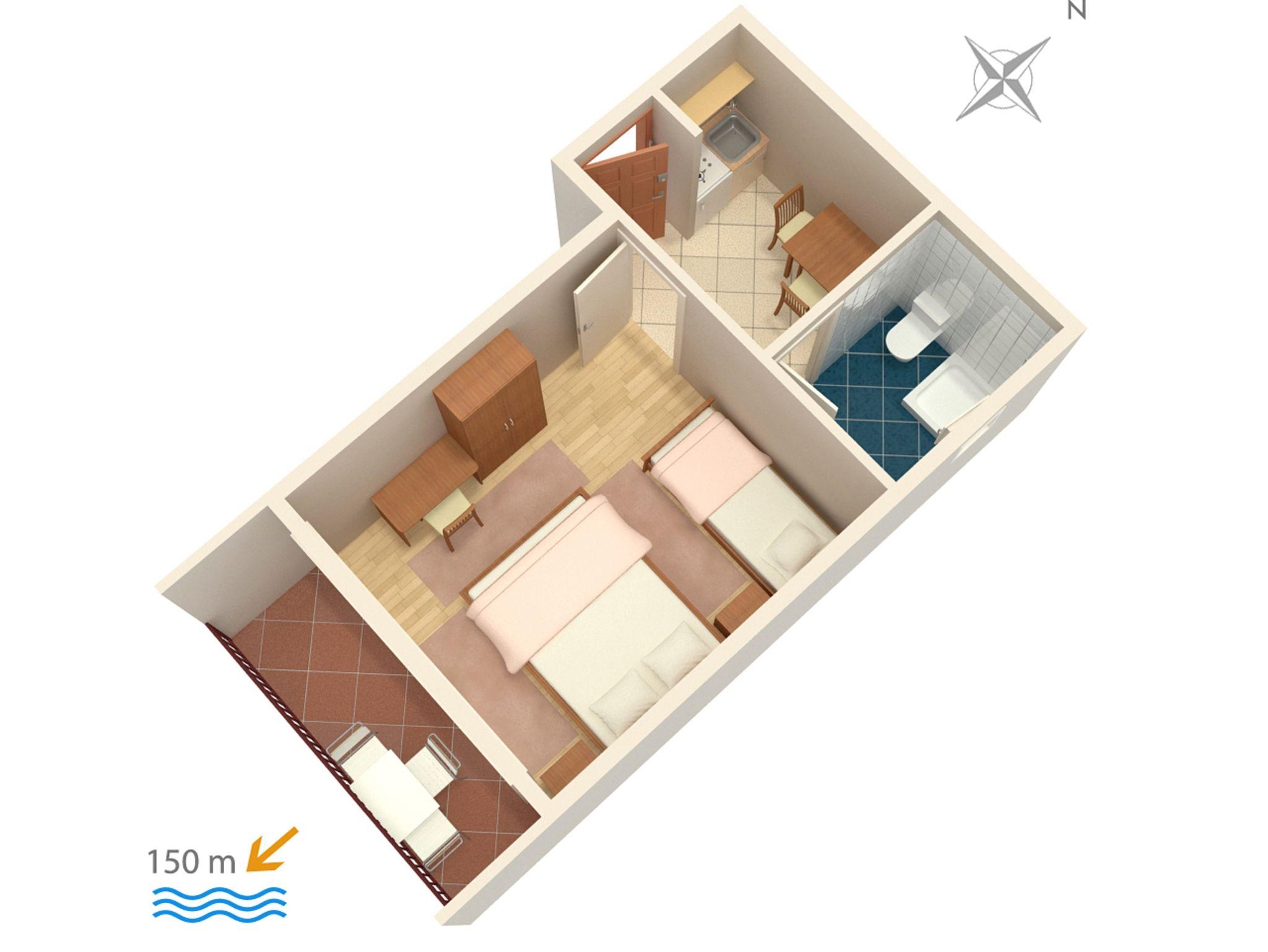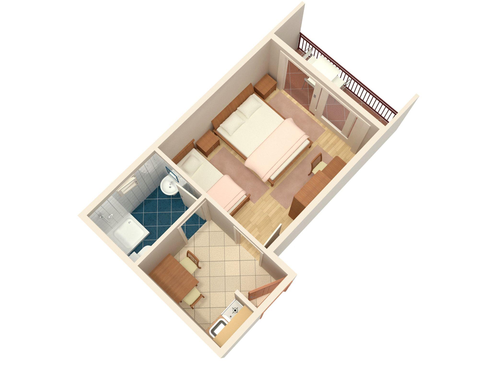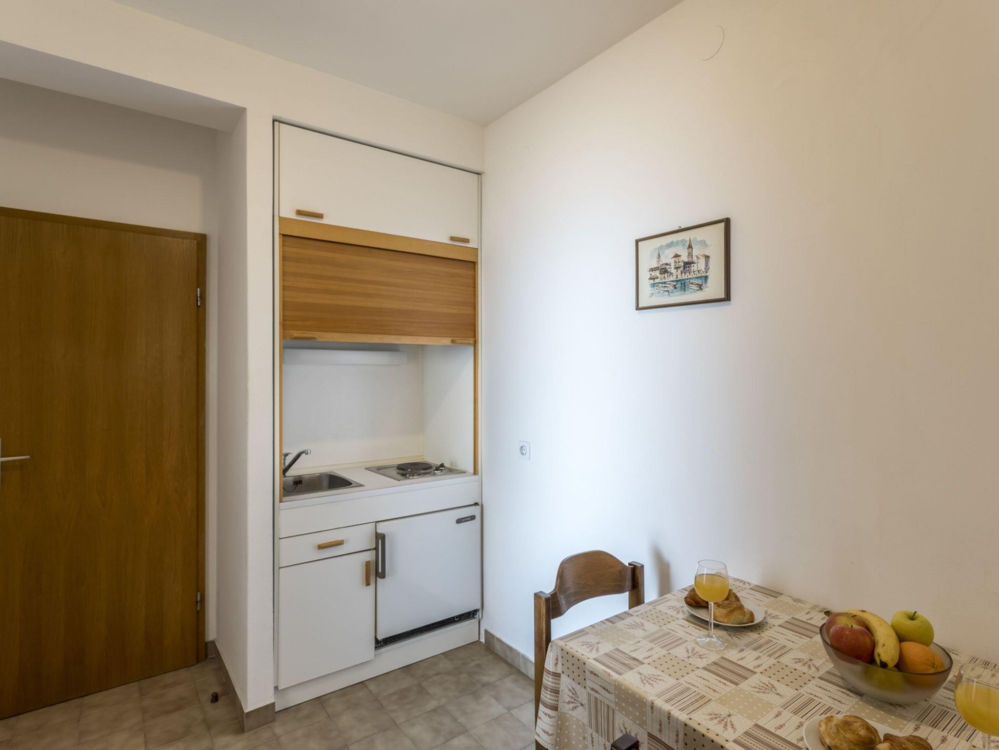 Studio bietet Platz für 3 Gäste. Die Betten sind in Schlafzimmern, die es 1 gibt, innerhalb einer Gesamtfläche von 23m2, angeordnet. Die Gäste haben einen eigenen Balkon zur Verfügung, auf der sie in warmen Sommernächten genießen können. Das Studio-Apartment bietet Meerblick. Es ist erlaubt, Speisen auf dem Gemeinschafts-Grill vorzubereiten. In der Unterkunftseinheit besteht die Möglichkeit des Mitbringens von Haustieren gegen Aufpreis. IM PREIS INBEGRIFFEN: Kurtaxe, Endreinigung, Klimatisierung, Parkplatz, Internet, Kinderbett, Bügeleisen, Sonnenschirm. VERBINDLICHE ZUSÄTZLICHE KOSTEN: Aufzahlung für Kurzaufenthalte (prozentualer Zuschlag pro Nächtigungsanzahl: 30% - 1, 20% - 2, 10% - 3). UNVERBINDLICHE ZUSÄTZLICHE KOSTEN: Wäschewaschen (5,00 € Waschen), Haustiere (5,00 € pro Nacht). Die Verfügbarkeit zusätzlicher Dienstleistungen in Ihrem reservierten Termin und die Preise derselben (falls nicht aufgeführt) müssen im Voraus überprüft werden. Zusätzliche Dienstleistungen die in der Zahlungsaufforderung nicht aufgeführt sind werden direkt beim Vermieter bezahlt, angenommen der Gast nutzt auch diese.