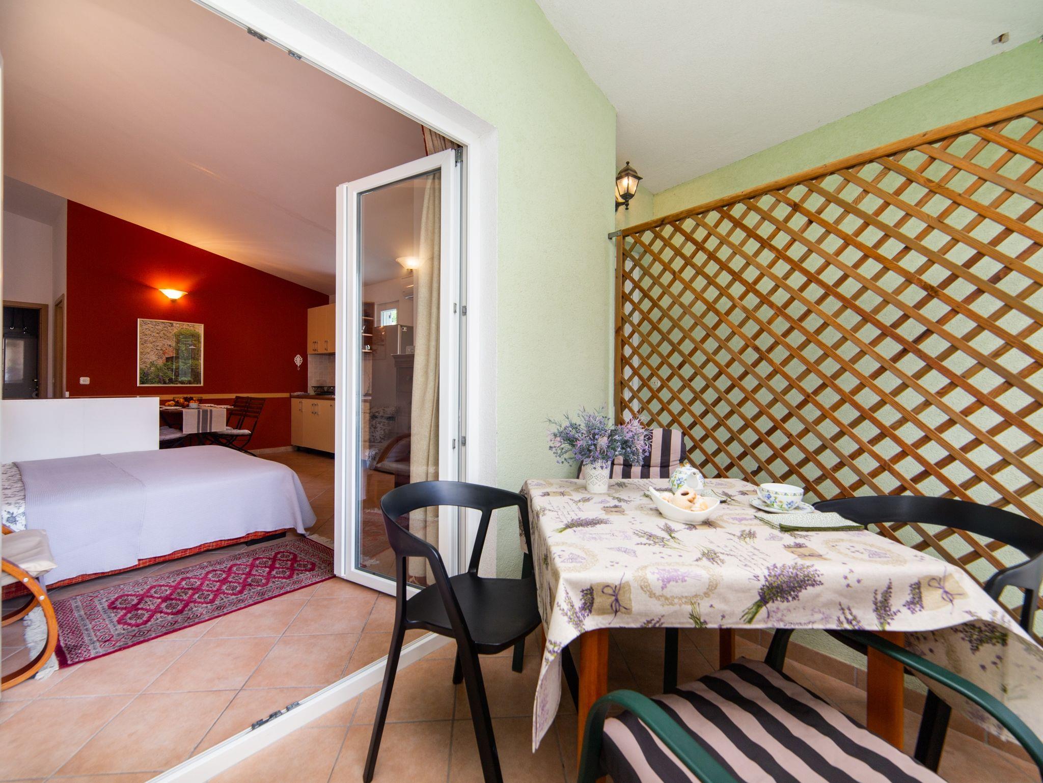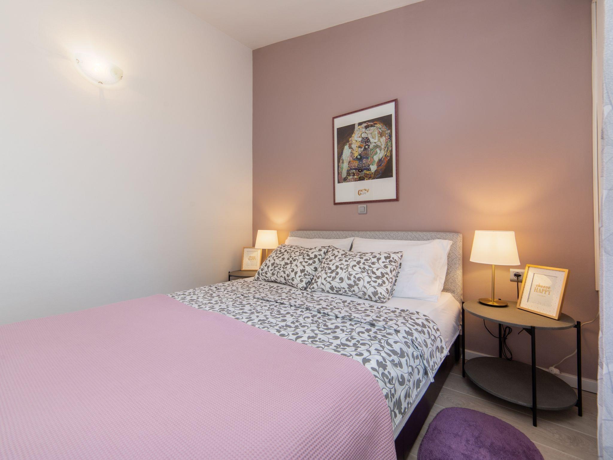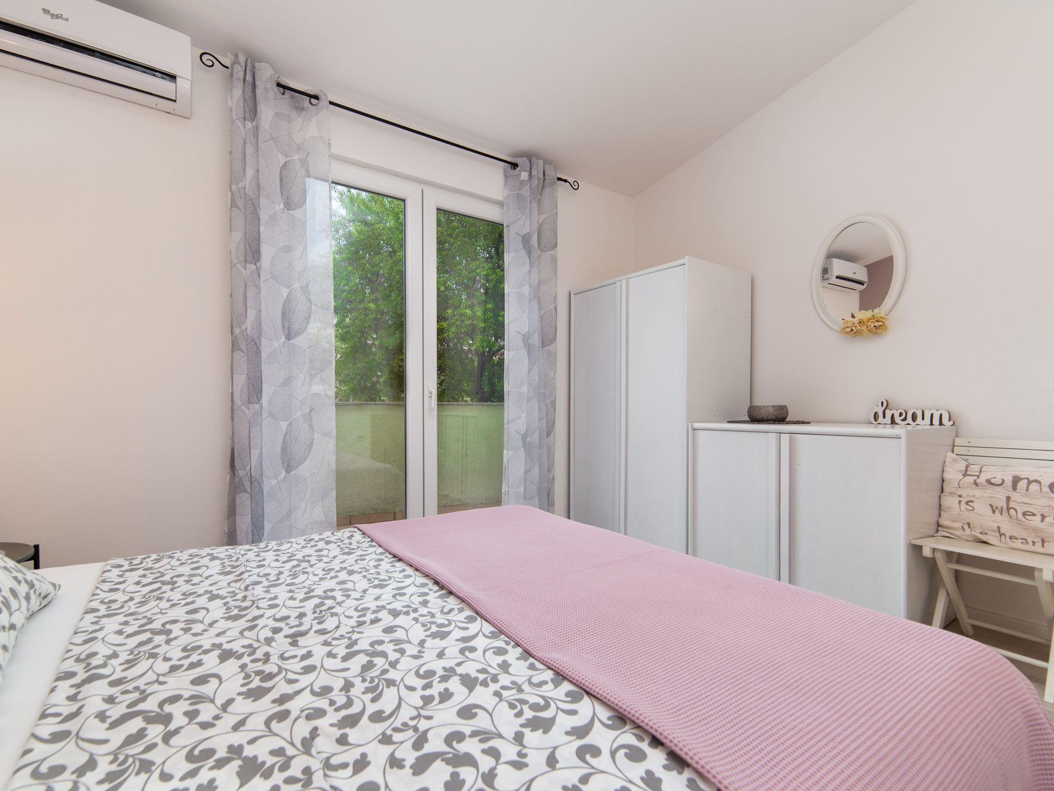 Ferienwohnung bietet Platz für 4 Gäste. Die Betten sind in Schlafzimmern, die es 1 gibt, und in Wohnzimmer, innerhalb einer Gesamtfläche von 40m2, angeordnet. Die Gäste haben eine eigene Terrasse zur Verfügung, auf der sie in warmen Sommernächten genießen können. IM PREIS INBEGRIFFEN: Kurtaxe, Endreinigung, Klimatisierung, Parkplatz, Internet, Kinderbett, Bügeleisen, Bügelbrett, Föhn. VERBINDLICHE ZUSÄTZLICHE KOSTEN: Aufzahlung für Kurzaufenthalte (prozentualer Zuschlag pro Nächtigungsanzahl: 30% - 1, 20% - 2, 10% - 3). Die Verfügbarkeit zusätzlicher Dienstleistungen in Ihrem reservierten Termin und die Preise derselben (falls nicht aufgeführt) müssen im Voraus überprüft werden. Zusätzliche Dienstleistungen die in der Zahlungsaufforderung nicht aufgeführt sind werden direkt beim Vermieter bezahlt, angenommen der Gast nutzt auch diese. Ermäßigung auf den Grundpreis: Gratistag 14=13 (bei einem Aufenthalt von 14 Tagen oder mehr erhalten Sie einen Gratistag für den Aufenthalt bis 31.12.26).