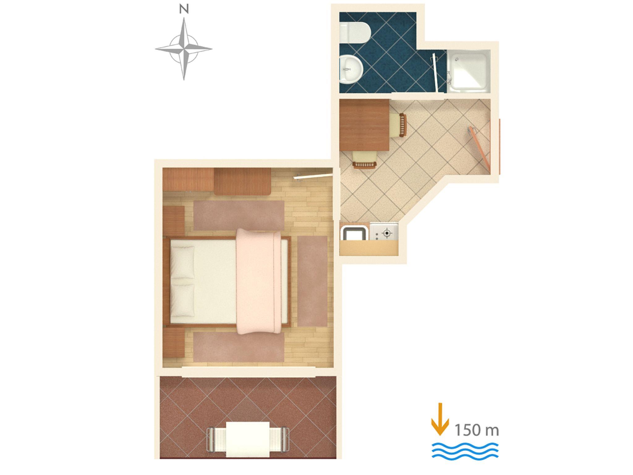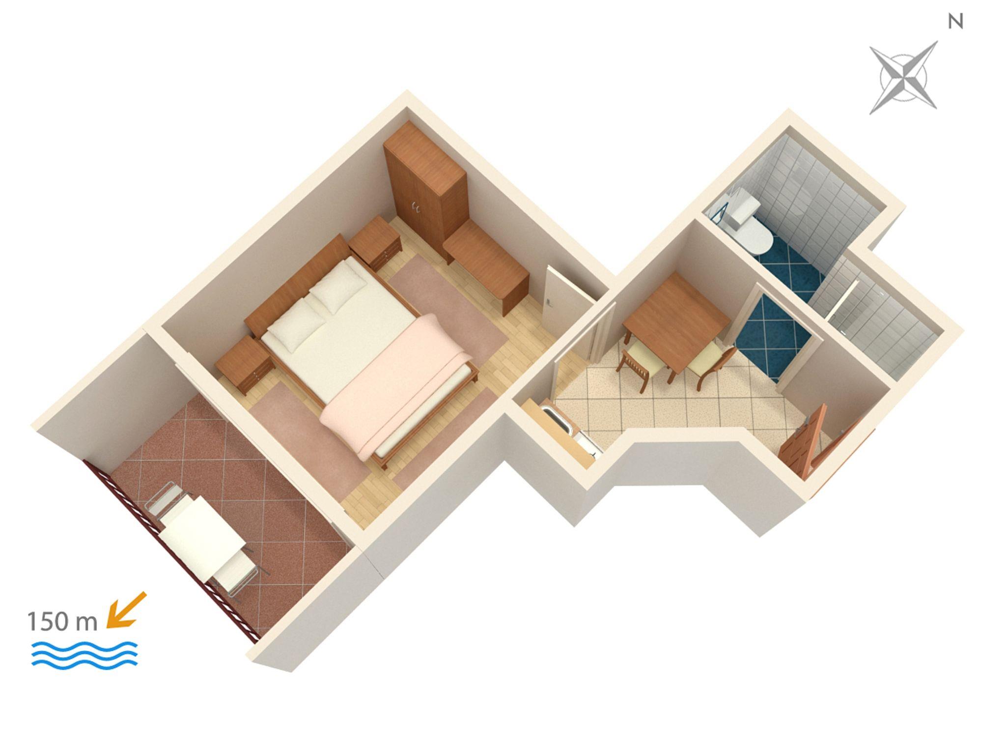 Studio bietet Platz für 2 Gäste. Die Betten sind in Schlafzimmern, die es 1 gibt, innerhalb einer Gesamtfläche von 20m2, angeordnet. Die Gäste haben einen eigenen Balkon zur Verfügung, auf der sie in warmen Sommernächten genießen können. Das Studio-Apartment bietet Meerblick. Es ist erlaubt, Speisen auf dem Gemeinschafts-Grill vorzubereiten. In der Unterkunftseinheit besteht die Möglichkeit des Mitbringens von Haustieren gegen Aufpreis. IM PREIS INBEGRIFFEN: Kurtaxe, Endreinigung, Klimatisierung, Parkplatz, Internet, Kinderbett, Bügeleisen, Sonnenschirm. VERBINDLICHE ZUSÄTZLICHE KOSTEN: Aufzahlung für Kurzaufenthalte (prozentualer Zuschlag pro Nächtigungsanzahl: 30% - 1, 20% - 2, 10% - 3). UNVERBINDLICHE ZUSÄTZLICHE KOSTEN: Wäschewaschen (5,00 € Waschen), Haustiere (5,00 € pro Nacht). Die Verfügbarkeit zusätzlicher Dienstleistungen in Ihrem reservierten Termin und die Preise derselben (falls nicht aufgeführt) müssen im Voraus überprüft werden. Zusätzliche Dienstleistungen die in der Zahlungsaufforderung nicht aufgeführt sind werden direkt beim Vermieter bezahlt, angenommen der Gast nutzt auch diese.