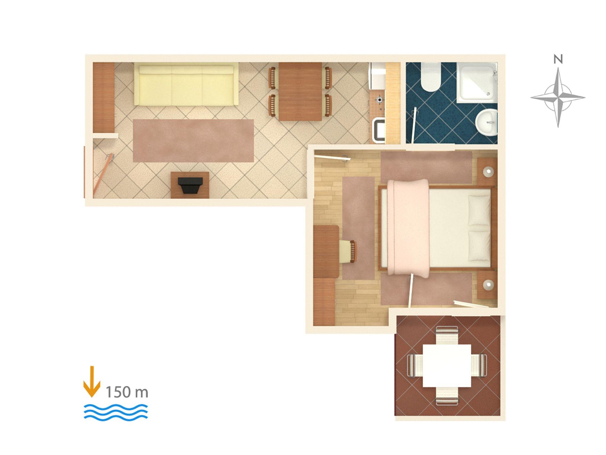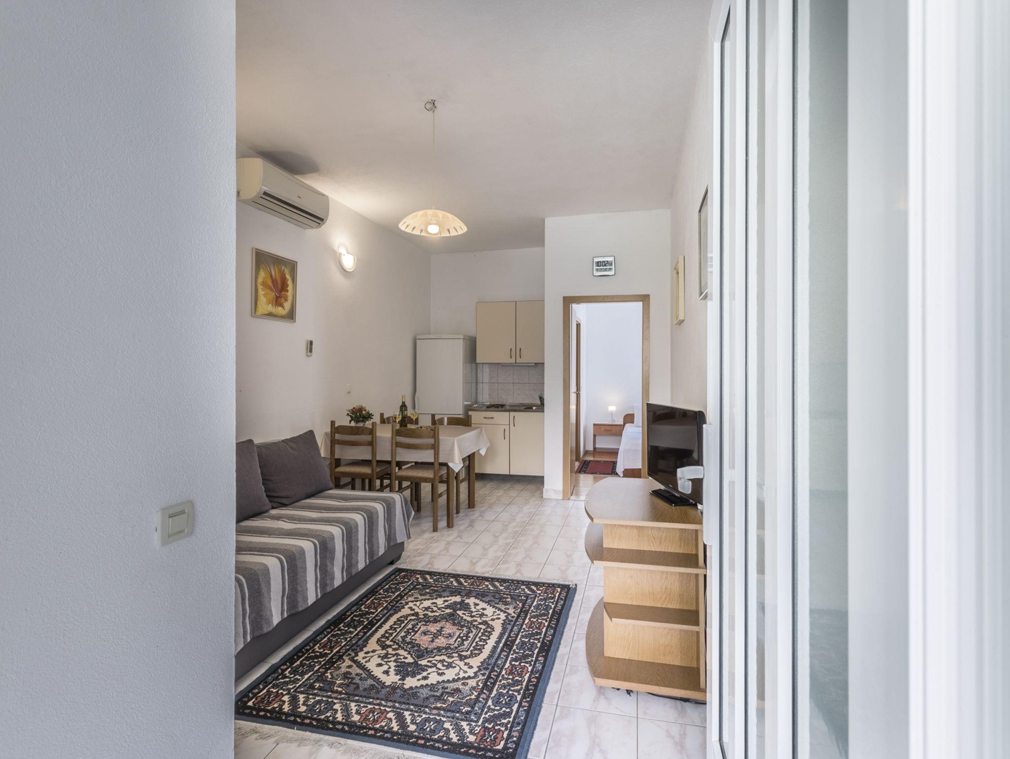 Ferienwohnung bietet Platz für 4 Gäste. Die Betten sind in Schlafzimmern, die es 1 gibt, und in Wohnzimmer, innerhalb einer Gesamtfläche von 31m2, angeordnet. Die Gäste haben eine eigene Terrasse zur Verfügung, auf der sie in warmen Sommernächten genießen können. Das Apartment bietet Meerblick. Es ist erlaubt, Speisen auf dem Gemeinschafts-Grill vorzubereiten. In der Unterkunftseinheit besteht die Möglichkeit des Mitbringens von Haustieren gegen Aufpreis. IM PREIS INBEGRIFFEN: Kurtaxe, Endreinigung, Klimatisierung, Parkplatz, Internet, Kinderbett, Bügeleisen, Sonnenschirm. VERBINDLICHE ZUSÄTZLICHE KOSTEN: Aufzahlung für Kurzaufenthalte (prozentualer Zuschlag pro Nächtigungsanzahl: 30% - 1, 20% - 2, 10% - 3). UNVERBINDLICHE ZUSÄTZLICHE KOSTEN: Wäschewaschen (5,00 € Waschen), Haustiere (5,00 € pro Nacht). Die Verfügbarkeit zusätzlicher Dienstleistungen in Ihrem reservierten Termin und die Preise derselben (falls nicht aufgeführt) müssen im Voraus überprüft werden. Zusätzliche Dienstleistungen die in der Zahlungsaufforderung nicht aufgeführt sind werden direkt beim Vermieter bezahlt, angenommen der Gast nutzt auch diese.