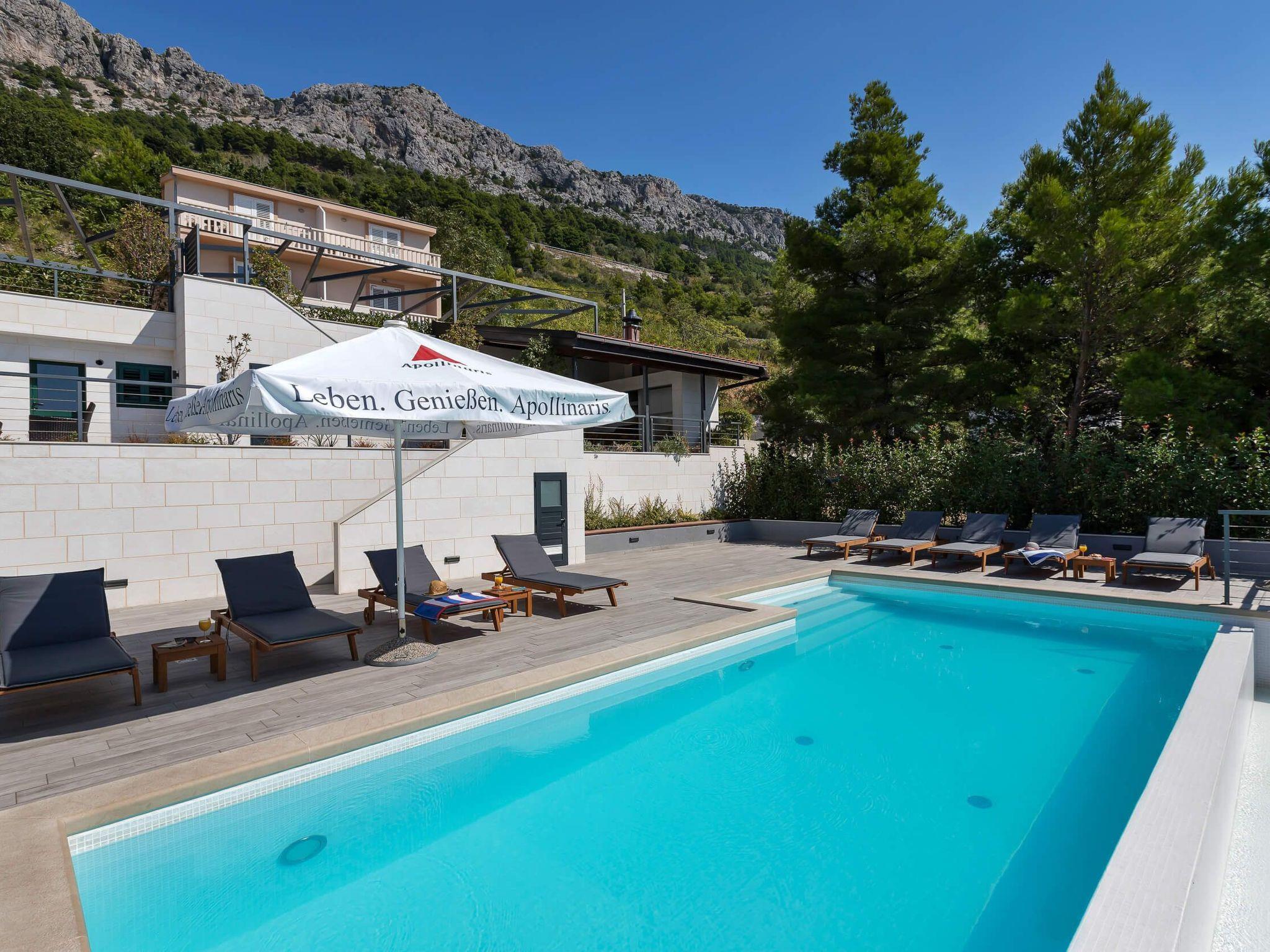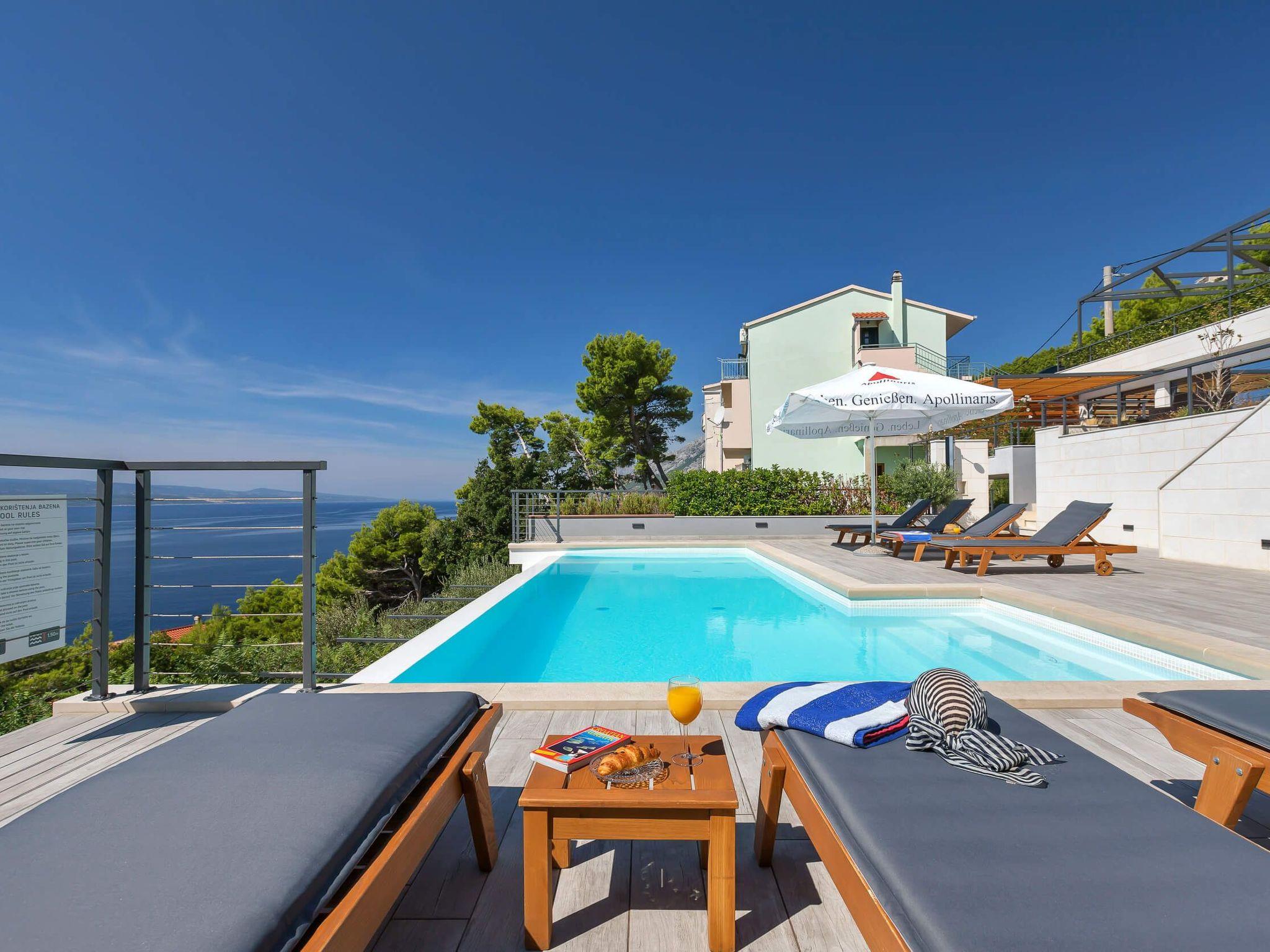 Vila MATKO OASIS in Brela offers accommodation in seven apartments at Your choice. Each apartment has a balcony with a sea view, a completely equipped kitchen, AC units and shared use of a heated pool.