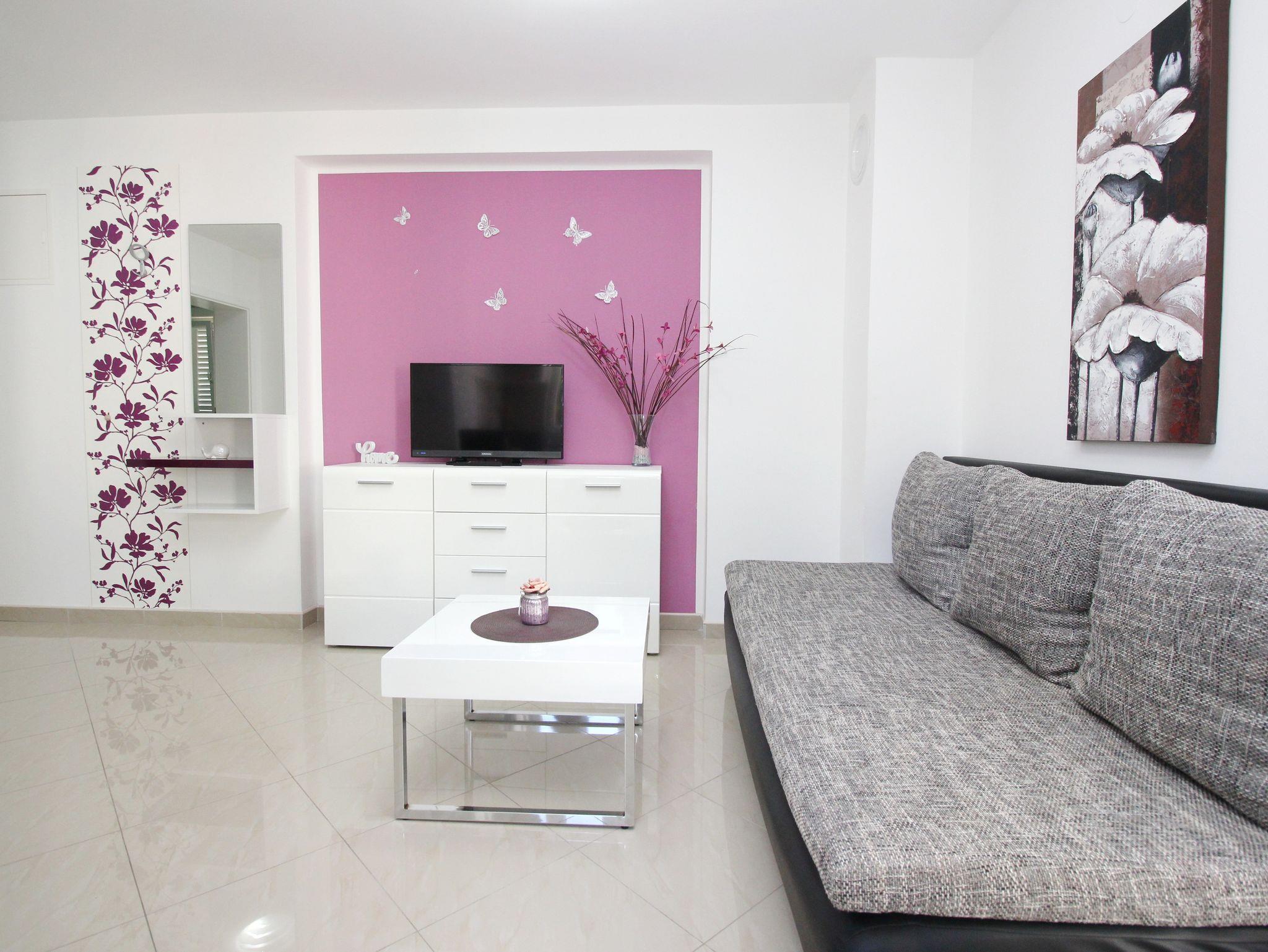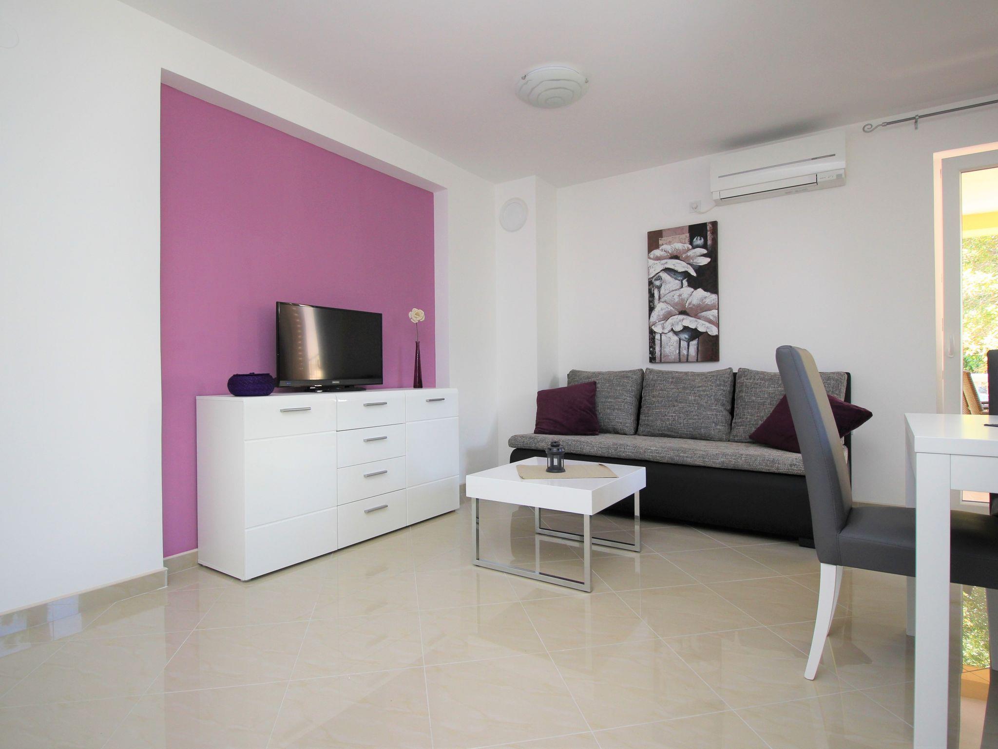 Ferienwohnung bietet Platz für 3 Gäste. Die Betten sind in Schlafzimmern, die es 1 gibt, und in Wohnzimmer, innerhalb einer Gesamtfläche von 42m2, angeordnet. Die Gäste haben eine eigene Terrasse zur Verfügung, auf der sie in warmen Sommernächten genießen können. Es ist erlaubt, Speisen auf dem Gemeinschafts-Grill vorzubereiten. Während ihres Aufenthalts können Gäste das gemeinsam zur Nutzung stehende Schwimmbad benutzen. IM PREIS INBEGRIFFEN: Endreinigung, Klimatisierung, Pool, Parkplatz, Internet, Bügeleisen, Föhn. VERBINDLICHE ZUSÄTZLICHE KOSTEN: Kurtaxe (Erwachsene 0,93 € - 2,20 € Nacht/Person, Kinderermäßigung 12 - 17 Jahre), Aufzahlung für Kurzaufenthalte (prozentualer Zuschlag pro Nächtigungsanzahl: 30% - 1, 20% - 2, 10% - 3). Die Verfügbarkeit zusätzlicher Dienstleistungen in Ihrem reservierten Termin und die Preise derselben (falls nicht aufgeführt) müssen im Voraus überprüft werden. Zusätzliche Dienstleistungen die in der Zahlungsaufforderung nicht aufgeführt sind werden direkt beim Vermieter bezahlt, angenommen der Gast nutzt auch diese.