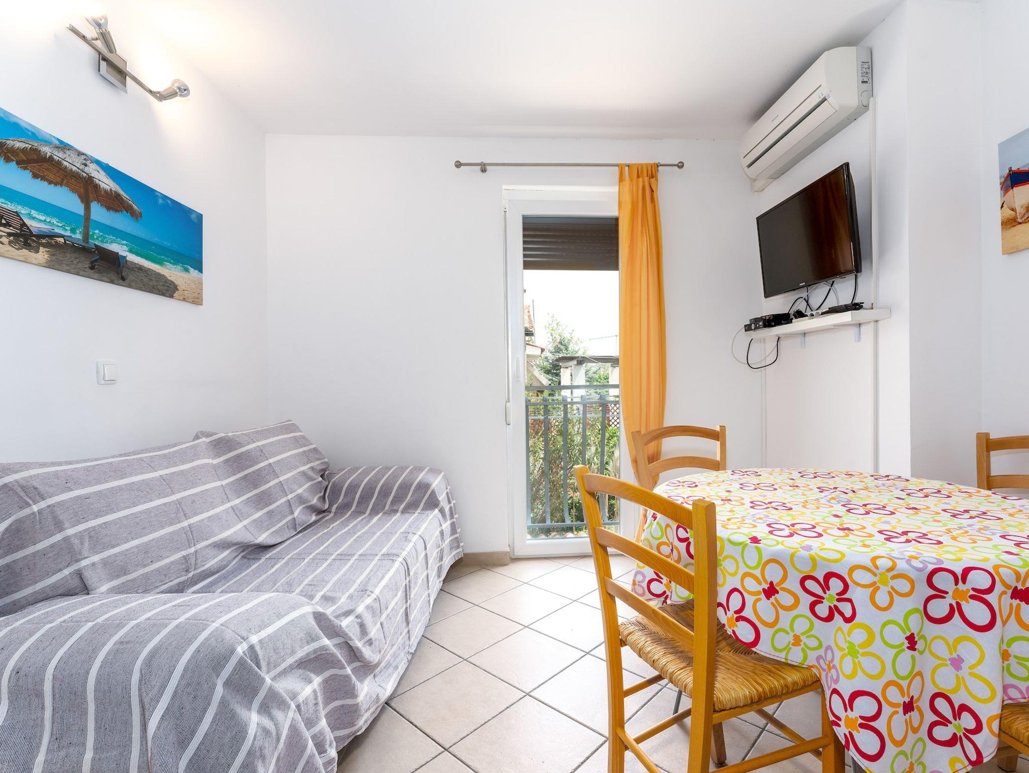 Ferienwohnung bietet Platz für 4 Gäste. Die Betten sind in Schlafzimmern, die es 2 gibt, innerhalb einer Gesamtfläche von 39m2, angeordnet. Es ist erlaubt, Speisen auf dem Gemeinschafts-Grill vorzubereiten. Die reservierte Unterkunftseinheit verfügt über einen gemeinsame Terrasse. IM PREIS INBEGRIFFEN: Kurtaxe, Endreinigung, Klimatisierung, Parkplatz, Internet, Kinderbett, Föhn, Sonnenschirm. VERBINDLICHE ZUSÄTZLICHE KOSTEN: Aufzahlung für Kurzaufenthalte (prozentualer Zuschlag pro Nächtigungsanzahl: 30% - 1, 20% - 2, 10% - 3). Die Verfügbarkeit zusätzlicher Dienstleistungen in Ihrem reservierten Termin und die Preise derselben (falls nicht aufgeführt) müssen im Voraus überprüft werden. Zusätzliche Dienstleistungen die in der Zahlungsaufforderung nicht aufgeführt sind werden direkt beim Vermieter bezahlt, angenommen der Gast nutzt auch diese. Ermäßigung auf den Grundpreis: Gratistag 14=13 (bei einem Aufenthalt von 14 Tagen oder mehr erhalten Sie einen Gratistag für den Aufenthalt bis 31.12.26).
