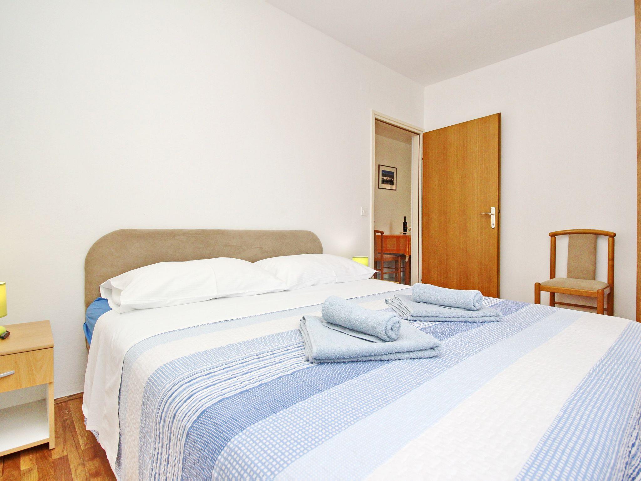 Ferienwohnung bietet Platz für 4 Gäste. Die Betten sind in Schlafzimmern, die es 2 gibt, innerhalb einer Gesamtfläche von 52m2, angeordnet. Die Gäste haben eine eigene Terrasse zur Verfügung, auf der sie in warmen Sommernächten genießen können. Es ist erlaubt, Speisen auf dem Gemeinschafts-Grill vorzubereiten. IM PREIS INBEGRIFFEN: Kurtaxe, Endreinigung, Klimatisierung, Parkplatz, Internet. VERBINDLICHE ZUSÄTZLICHE KOSTEN: Aufzahlung für Kurzaufenthalte (prozentualer Zuschlag pro Nächtigungsanzahl: 30% - 1, 20% - 2, 10% - 3). Die Verfügbarkeit zusätzlicher Dienstleistungen in Ihrem reservierten Termin und die Preise derselben (falls nicht aufgeführt) müssen im Voraus überprüft werden. Zusätzliche Dienstleistungen die in der Zahlungsaufforderung nicht aufgeführt sind werden direkt beim Vermieter bezahlt, angenommen der Gast nutzt auch diese.