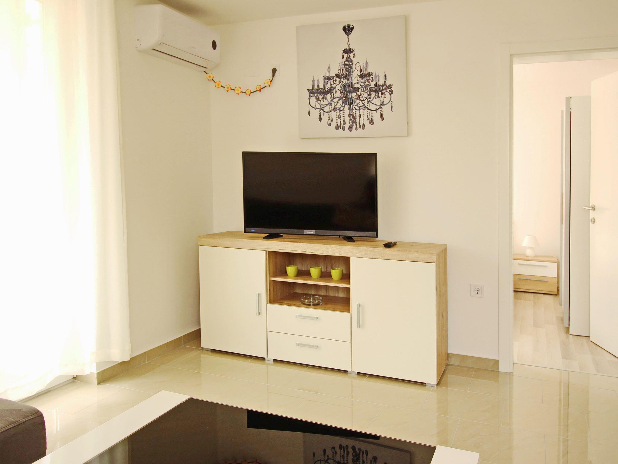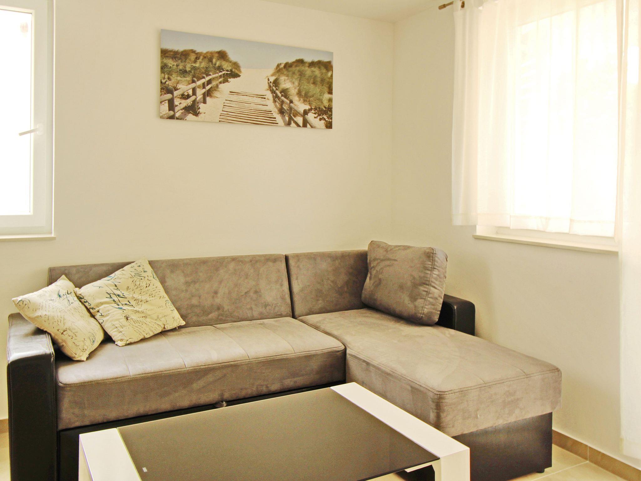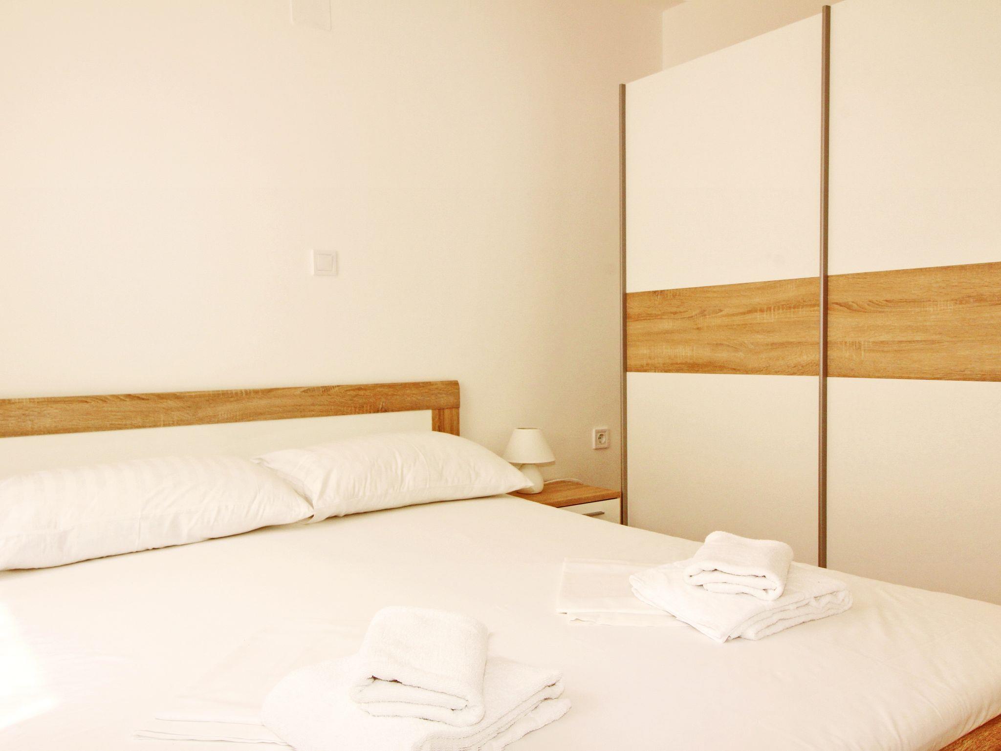 Ferienwohnung bietet Platz für 4 Gäste. Die Betten sind in Schlafzimmern, die es 1 gibt, und in Wohnzimmer, innerhalb einer Gesamtfläche von 41m2, angeordnet. Die Gäste haben einen eigenen Balkon zur Verfügung, auf der sie in warmen Sommernächten genießen können. IM PREIS INBEGRIFFEN: Kurtaxe, Endreinigung, Klimatisierung, Parkplatz, Internet. VERBINDLICHE ZUSÄTZLICHE KOSTEN: Aufzahlung für Kurzaufenthalte (prozentualer Zuschlag pro Nächtigungsanzahl: 30% - 1, 20% - 2, 10% - 3). Die Verfügbarkeit zusätzlicher Dienstleistungen in Ihrem reservierten Termin und die Preise derselben (falls nicht aufgeführt) müssen im Voraus überprüft werden. Zusätzliche Dienstleistungen die in der Zahlungsaufforderung nicht aufgeführt sind werden direkt beim Vermieter bezahlt, angenommen der Gast nutzt auch diese.