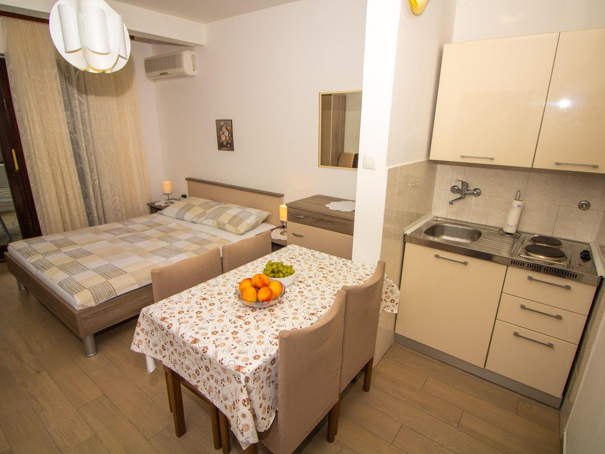 Studio bietet Platz für 2 Gäste. Die Betten sind in Schlafzimmern, die es 1 gibt, innerhalb einer Gesamtfläche von 17m2, angeordnet. Die Gäste haben eine eigene Terrasse zur Verfügung, auf der sie in warmen Sommernächten genießen können. IM PREIS INBEGRIFFEN: Kurtaxe, Endreinigung, Klimatisierung, Parkplatz, Internet. VERBINDLICHE ZUSÄTZLICHE KOSTEN: Aufzahlung für Kurzaufenthalte (prozentualer Zuschlag pro Nächtigungsanzahl: 30% - 1, 20% - 2, 10% - 3). Die Verfügbarkeit zusätzlicher Dienstleistungen in Ihrem reservierten Termin und die Preise derselben (falls nicht aufgeführt) müssen im Voraus überprüft werden. Zusätzliche Dienstleistungen die in der Zahlungsaufforderung nicht aufgeführt sind werden direkt beim Vermieter bezahlt, angenommen der Gast nutzt auch diese.