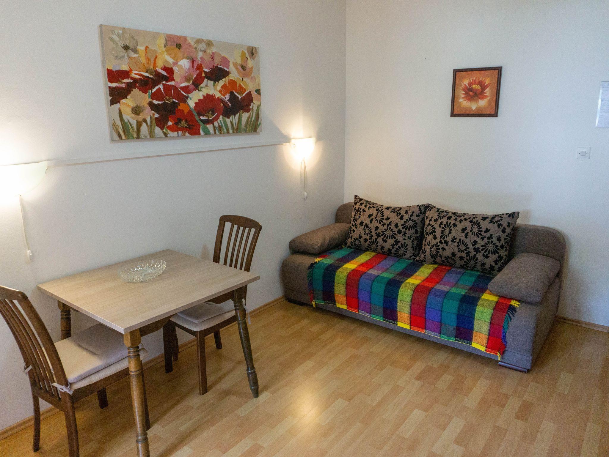 Ferienwohnung bietet Platz für 2 Gäste. Die Betten sind in Schlafzimmern, die es 1 gibt, innerhalb einer Gesamtfläche von 32m2, angeordnet. Es ist erlaubt, Speisen auf dem Gemeinschafts-Grill vorzubereiten. Die reservierte Unterkunftseinheit hat keinen Balkon und keine Terrasse. IM PREIS INBEGRIFFEN: Kurtaxe, Endreinigung, Klimatisierung, Parkplatz, Internet, Föhn. VERBINDLICHE ZUSÄTZLICHE KOSTEN: Aufzahlung für Kurzaufenthalte (prozentualer Zuschlag pro Nächtigungsanzahl: 30% - 1, 20% - 2, 10% - 3). Die Verfügbarkeit zusätzlicher Dienstleistungen in Ihrem reservierten Termin und die Preise derselben (falls nicht aufgeführt) müssen im Voraus überprüft werden. Zusätzliche Dienstleistungen die in der Zahlungsaufforderung nicht aufgeführt sind werden direkt beim Vermieter bezahlt, angenommen der Gast nutzt auch diese.