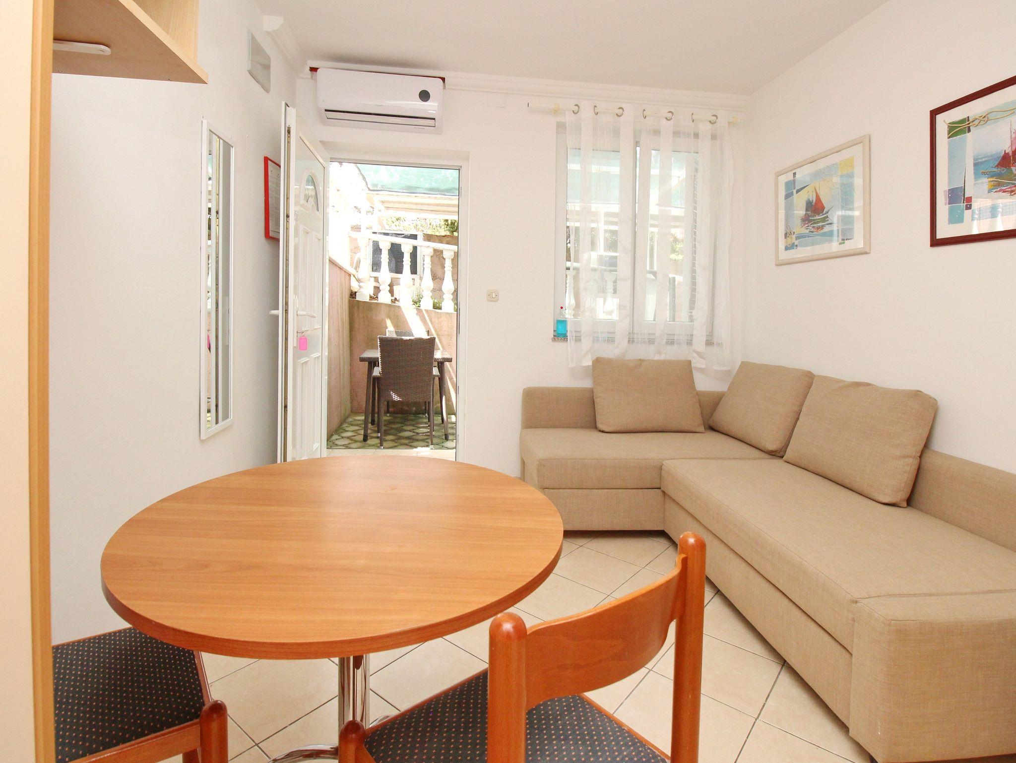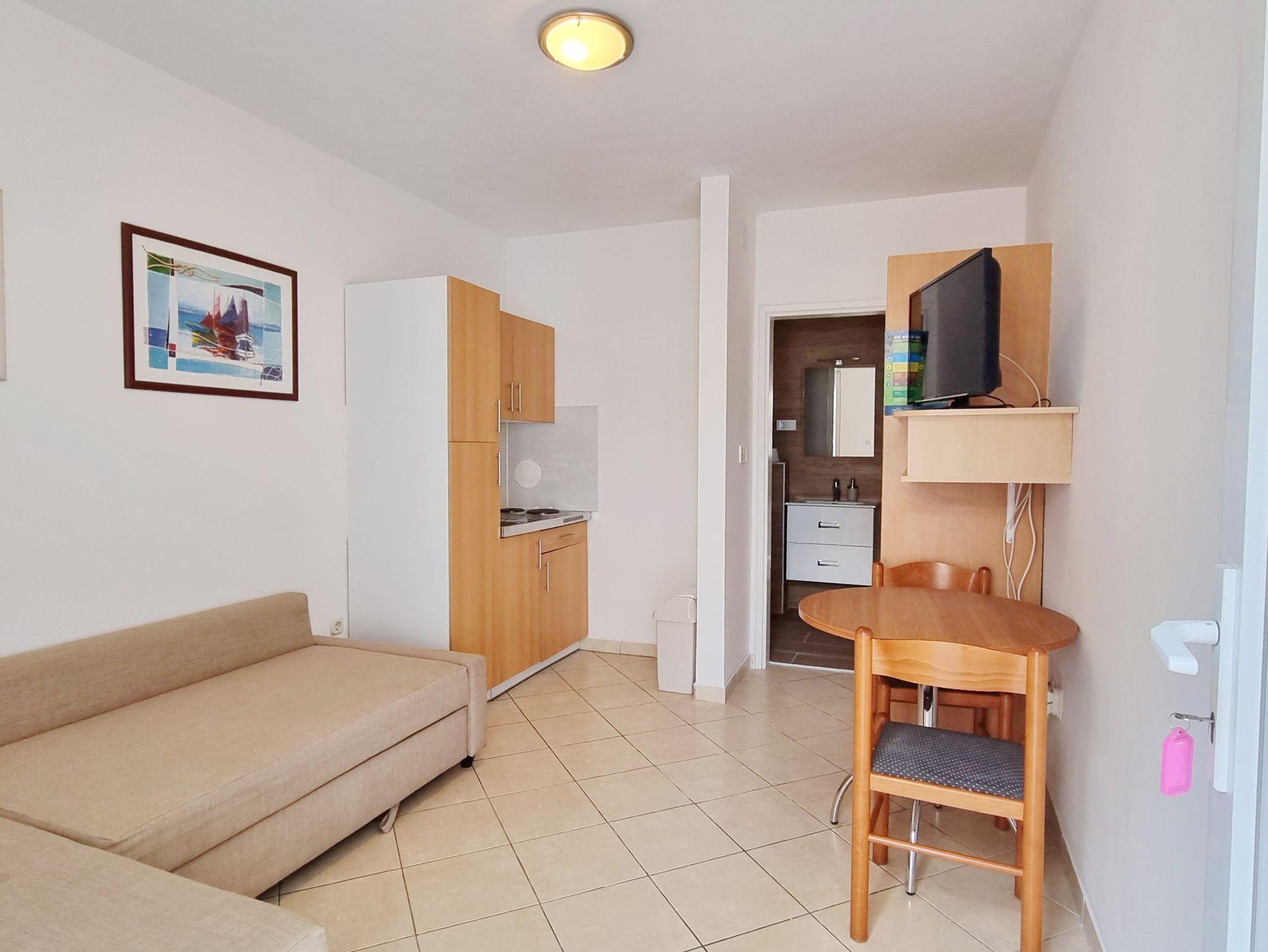 Studio bietet Platz für 2 Gäste. Die Betten sind in Wohnzimmer, innerhalb einer Gesamtfläche von 21m2, angeordnet. Die Gäste haben eine eigene Terrasse zur Verfügung, auf der sie in warmen Sommernächten genießen können. In der Unterkunftseinheit besteht die Möglichkeit des Mitbringens von Haustieren gegen Aufpreis. IM PREIS INBEGRIFFEN: Kurtaxe, Endreinigung, Klimatisierung, Parkplatz, Internet. VERBINDLICHE ZUSÄTZLICHE KOSTEN: Aufzahlung für Kurzaufenthalte (prozentualer Zuschlag pro Nächtigungsanzahl: 30% - 1, 20% - 2, 10% - 3). UNVERBINDLICHE ZUSÄTZLICHE KOSTEN: Haustiere (10,00 € pro Nacht). Die Verfügbarkeit zusätzlicher Dienstleistungen in Ihrem reservierten Termin und die Preise derselben (falls nicht aufgeführt) müssen im Voraus überprüft werden. Zusätzliche Dienstleistungen die in der Zahlungsaufforderung nicht aufgeführt sind werden direkt beim Vermieter bezahlt, angenommen der Gast nutzt auch diese.
