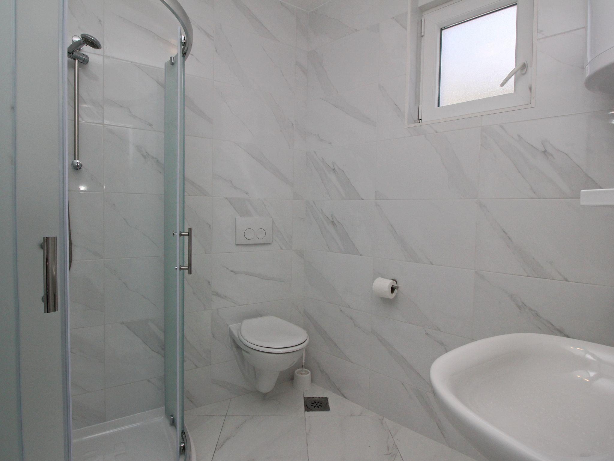 Ferienwohnung bietet Platz für 4 Gäste. Die Betten sind in Schlafzimmern, die es 1 gibt, und in Wohnzimmer, innerhalb einer Gesamtfläche von 44m2, angeordnet. Die Gäste haben eine eigene Terrasse zur Verfügung, auf der sie in warmen Sommernächten genießen können. Das Apartment bietet Meerblick. In der Unterkunftseinheit besteht die Möglichkeit des Mitbringens von Haustieren gegen Aufpreis. IM PREIS INBEGRIFFEN: Kurtaxe, Endreinigung, Klimatisierung, Parkplatz, Internet. VERBINDLICHE ZUSÄTZLICHE KOSTEN: Aufzahlung für Kurzaufenthalte (prozentualer Zuschlag pro Nächtigungsanzahl: 30% - 1, 20% - 2, 10% - 3). UNVERBINDLICHE ZUSÄTZLICHE KOSTEN: Haustiere (15,00 € pro Nacht). Die Verfügbarkeit zusätzlicher Dienstleistungen in Ihrem reservierten Termin und die Preise derselben (falls nicht aufgeführt) müssen im Voraus überprüft werden. Zusätzliche Dienstleistungen die in der Zahlungsaufforderung nicht aufgeführt sind werden direkt beim Vermieter bezahlt, angenommen der Gast nutzt auch diese.
