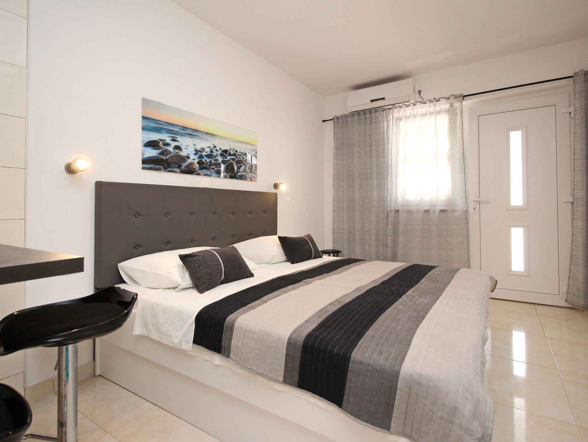 Studio bietet Platz für 2 Gäste. Die Betten sind in Schlafzimmern, die es 1 gibt, innerhalb einer Gesamtfläche von 20m2, angeordnet. Die Gäste haben eine eigene Terrasse zur Verfügung, auf der sie in warmen Sommernächten genießen können. IM PREIS INBEGRIFFEN: Kurtaxe, Endreinigung, Klimatisierung, Parkplatz, Internet. VERBINDLICHE ZUSÄTZLICHE KOSTEN: Aufzahlung für Kurzaufenthalte (prozentualer Zuschlag pro Nächtigungsanzahl: 30% - 1, 20% - 2, 10% - 3). Die Verfügbarkeit zusätzlicher Dienstleistungen in Ihrem reservierten Termin und die Preise derselben (falls nicht aufgeführt) müssen im Voraus überprüft werden. Zusätzliche Dienstleistungen die in der Zahlungsaufforderung nicht aufgeführt sind werden direkt beim Vermieter bezahlt, angenommen der Gast nutzt auch diese.